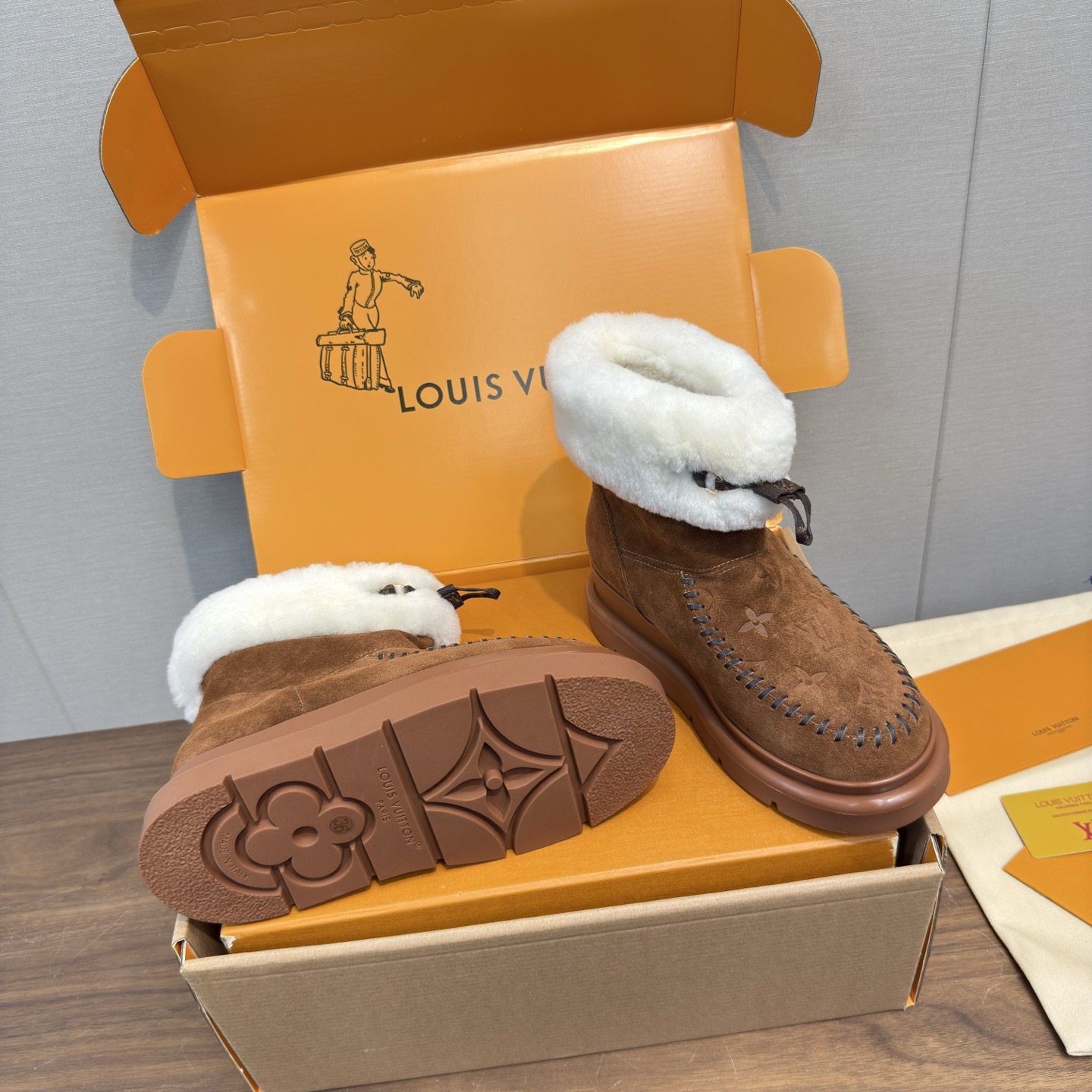 This shoes is AAAAA 1:1 quality (superb). Materials used are identical to the original ones. Louis Vuitton trademark marks are indistinguishable to the authentic. Photos take by actual shoes, what you receive will be 100% same with our photos.