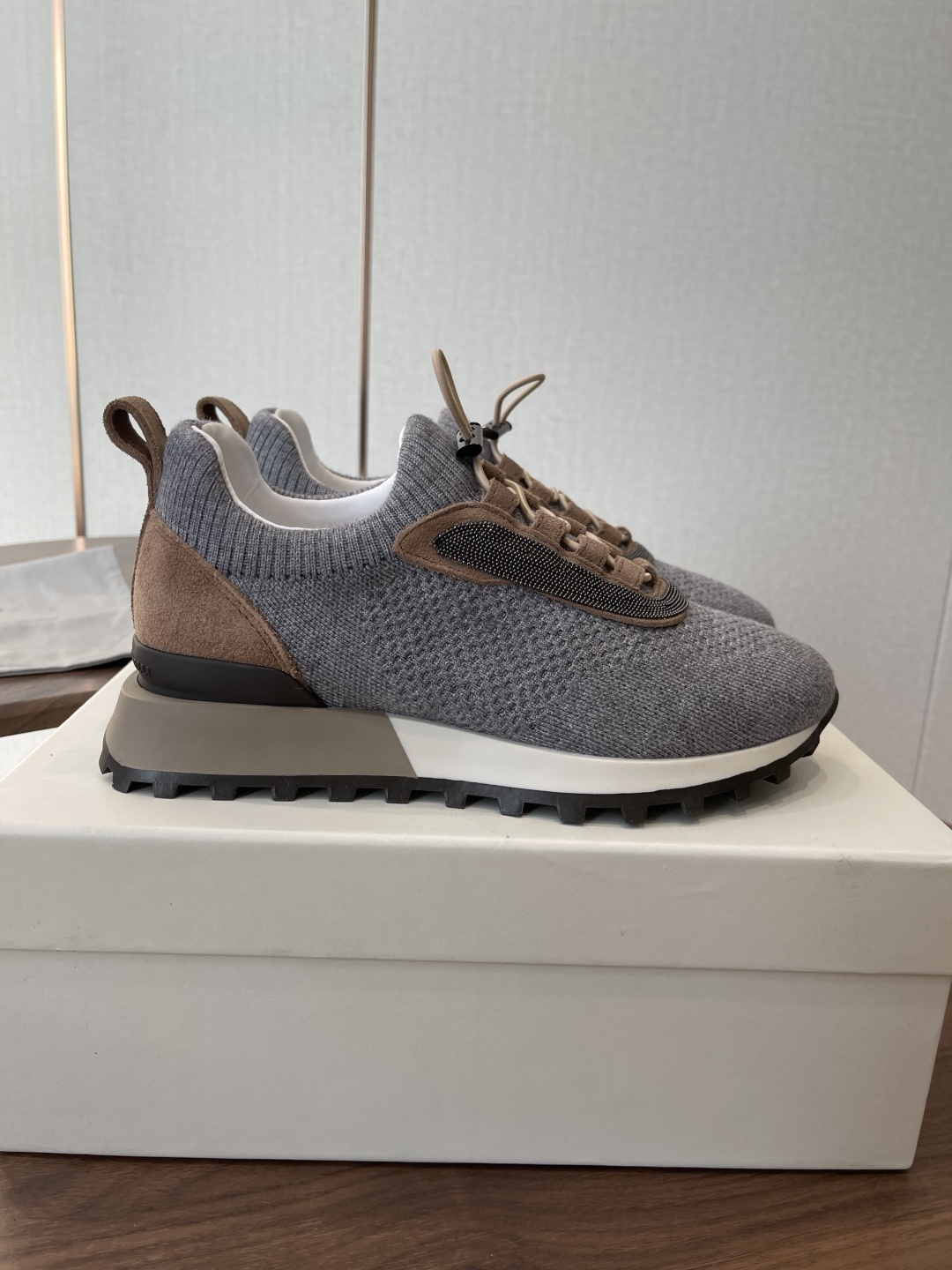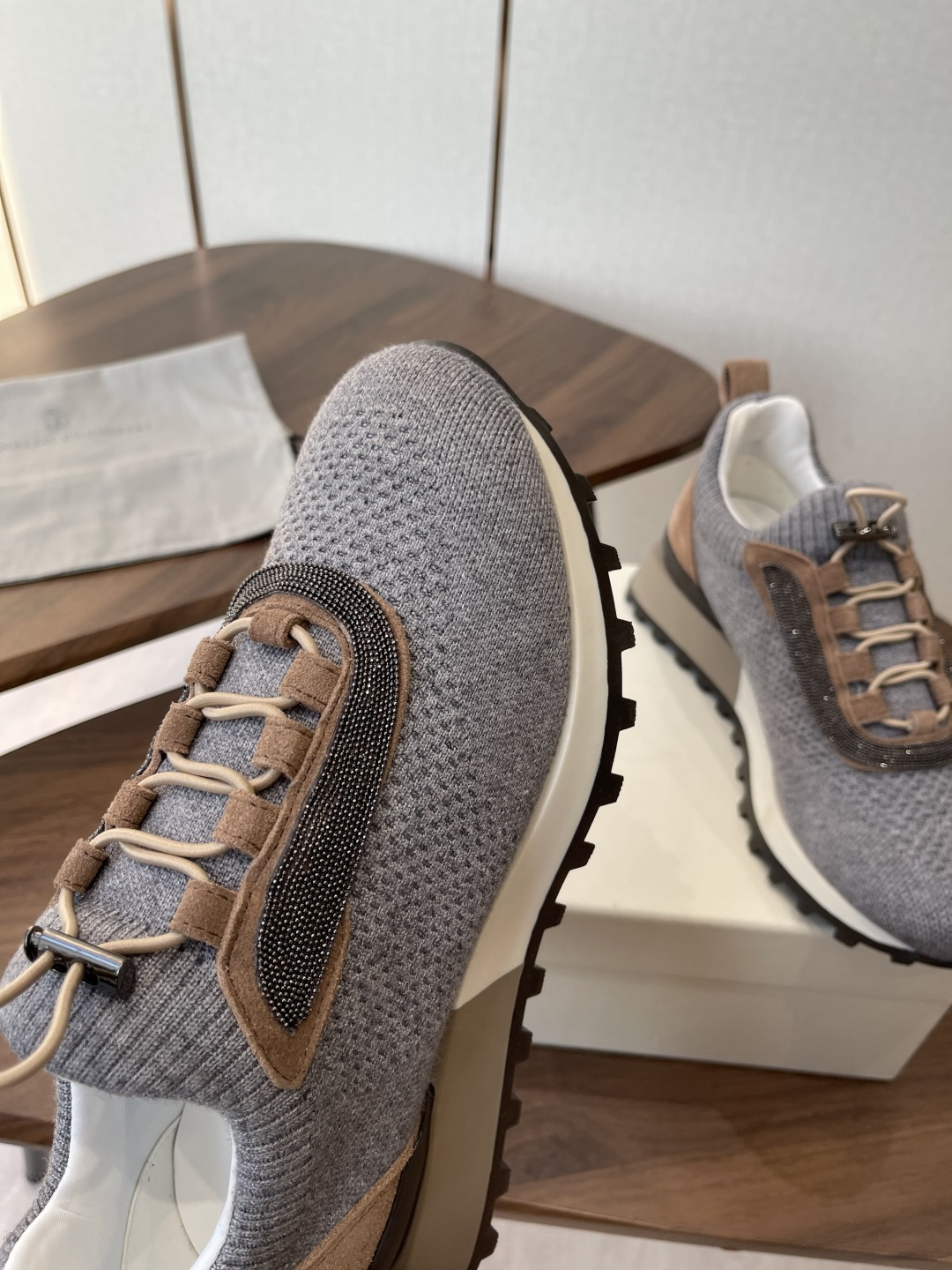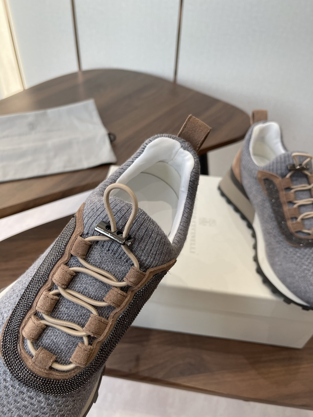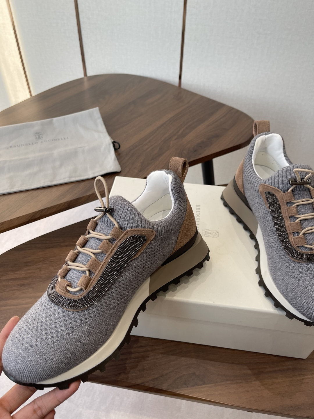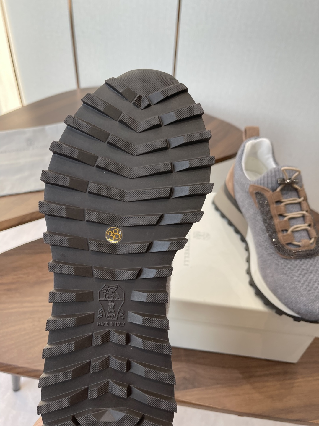 This shoes is AAAAA 1:1 quality (superb). Materials used are identical to the original ones. Brunello Cucinelli trademark marks are indistinguishable to the authentic. Photos take by actual shoes, what you receive will be 100% same with our photos.