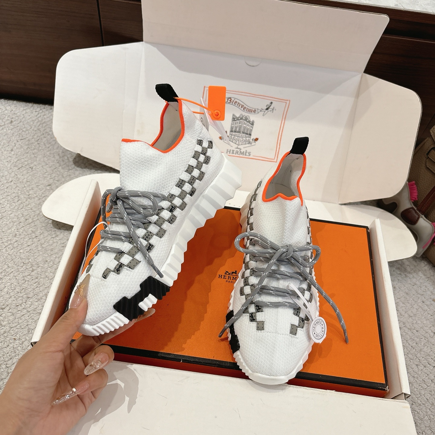 NO:4329373. The shoes is from Hermes designer.