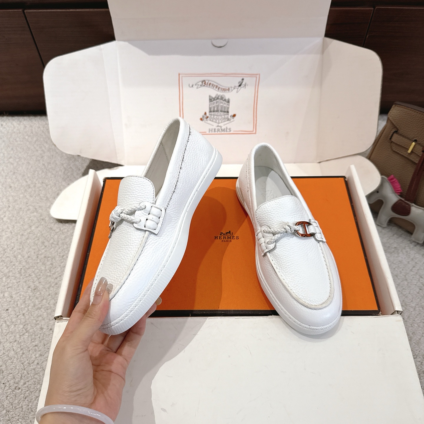 This shoes is AAAAA 1:1 quality (superb). Materials used are identical to the original ones. Hermes trademark marks are indistinguishable to the authentic. Photos take by actual shoes, what you receive will be 100% same with our photos.