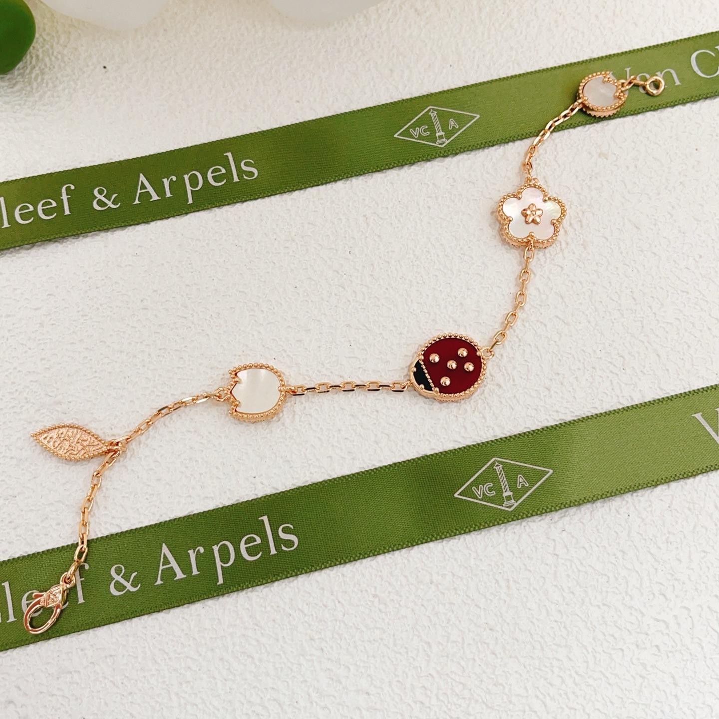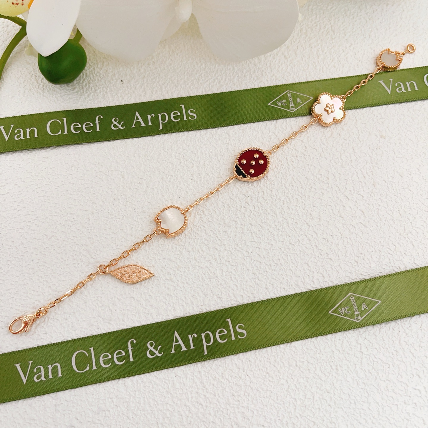 This jewelry is AAAAA 1:1 quality (superb). Materials used are identical to the original ones. Van Cleef & Arpels trademark marks are indistinguishable to the authentic. Photos take by actual jewelry, what you receive will be 100% same with our photos.