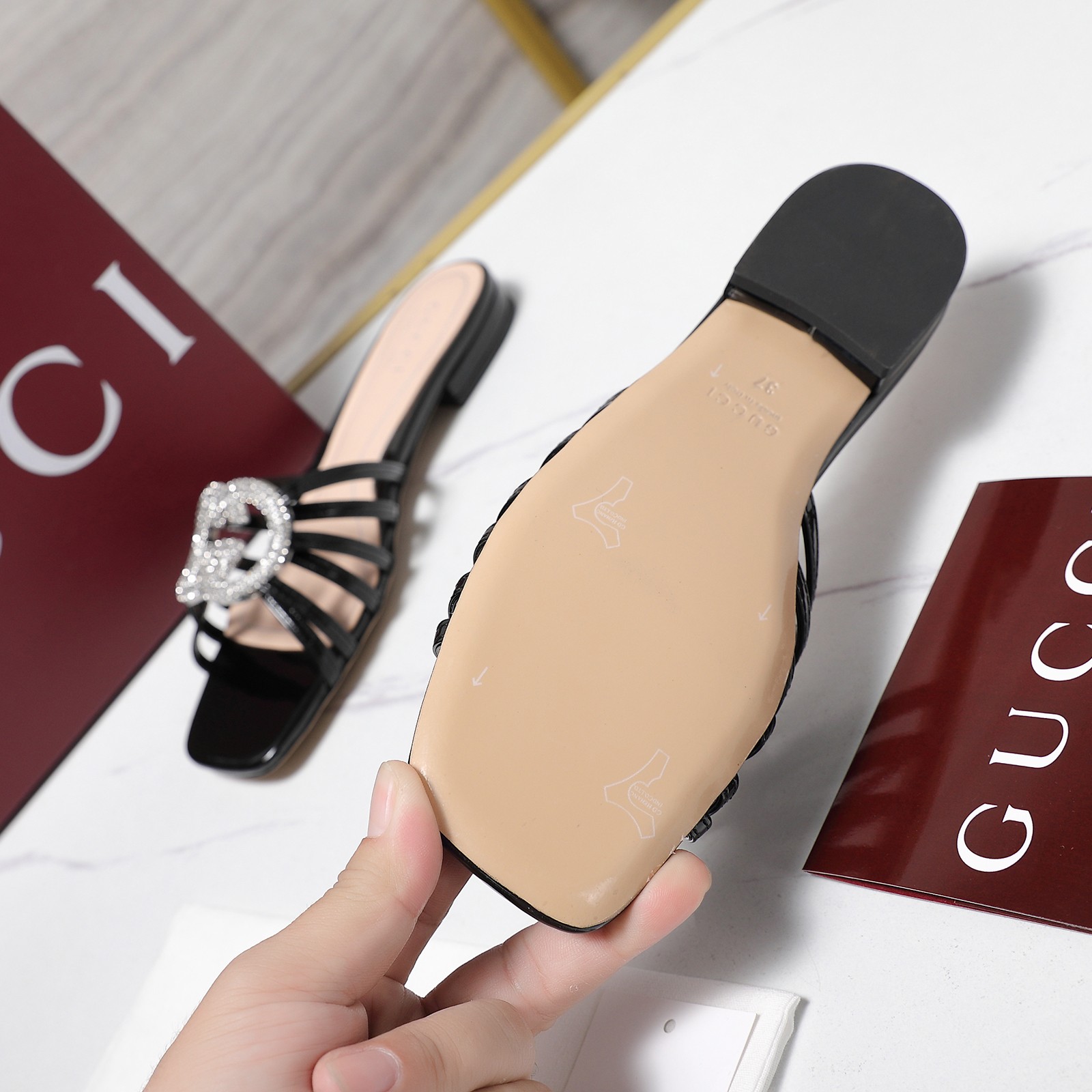 This shoes is AAAAA 1:1 quality (superb). Materials used are identical to the original ones. Gucci trademark marks are indistinguishable to the authentic. Photos take by actual shoes, what you receive will be 100% same with our photos.