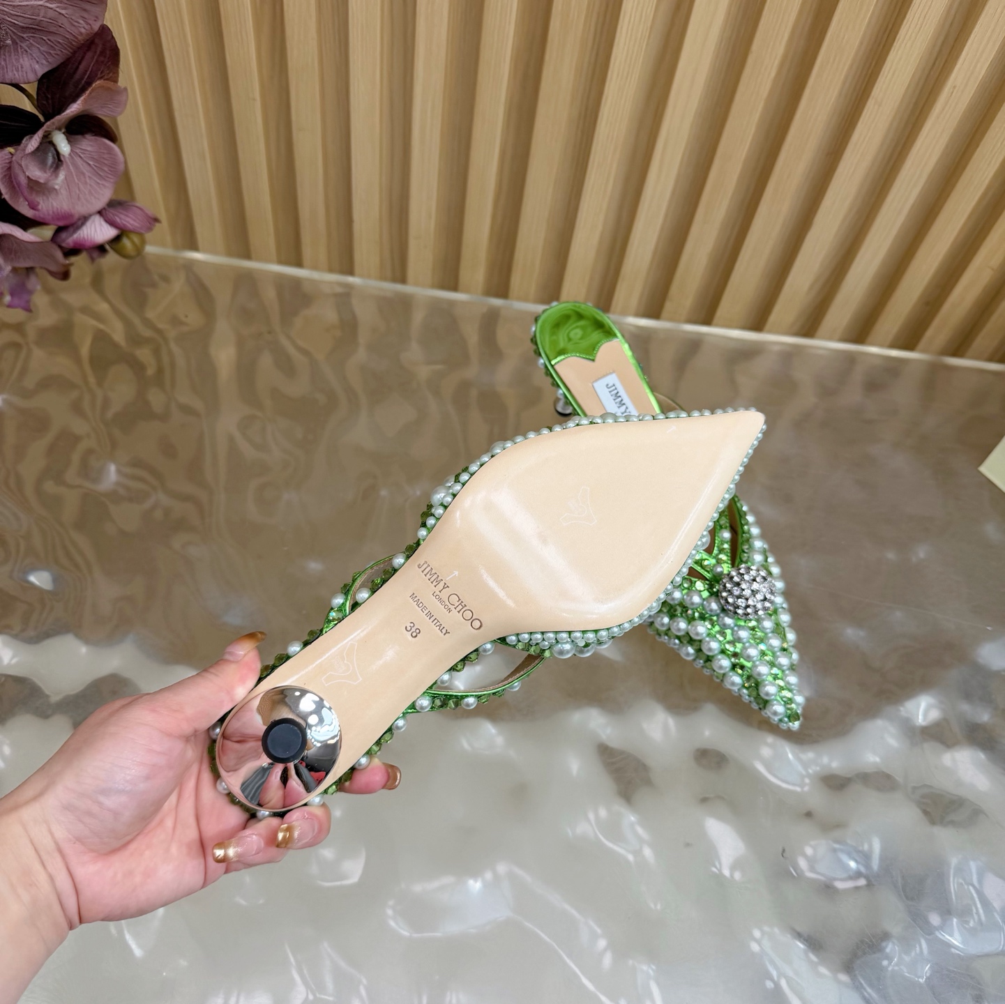 This shoes is AAAAA 1:1 quality (superb). Materials used are identical to the original ones. JIMMY CHOO trademark marks are indistinguishable to the authentic. Photos take by actual shoes, what you receive will be 100% same with our photos.