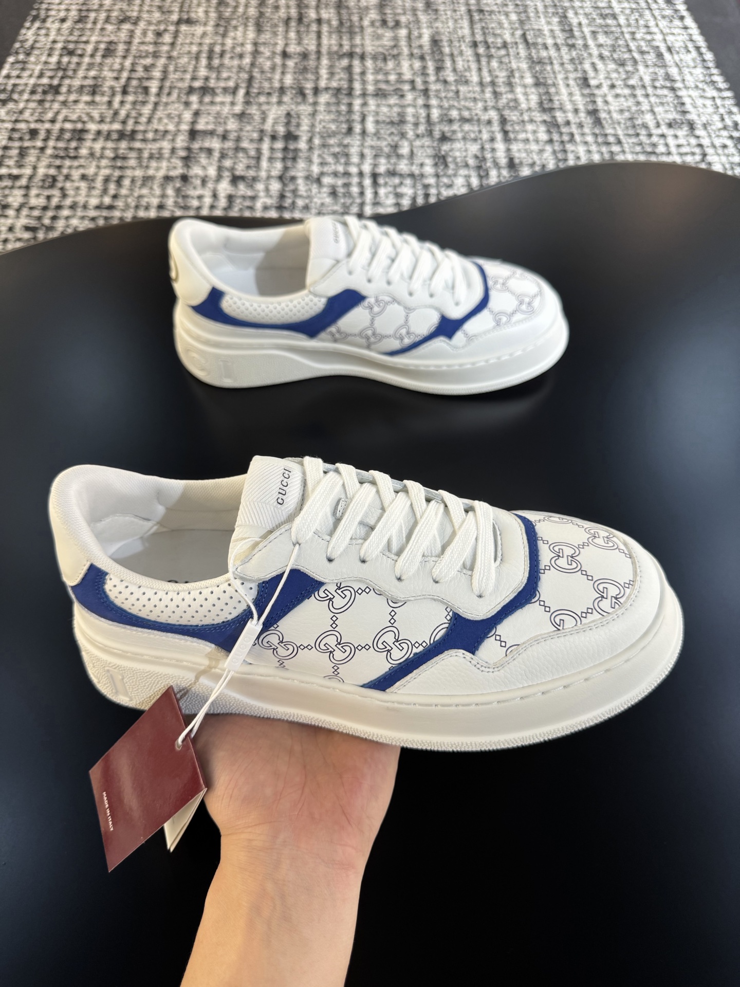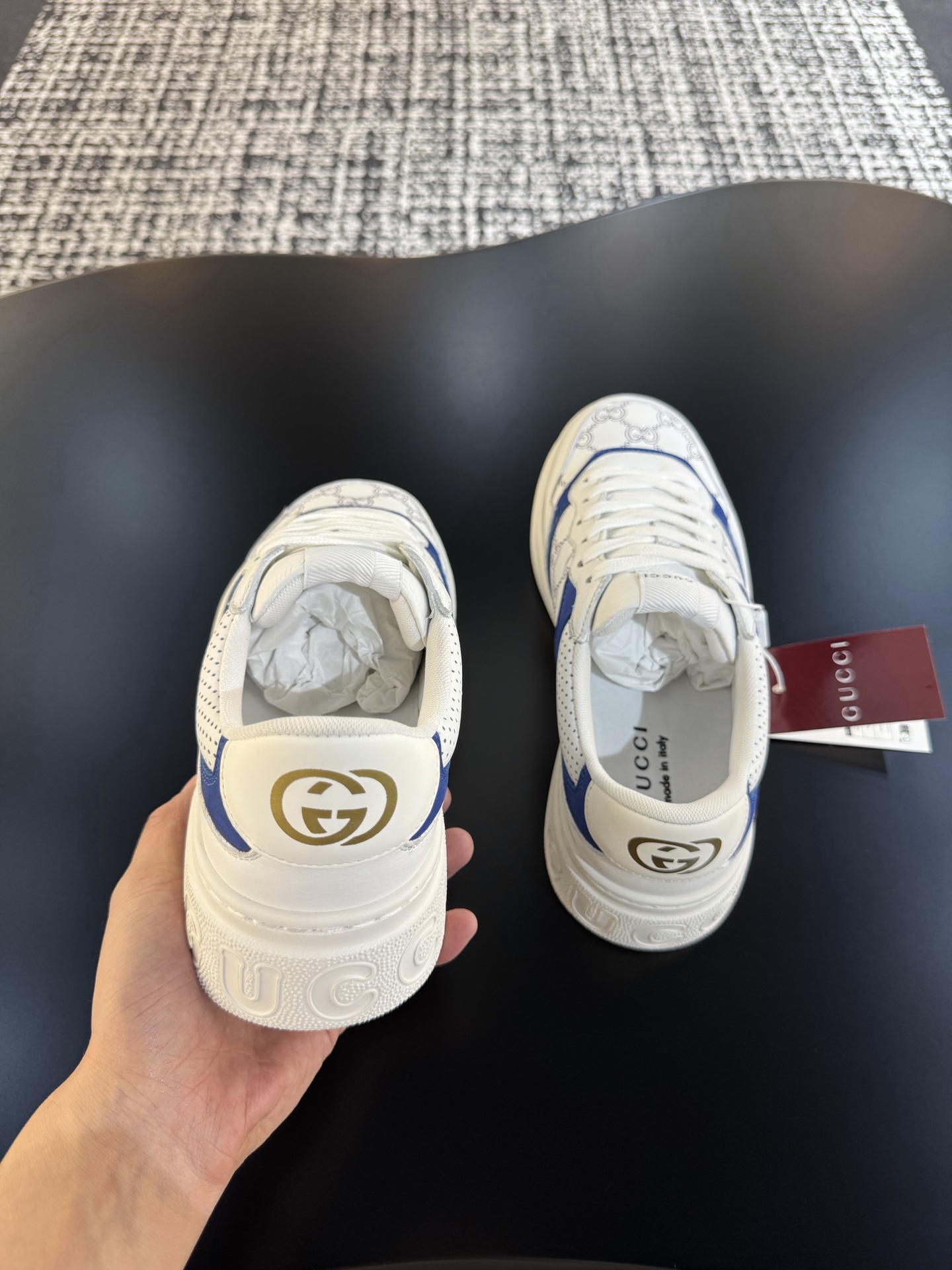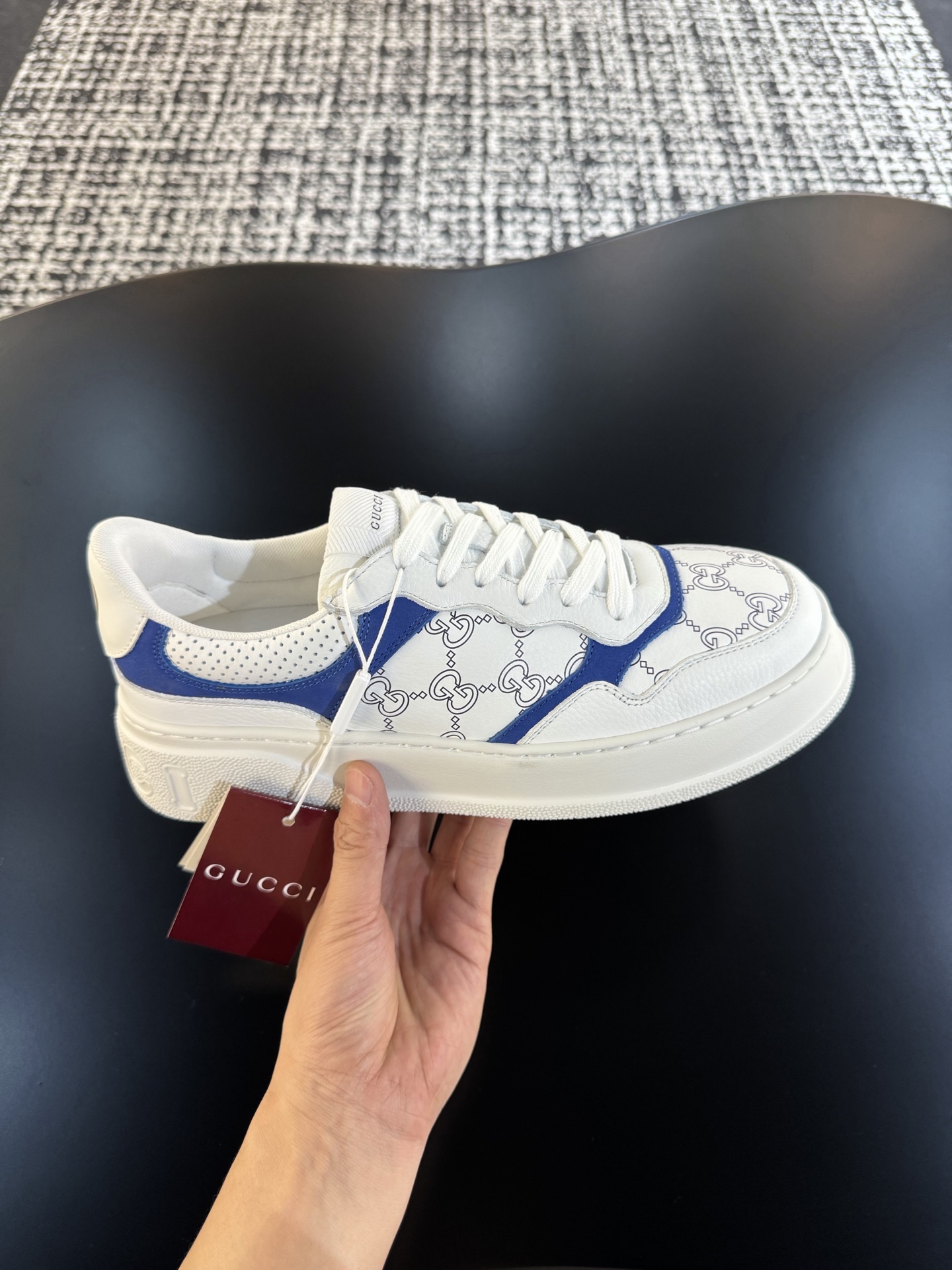 This shoes is AAAAA 1:1 quality (superb). Materials used are identical to the original ones. Gucci trademark marks are indistinguishable to the authentic. Photos take by actual shoes, what you receive will be 100% same with our photos.