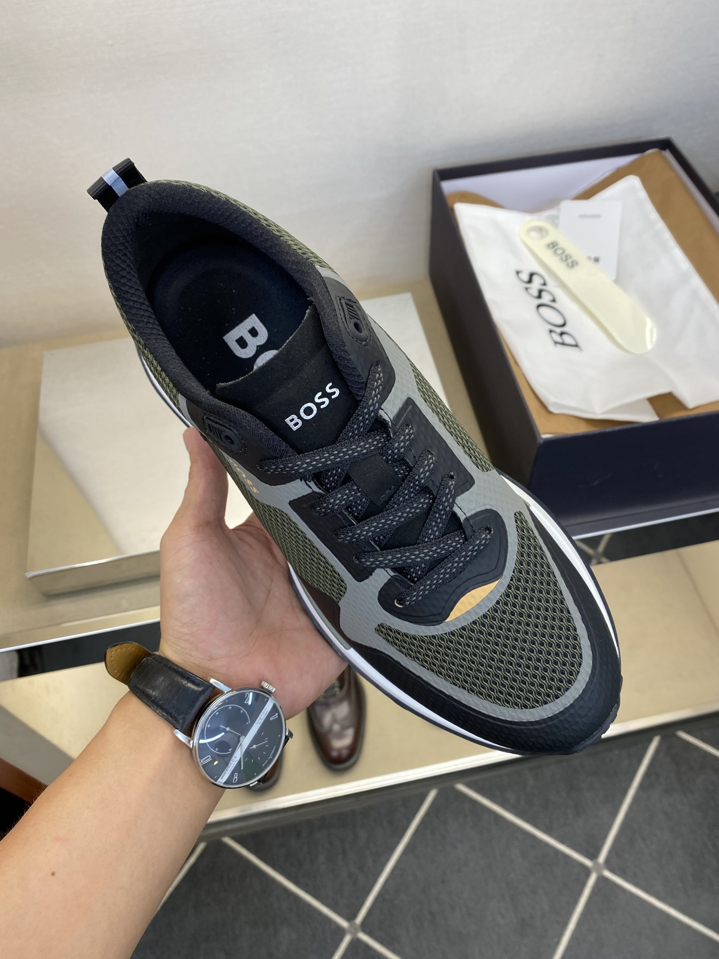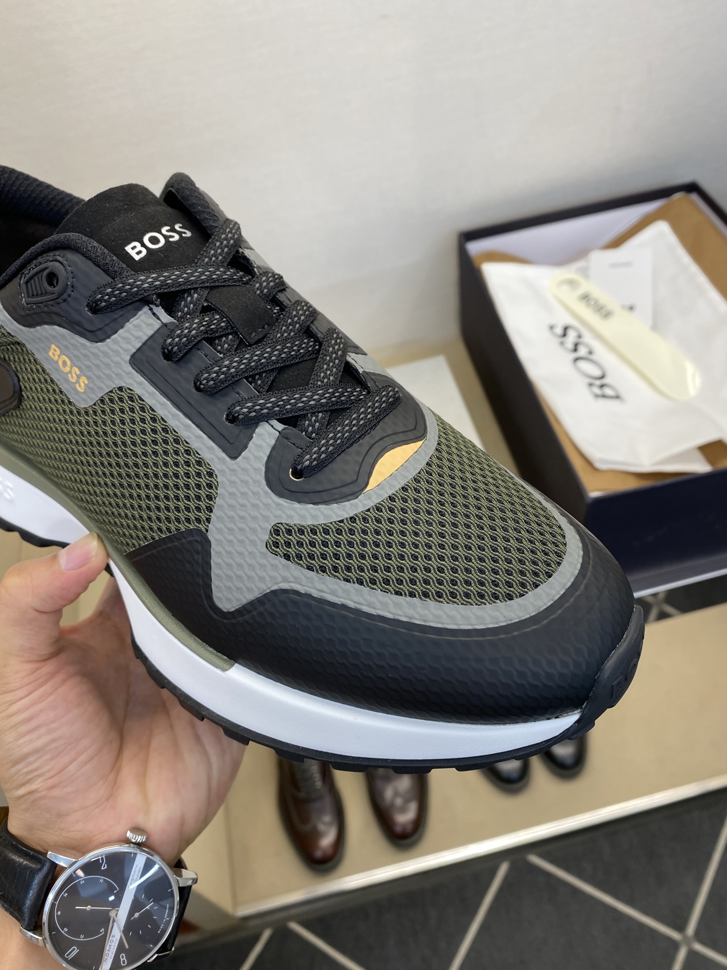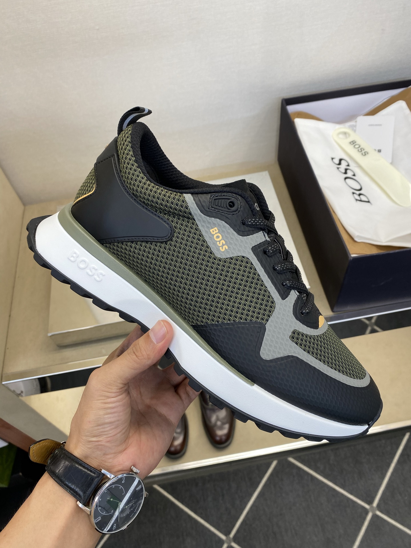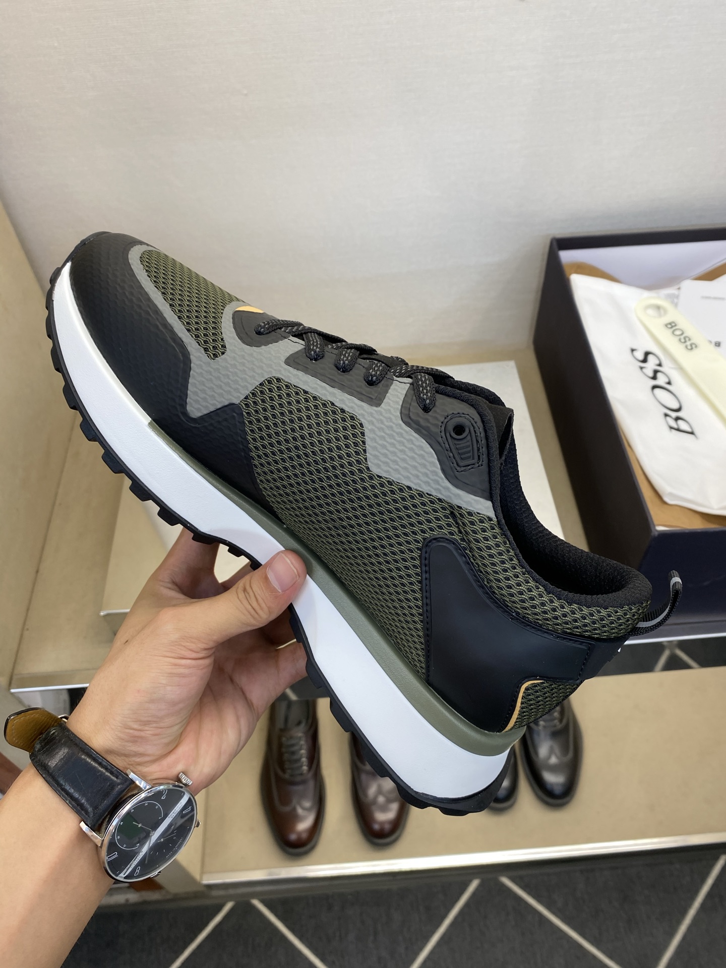 This shoes is AAAAA 1:1 quality (superb). Materials used are identical to the original ones. trademark marks are indistinguishable to the authentic. Photos take by actual shoes, what you receive will be 100% same with our photos.