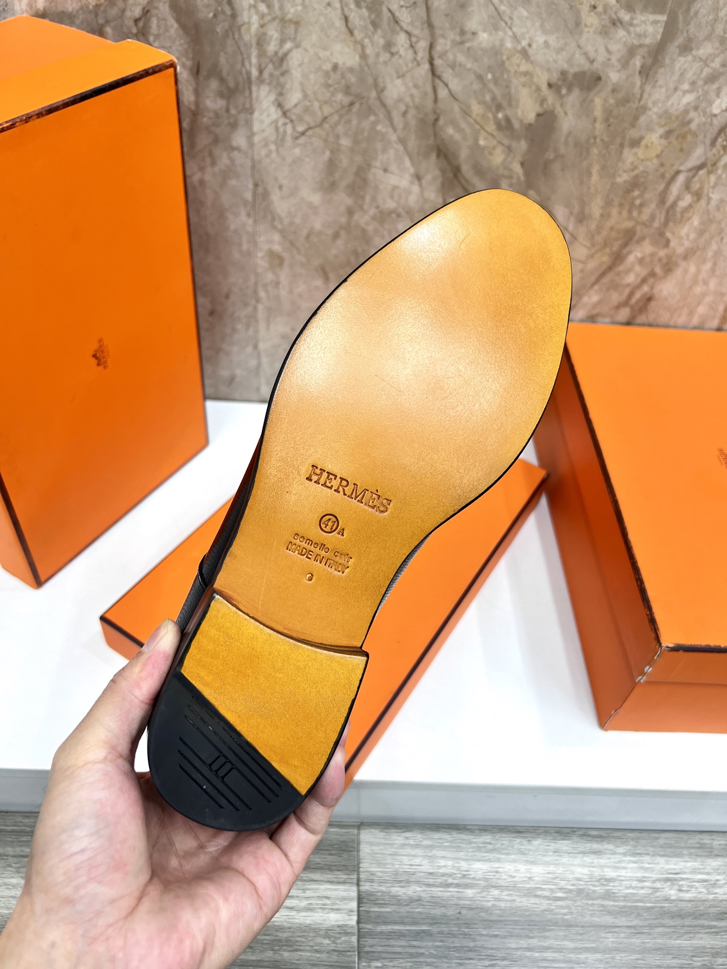 This shoes is AAAAA 1:1 quality (superb). Materials used are identical to the original ones. Hermes trademark marks are indistinguishable to the authentic. Photos take by actual shoes, what you receive will be 100% same with our photos.