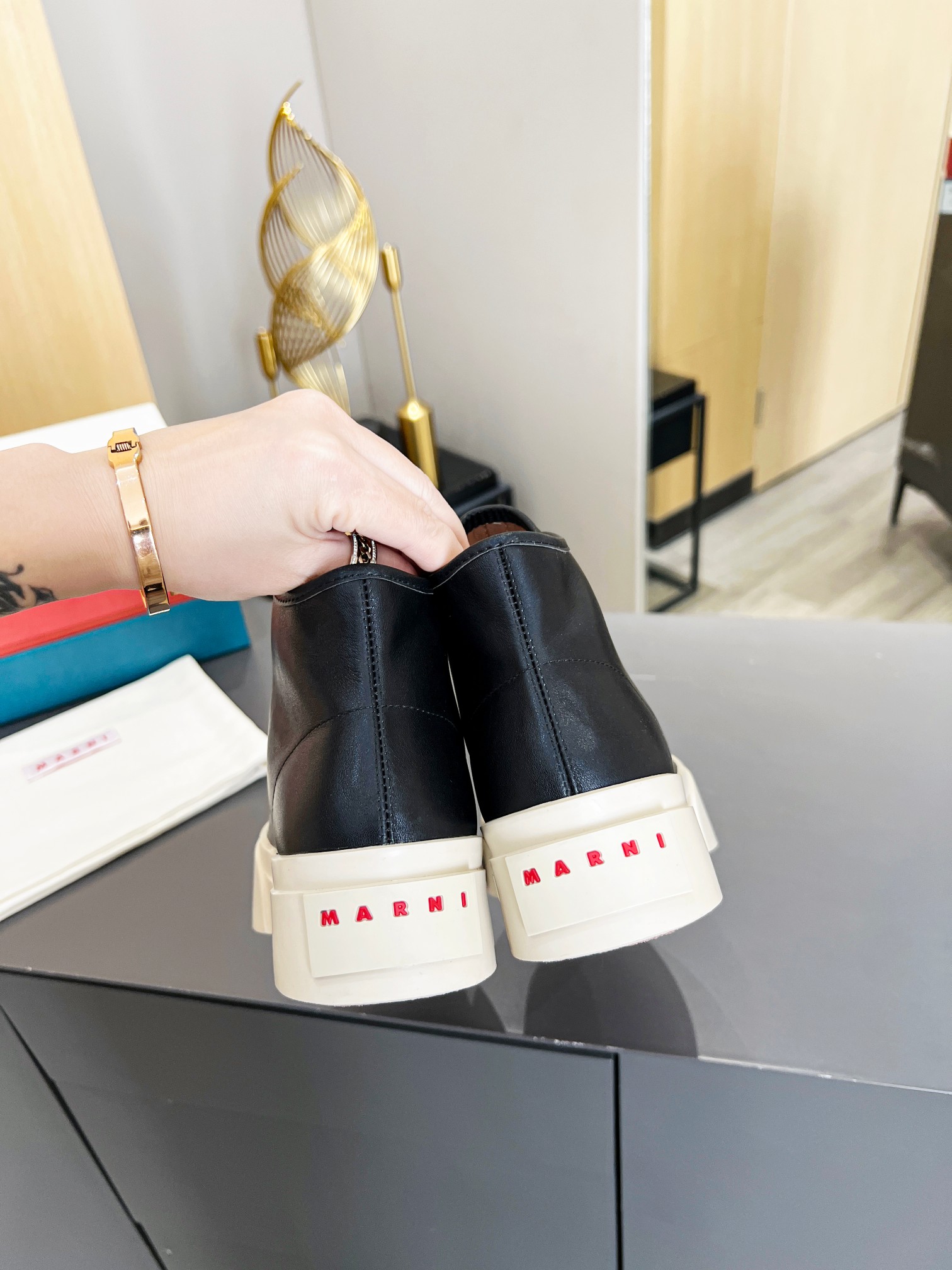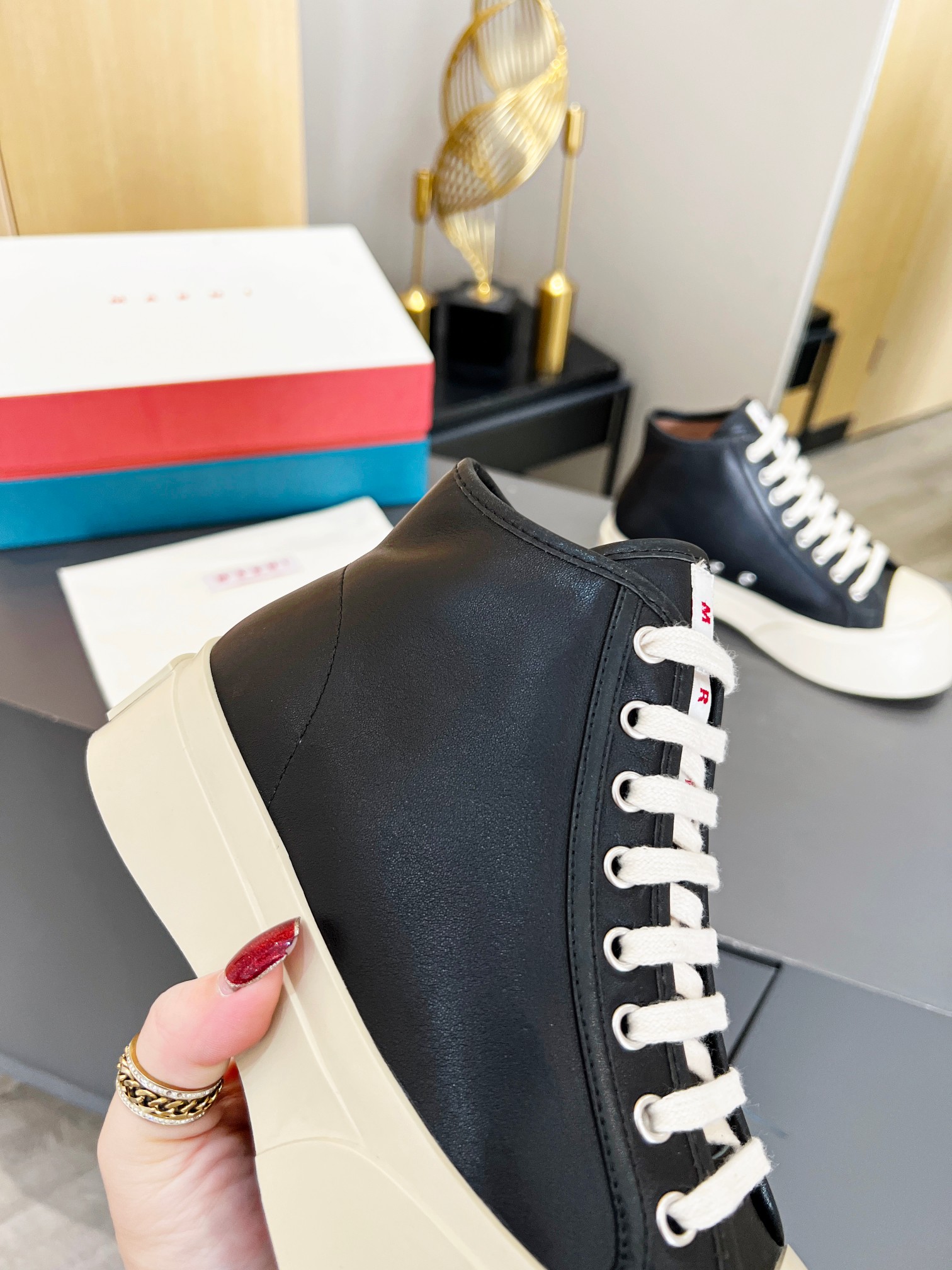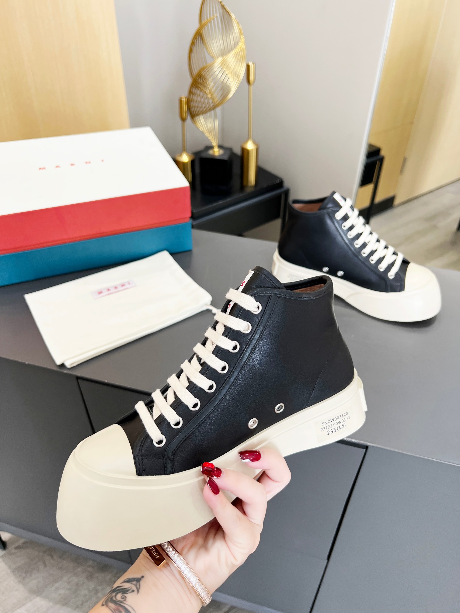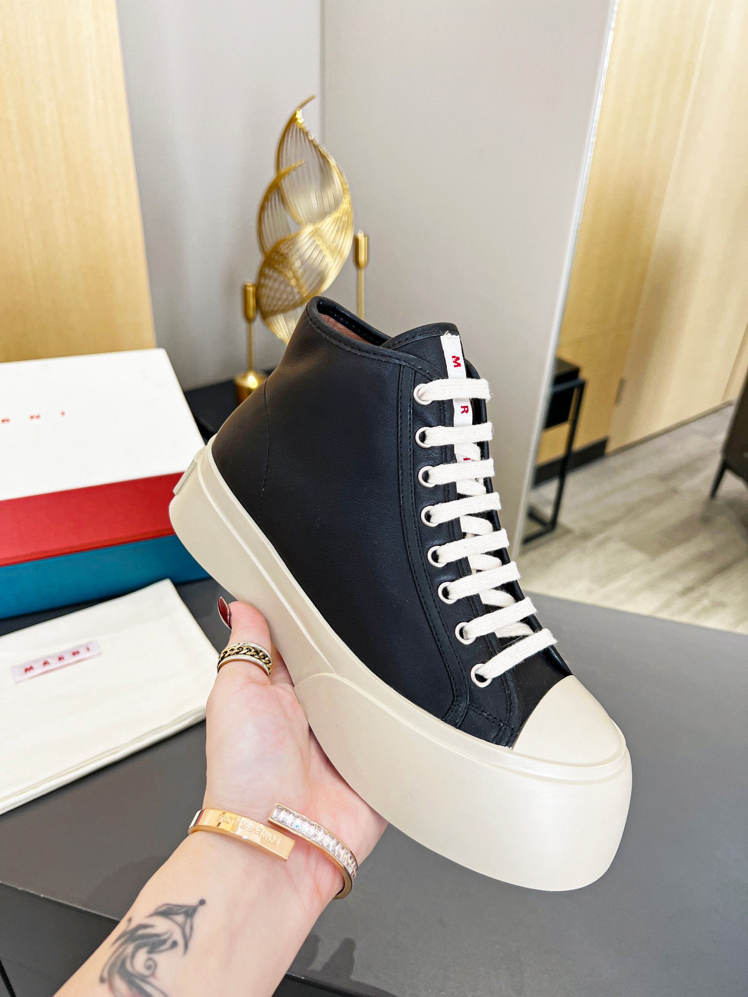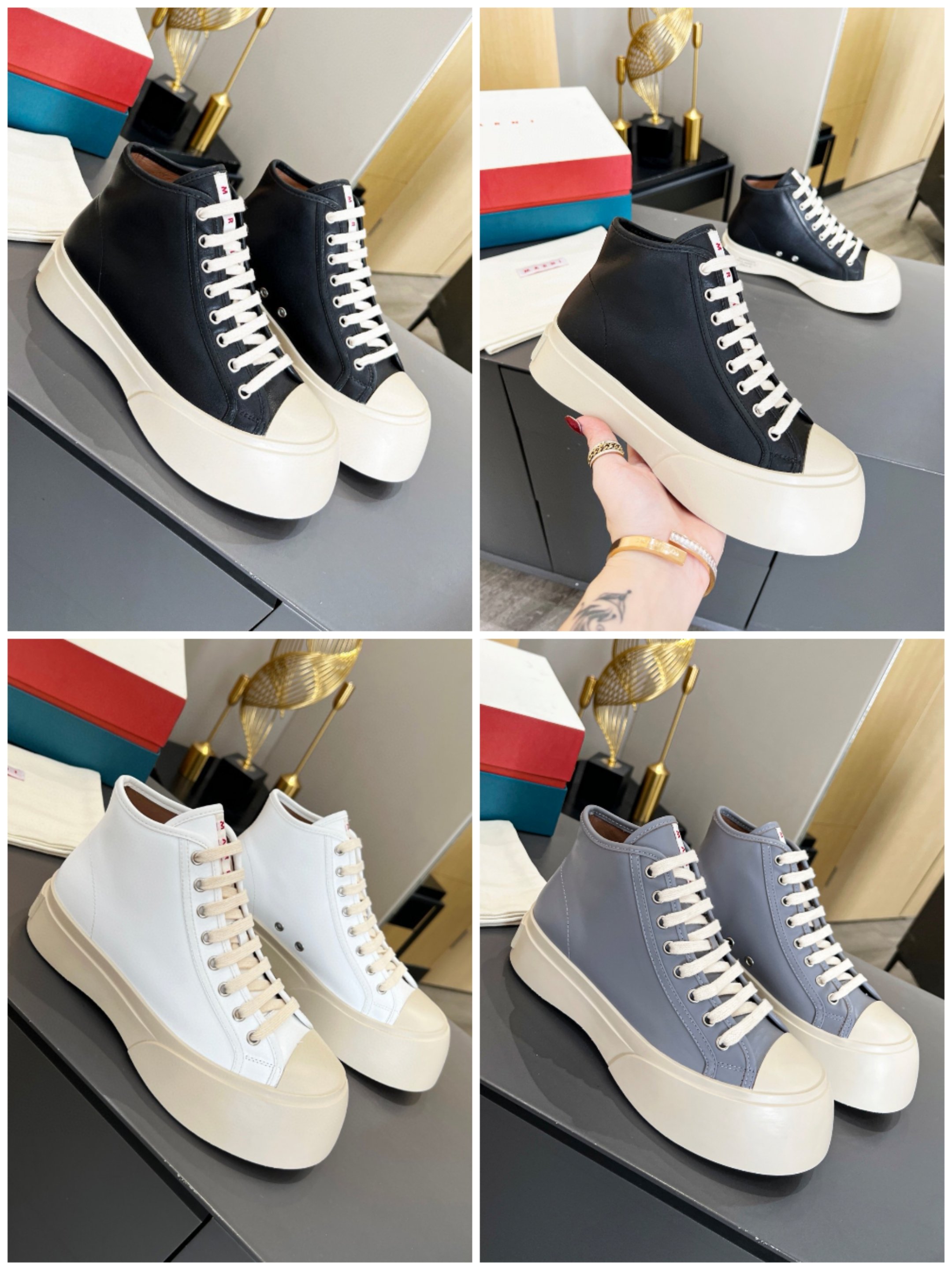 This shoes is AAAAA 1:1 quality (superb). Materials used are identical to the original ones. Marni trademark marks are indistinguishable to the authentic. Photos take by actual shoes, what you receive will be 100% same with our photos.