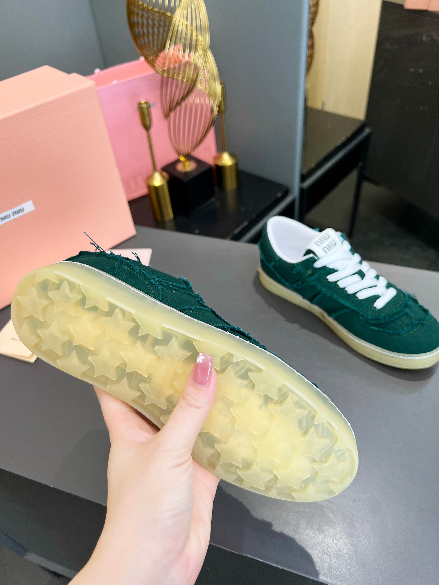 NO:4372823. The shoes is from Miu Miu designer.