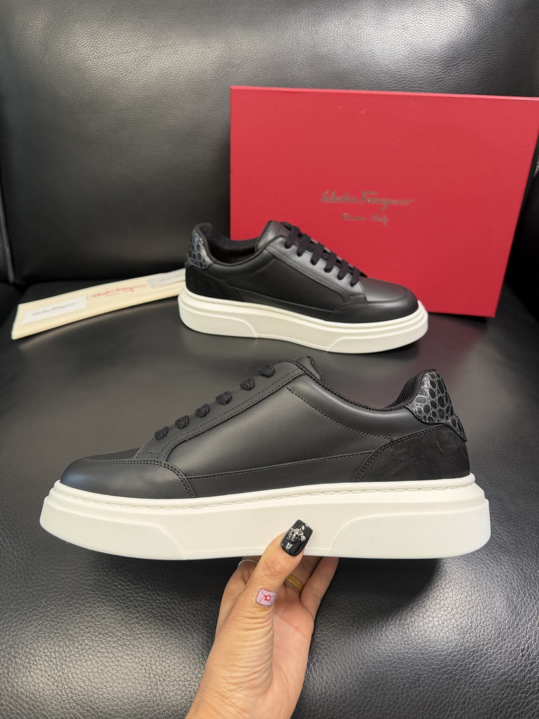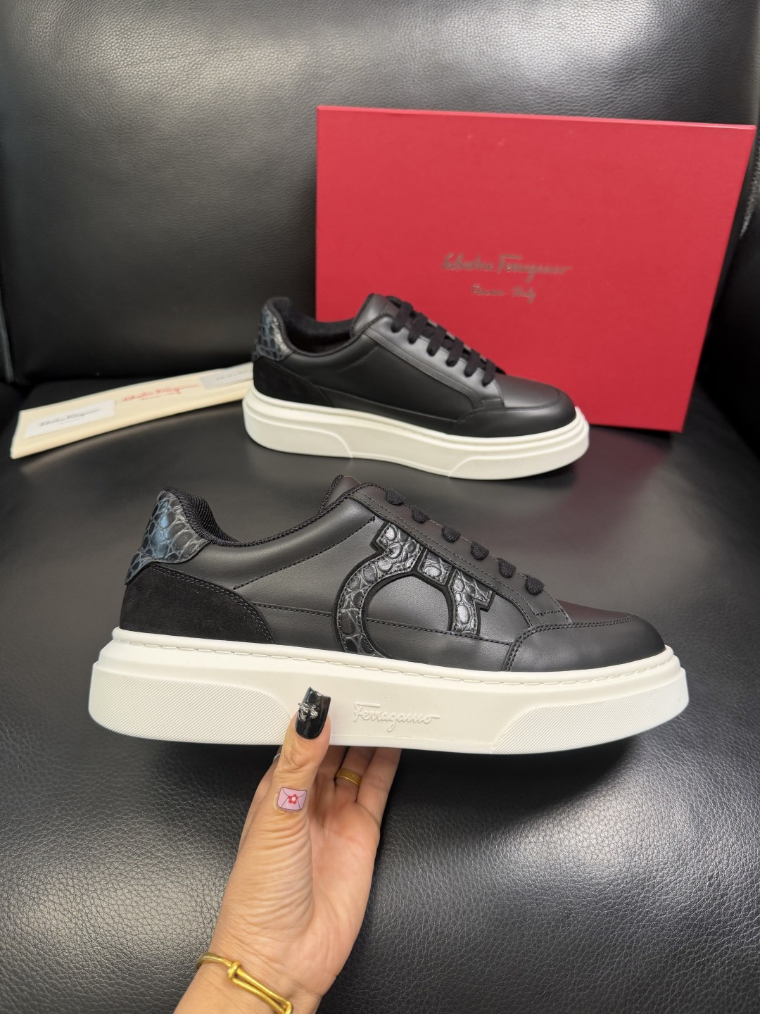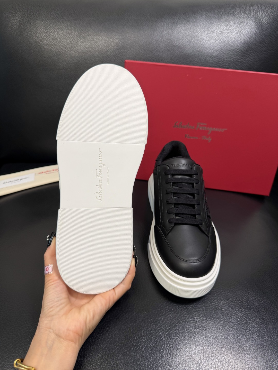 This shoes is AAAAA 1:1 quality (superb). Materials used are identical to the original ones. Salvatore Ferragamo trademark marks are indistinguishable to the authentic. Photos take by actual shoes, what you receive will be 100% same with our photos.
