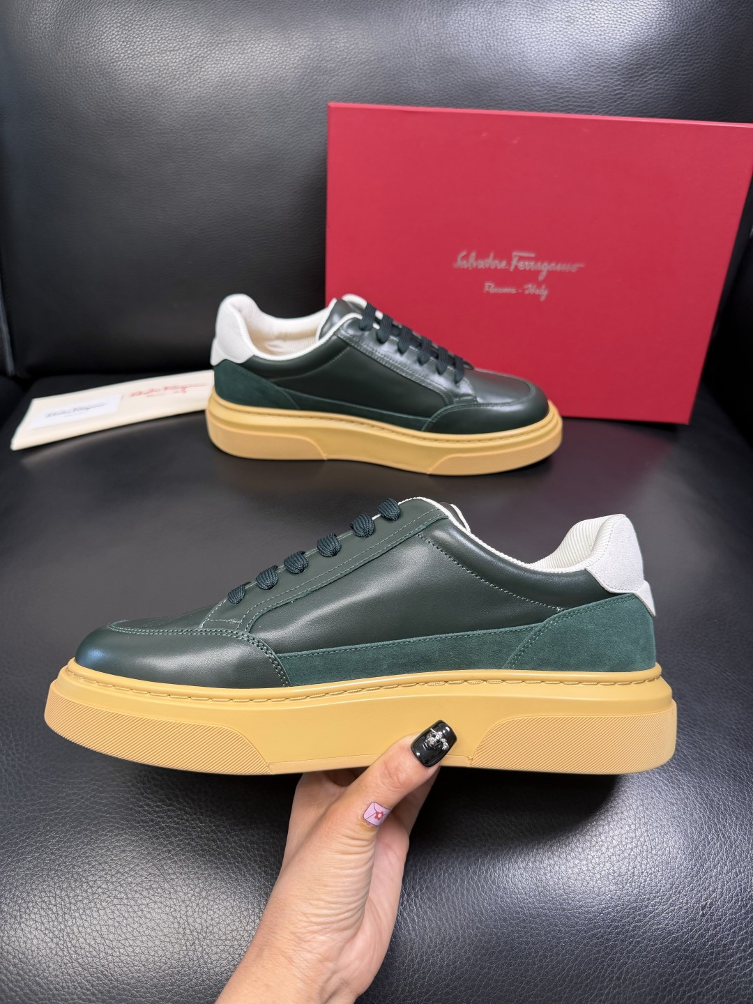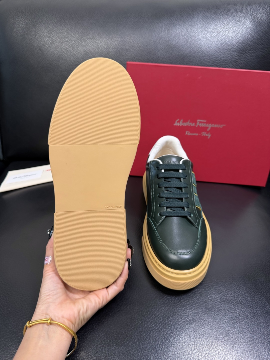 This shoes is AAAAA 1:1 quality (superb). Materials used are identical to the original ones. Salvatore Ferragamo trademark marks are indistinguishable to the authentic. Photos take by actual shoes, what you receive will be 100% same with our photos.