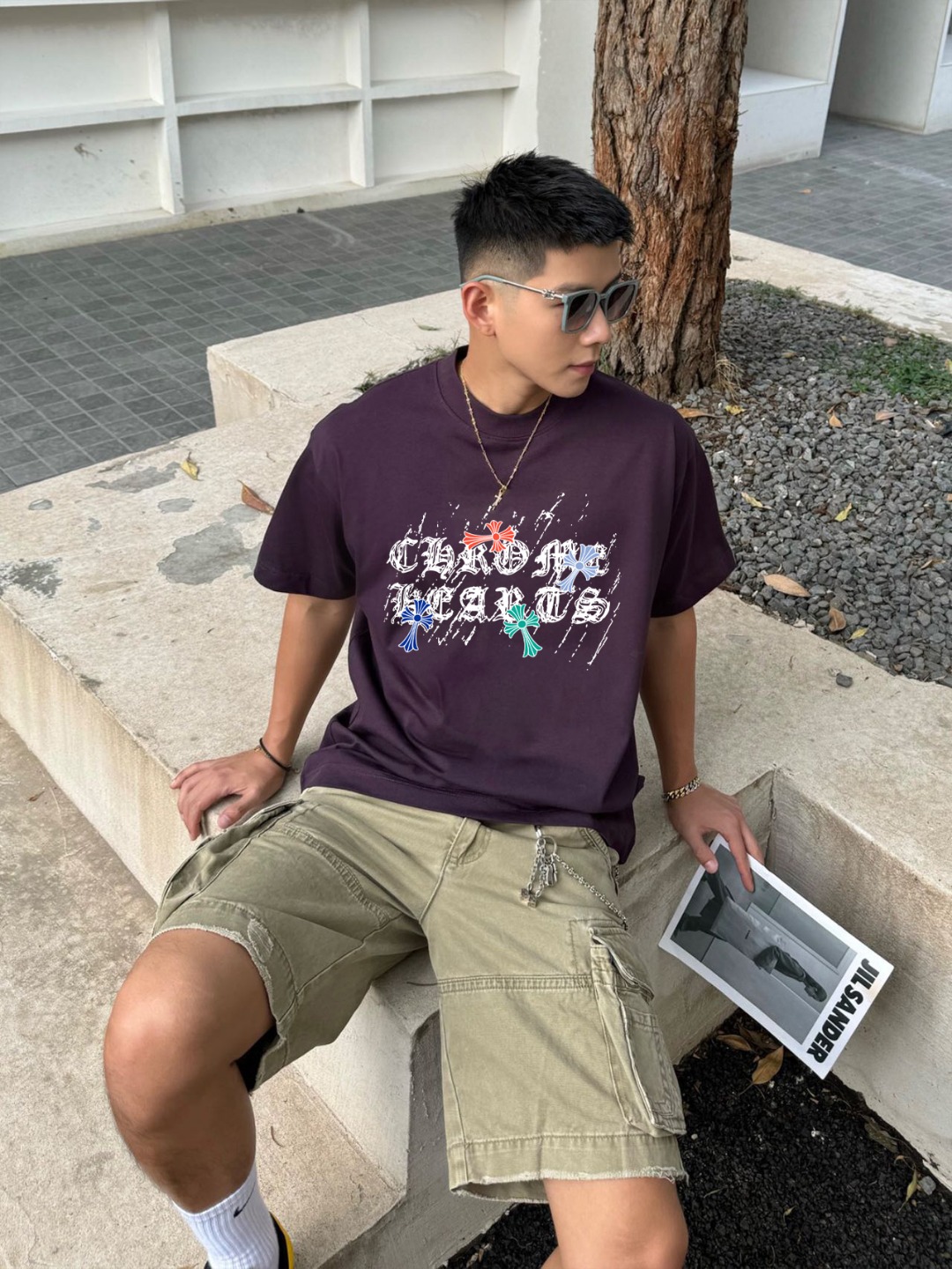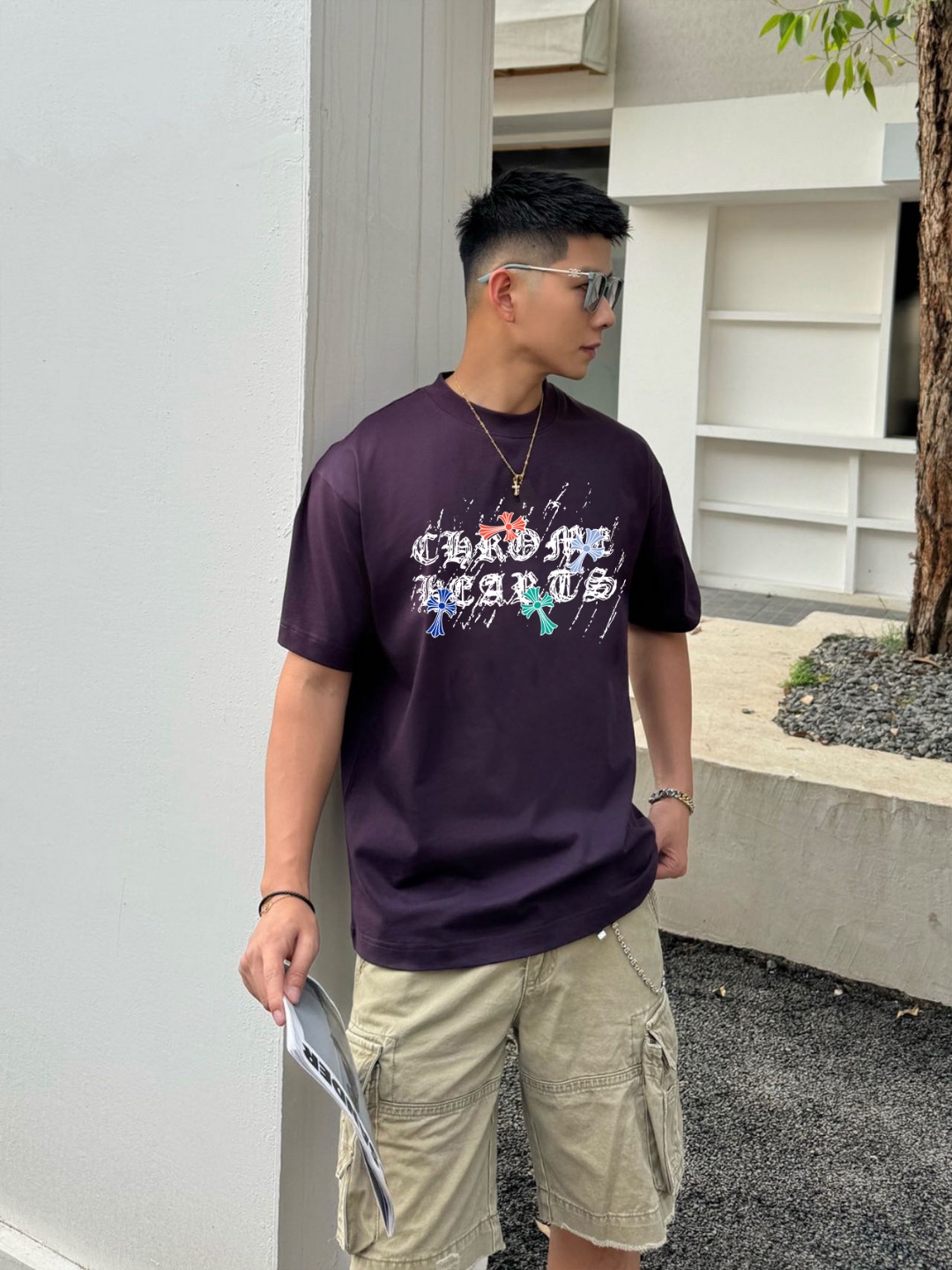 NO:4383099. The clothes is from Chrome Hearts designer.