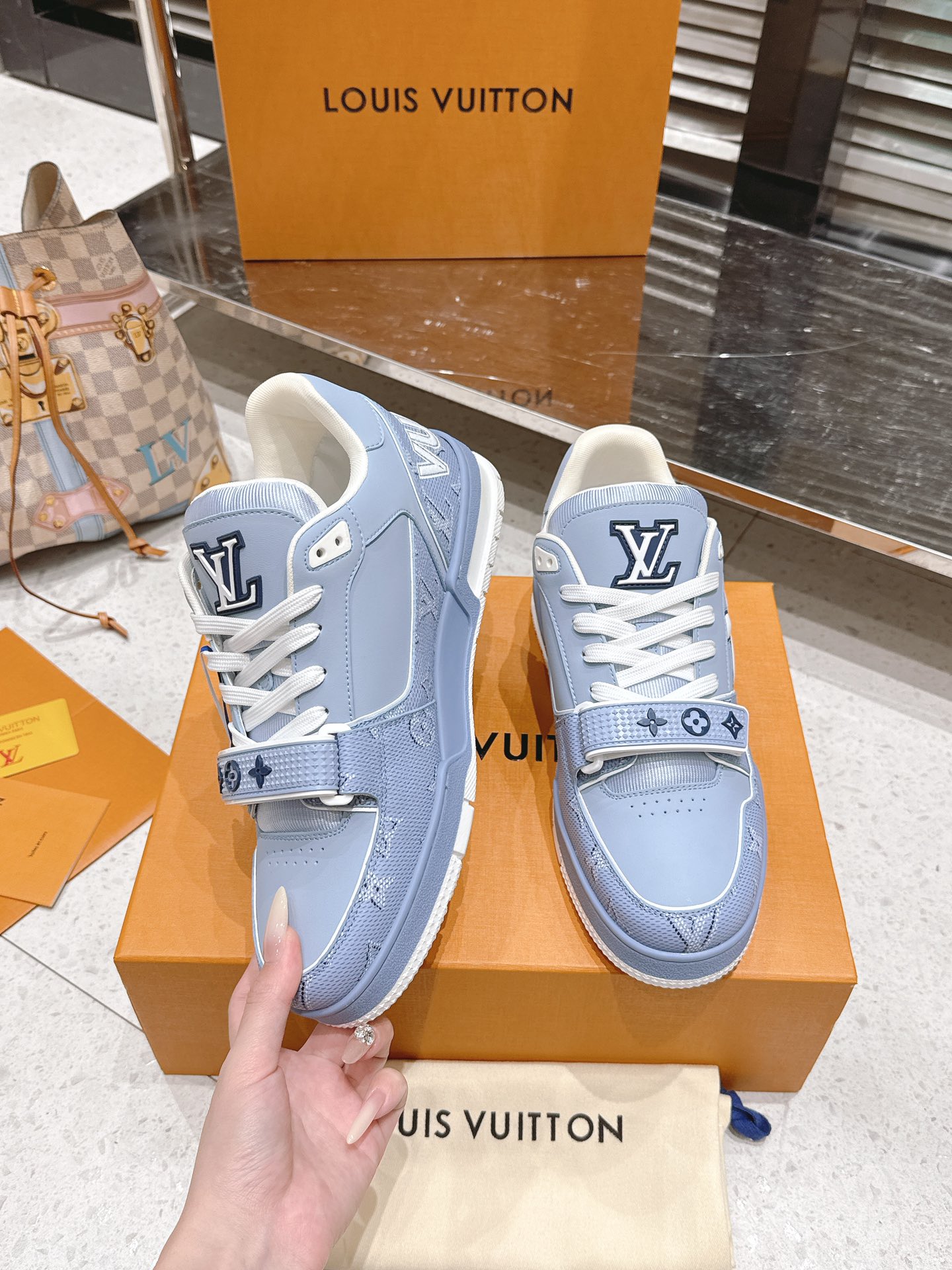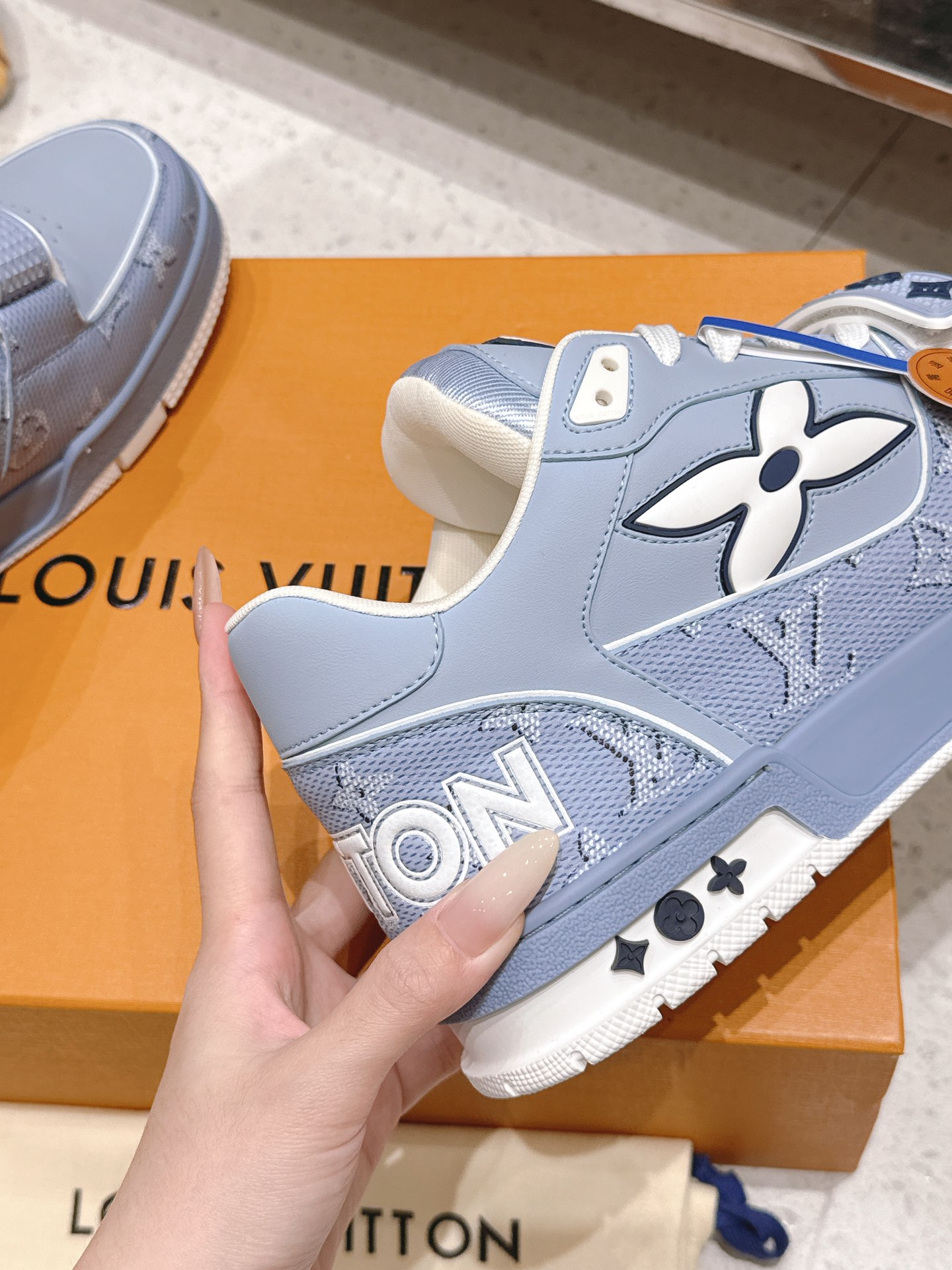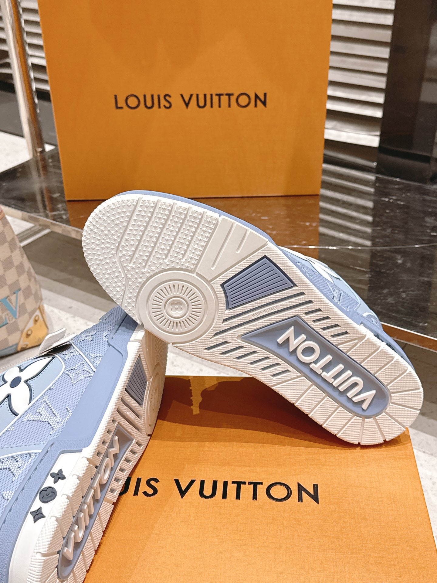 This shoes is AAAAA 1:1 quality (superb). Materials used are identical to the original ones. Louis Vuitton trademark marks are indistinguishable to the authentic. Photos take by actual shoes, what you receive will be 100% same with our photos.