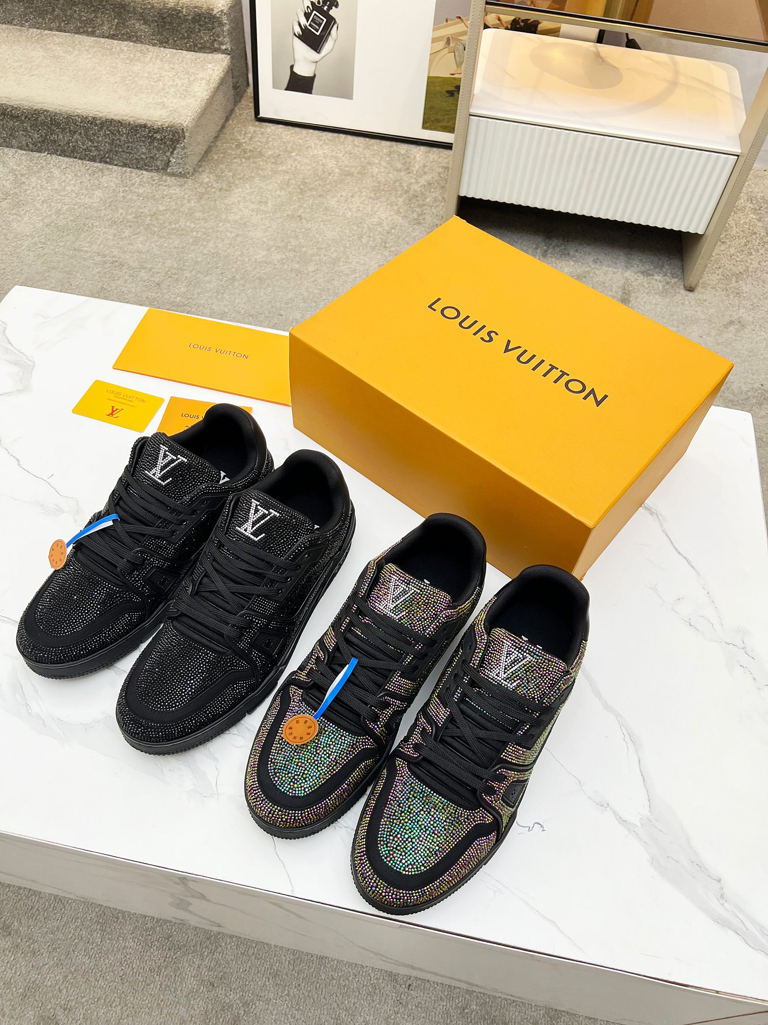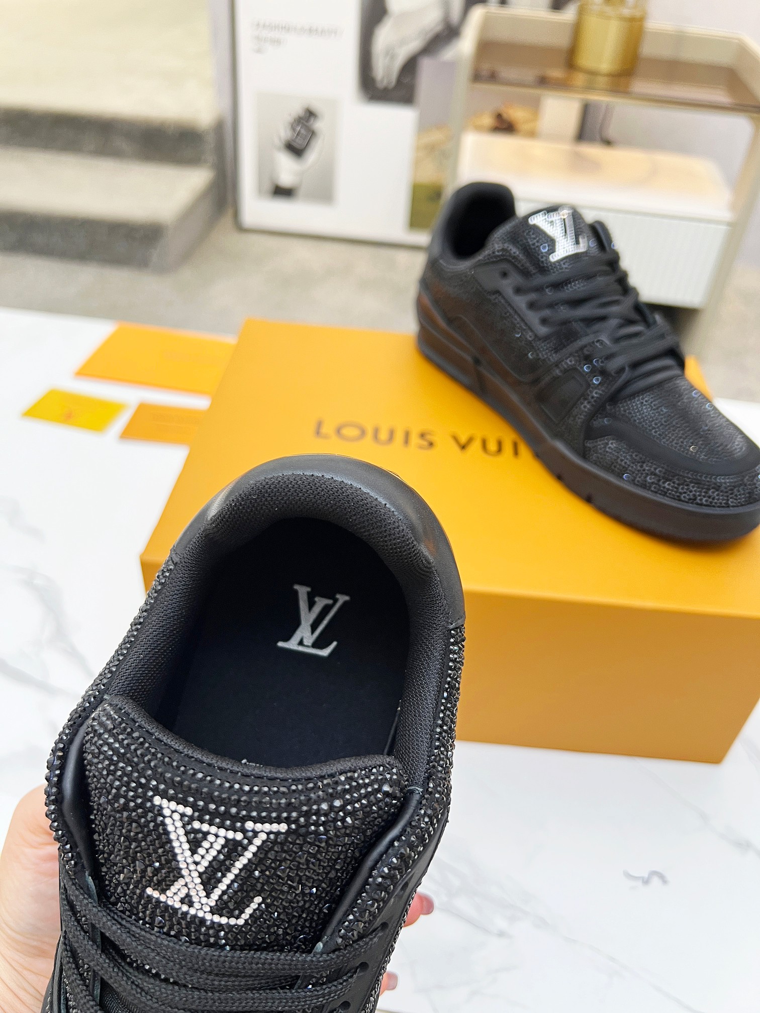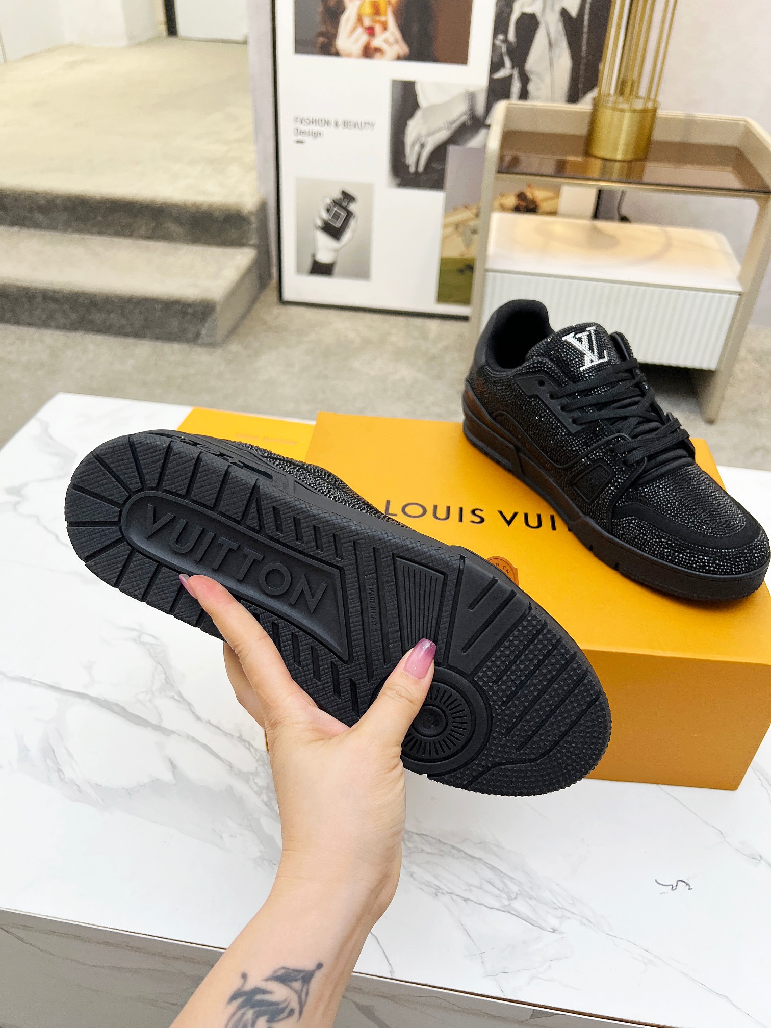 This shoes is AAAAA 1:1 quality (superb). Materials used are identical to the original ones. Louis Vuitton trademark marks are indistinguishable to the authentic. Photos take by actual shoes, what you receive will be 100% same with our photos.