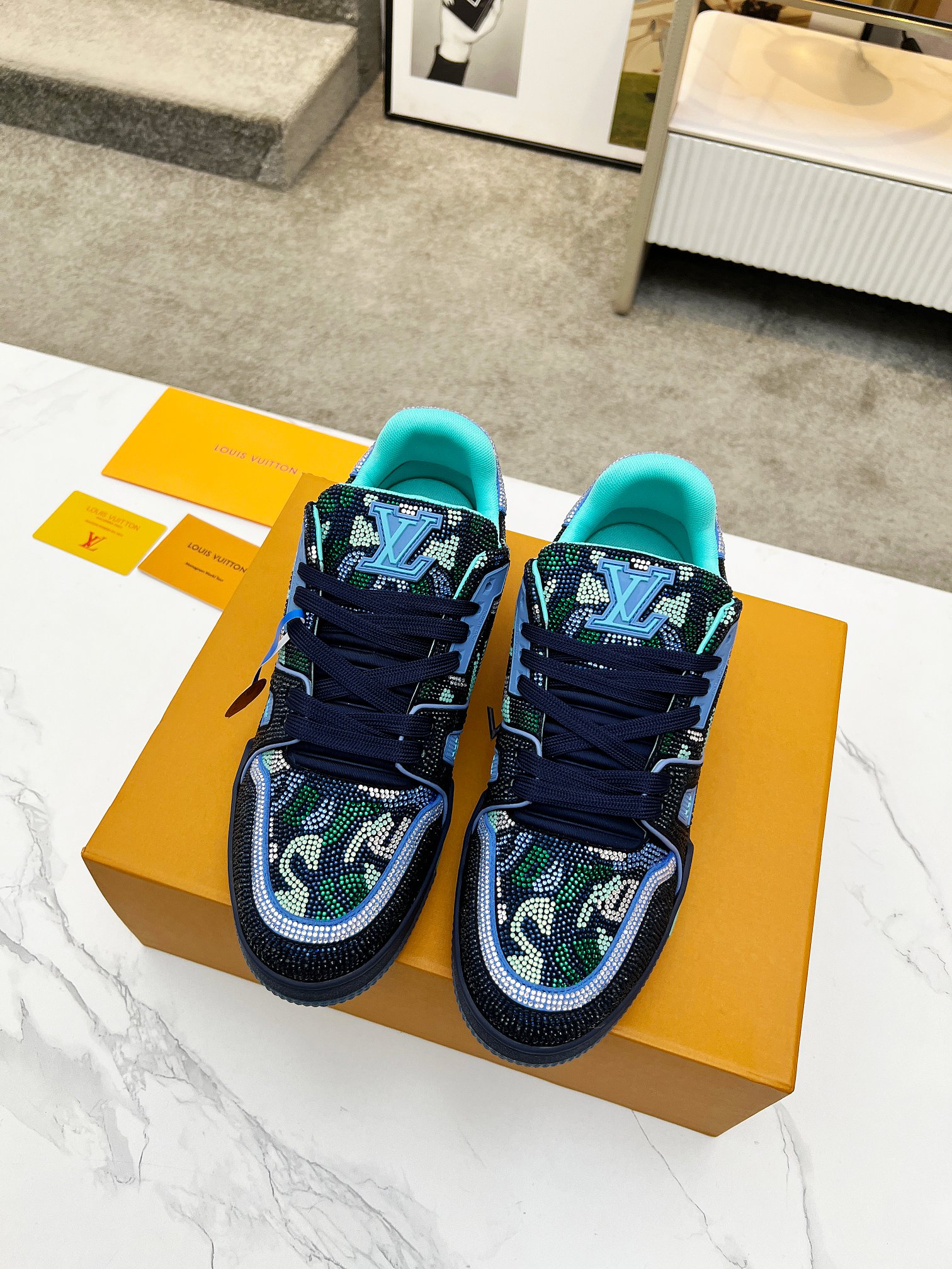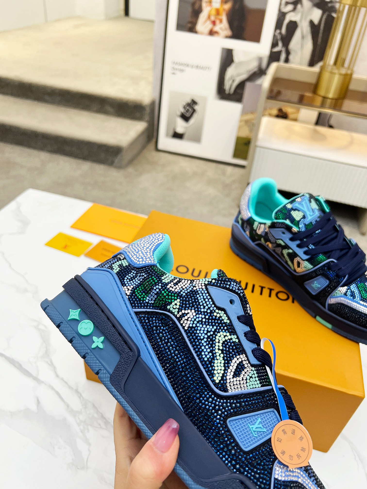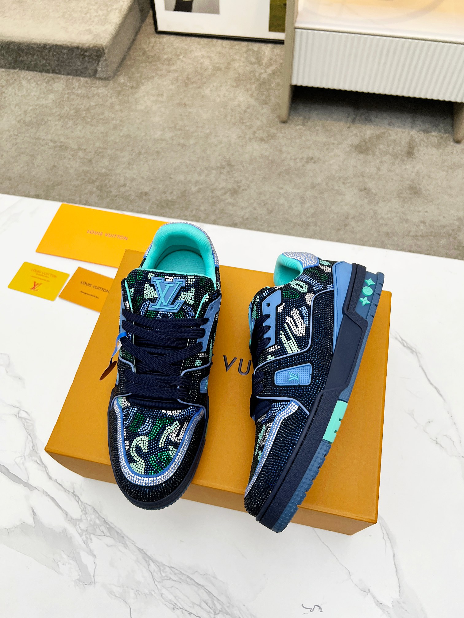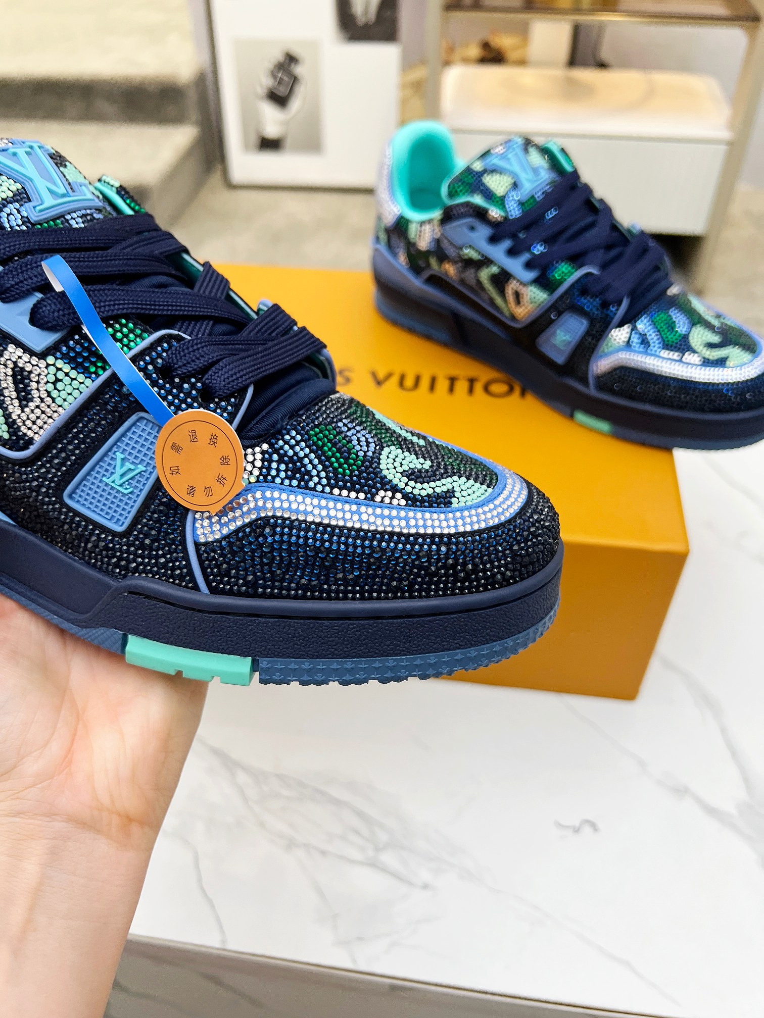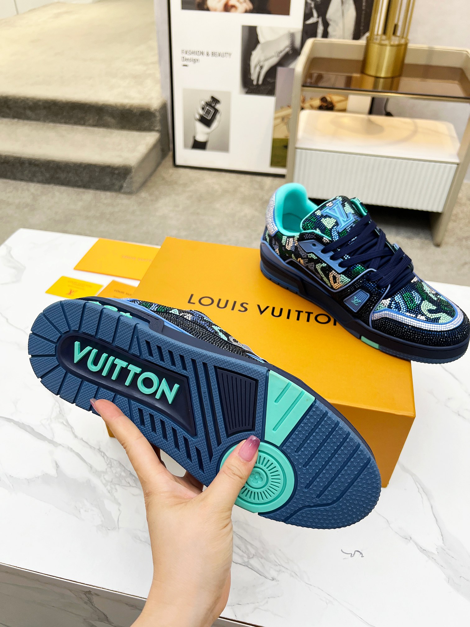 This shoes is AAAAA 1:1 quality (superb). Materials used are identical to the original ones. Louis Vuitton trademark marks are indistinguishable to the authentic. Photos take by actual shoes, what you receive will be 100% same with our photos.