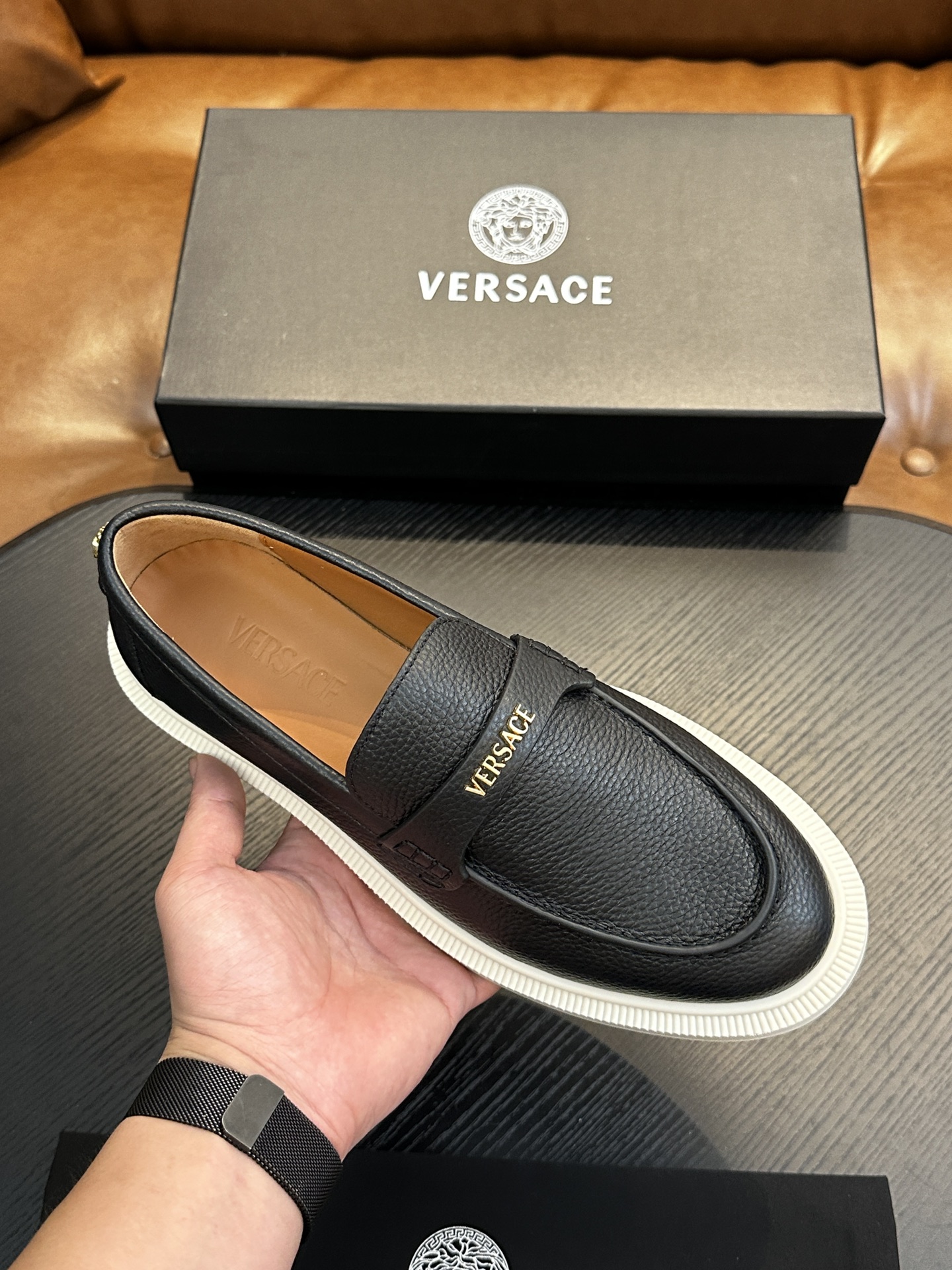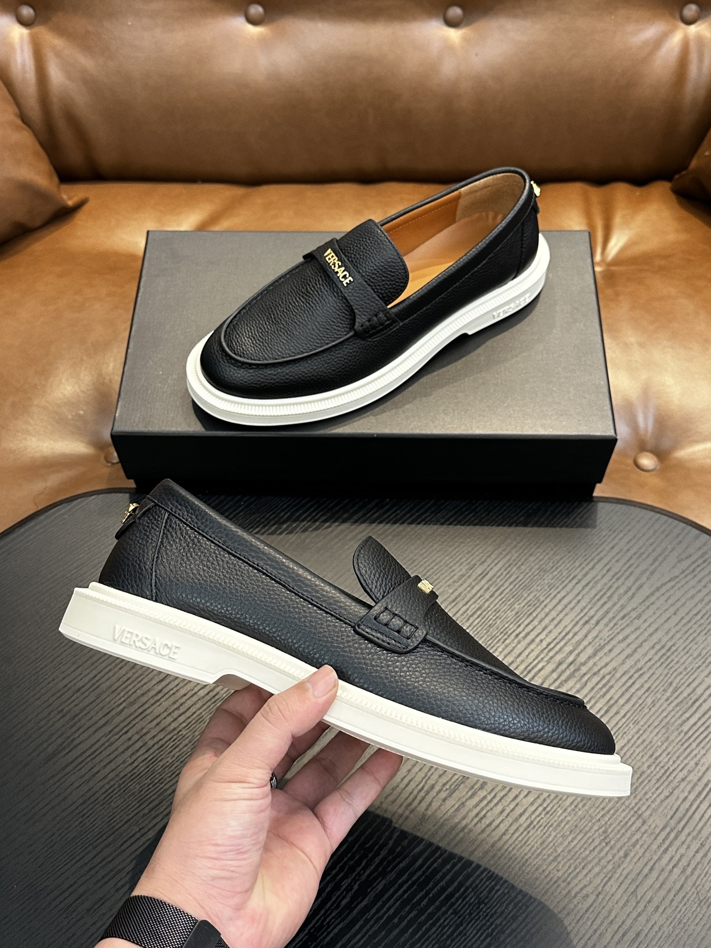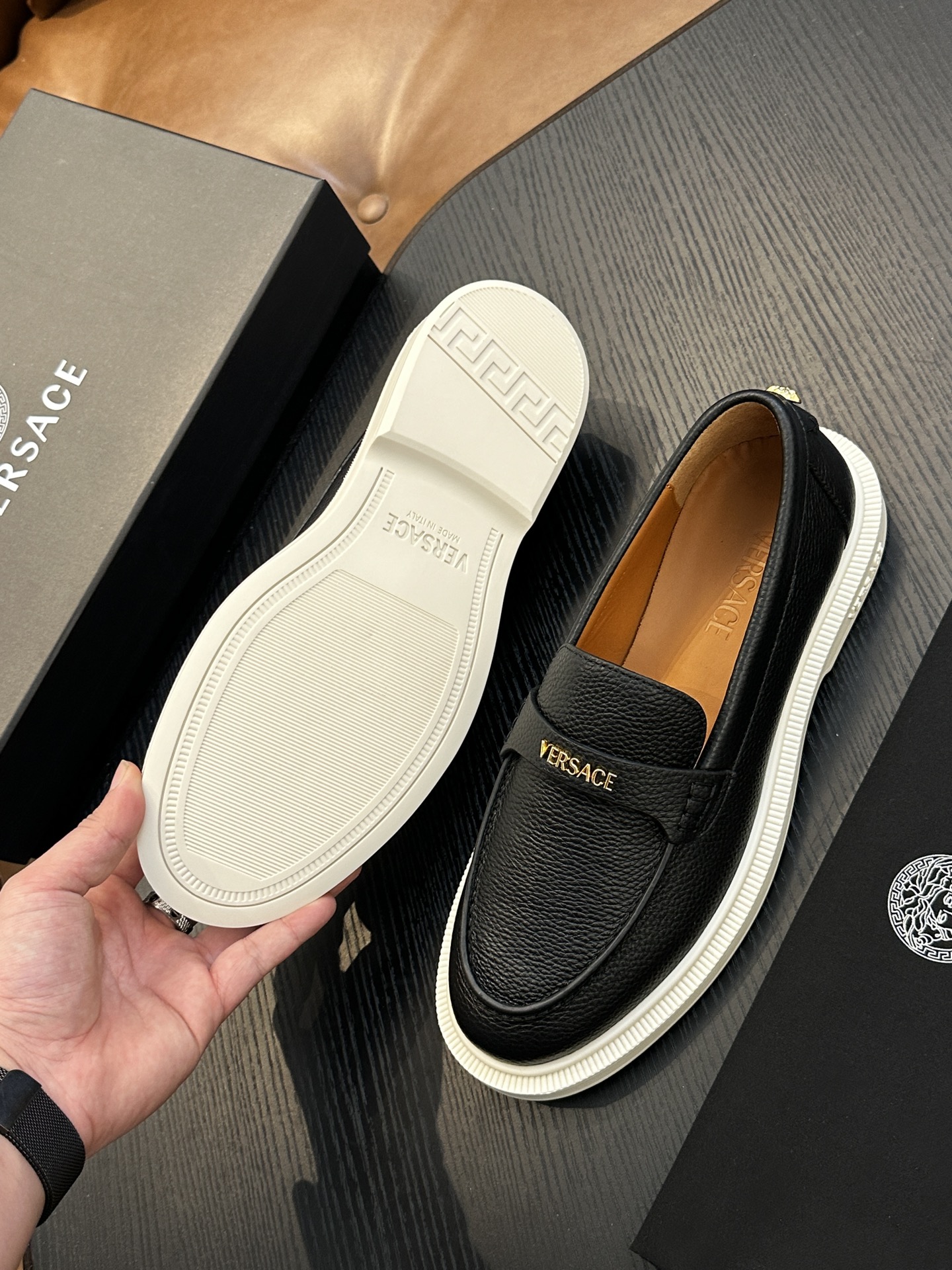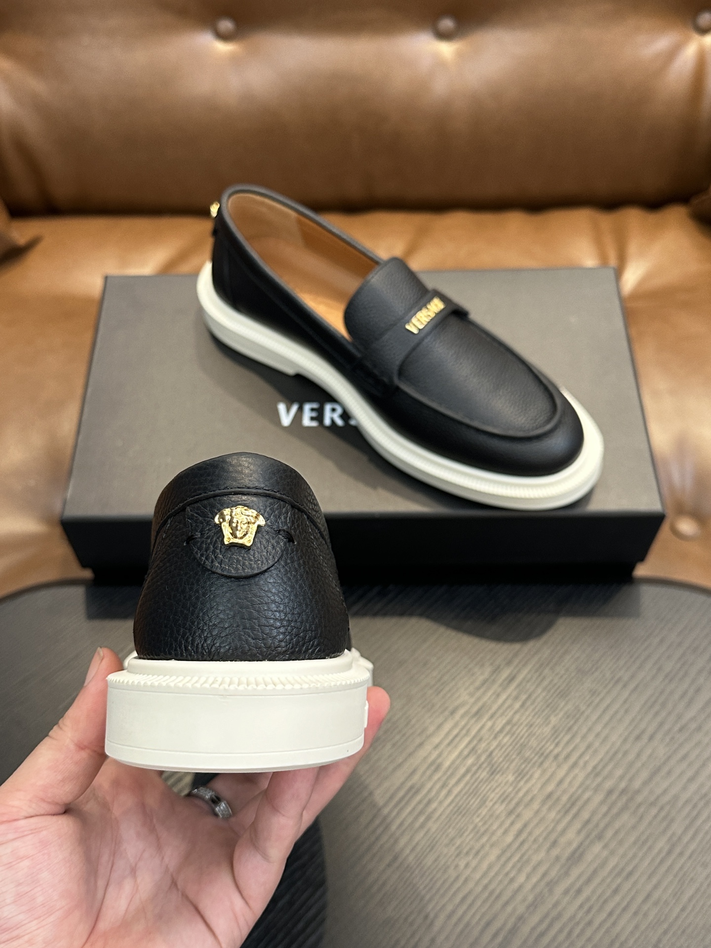 This shoes is AAAAA 1:1 quality (superb). Materials used are identical to the original ones. Versace trademark marks are indistinguishable to the authentic. Photos take by actual shoes, what you receive will be 100% same with our photos.