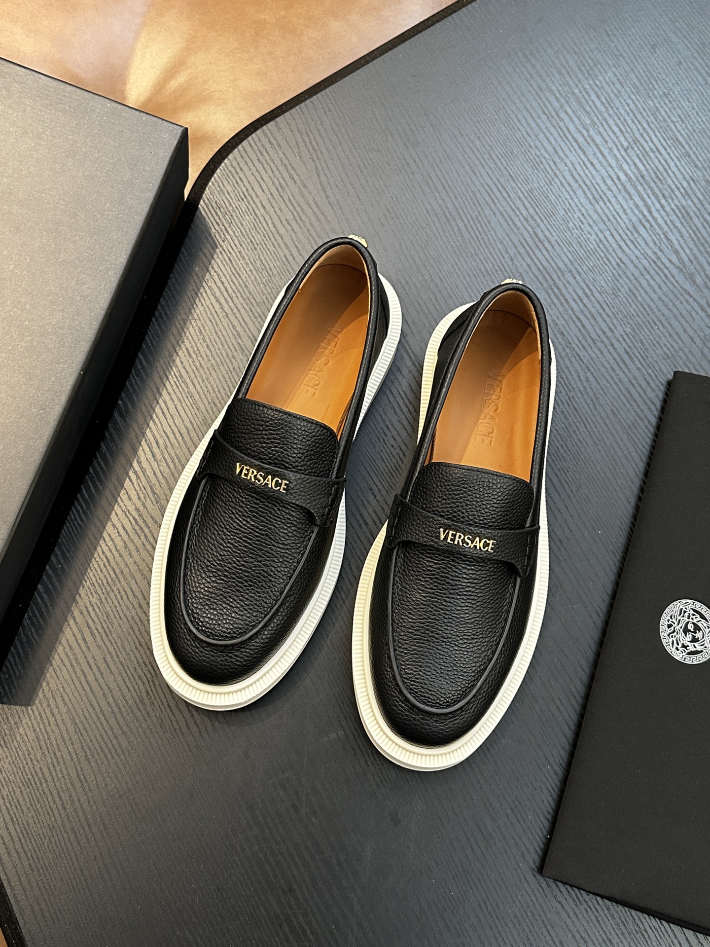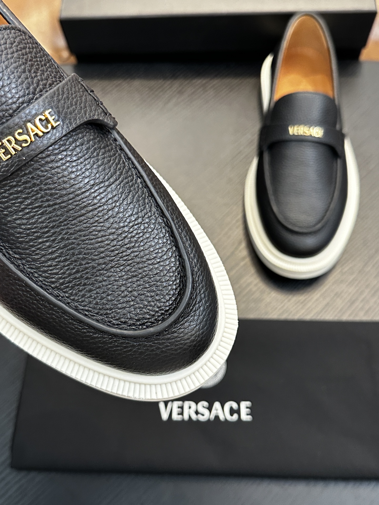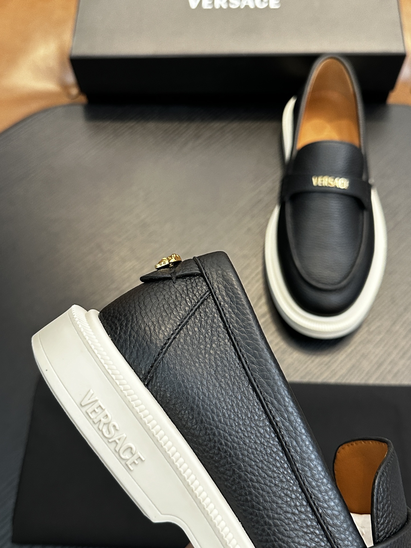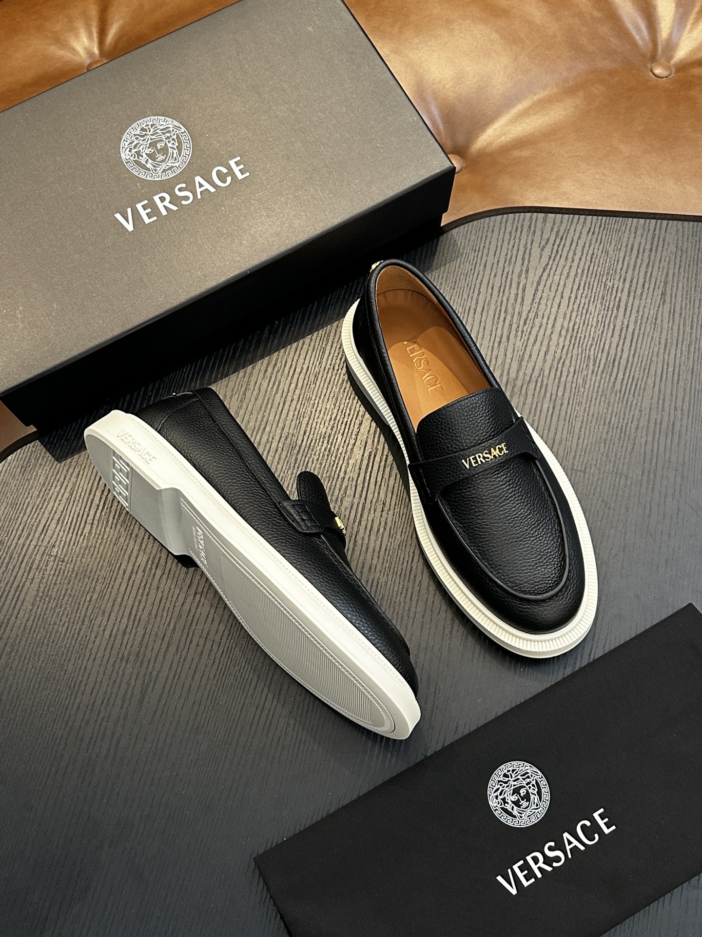 This shoes is AAAAA 1:1 quality (superb). Materials used are identical to the original ones. Versace trademark marks are indistinguishable to the authentic. Photos take by actual shoes, what you receive will be 100% same with our photos.