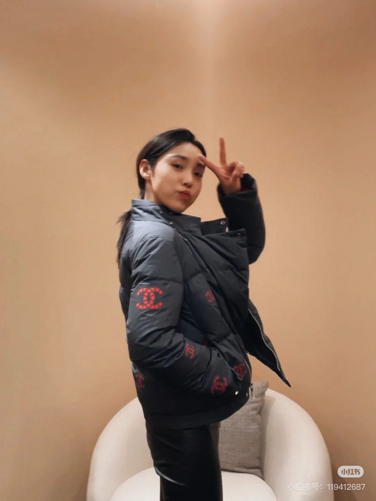 NO:4386182. The clothes is from Chanel designer.