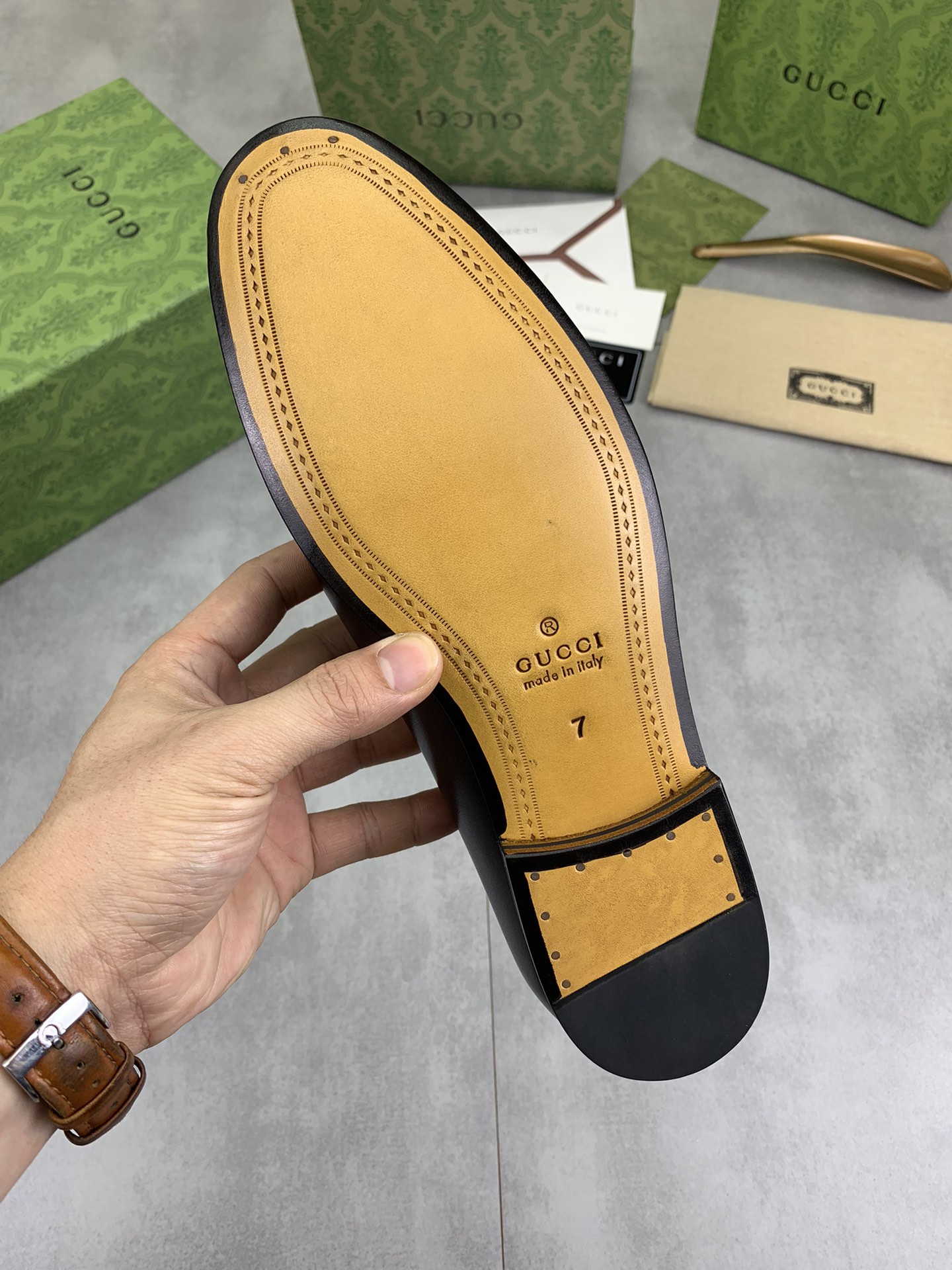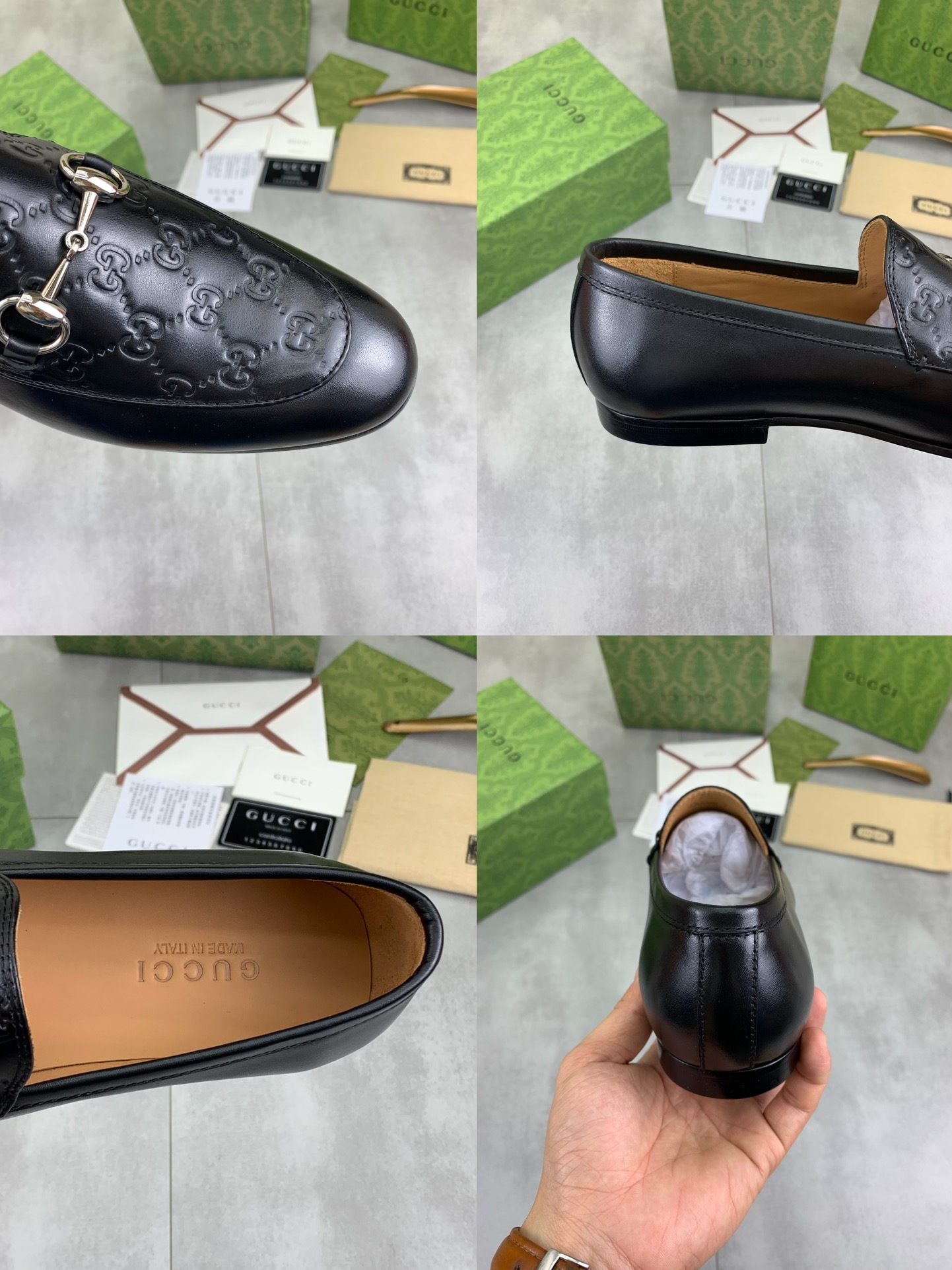 This shoes is AAAAA 1:1 quality (superb). Materials used are identical to the original ones. Gucci trademark marks are indistinguishable to the authentic. Photos take by actual shoes, what you receive will be 100% same with our photos.