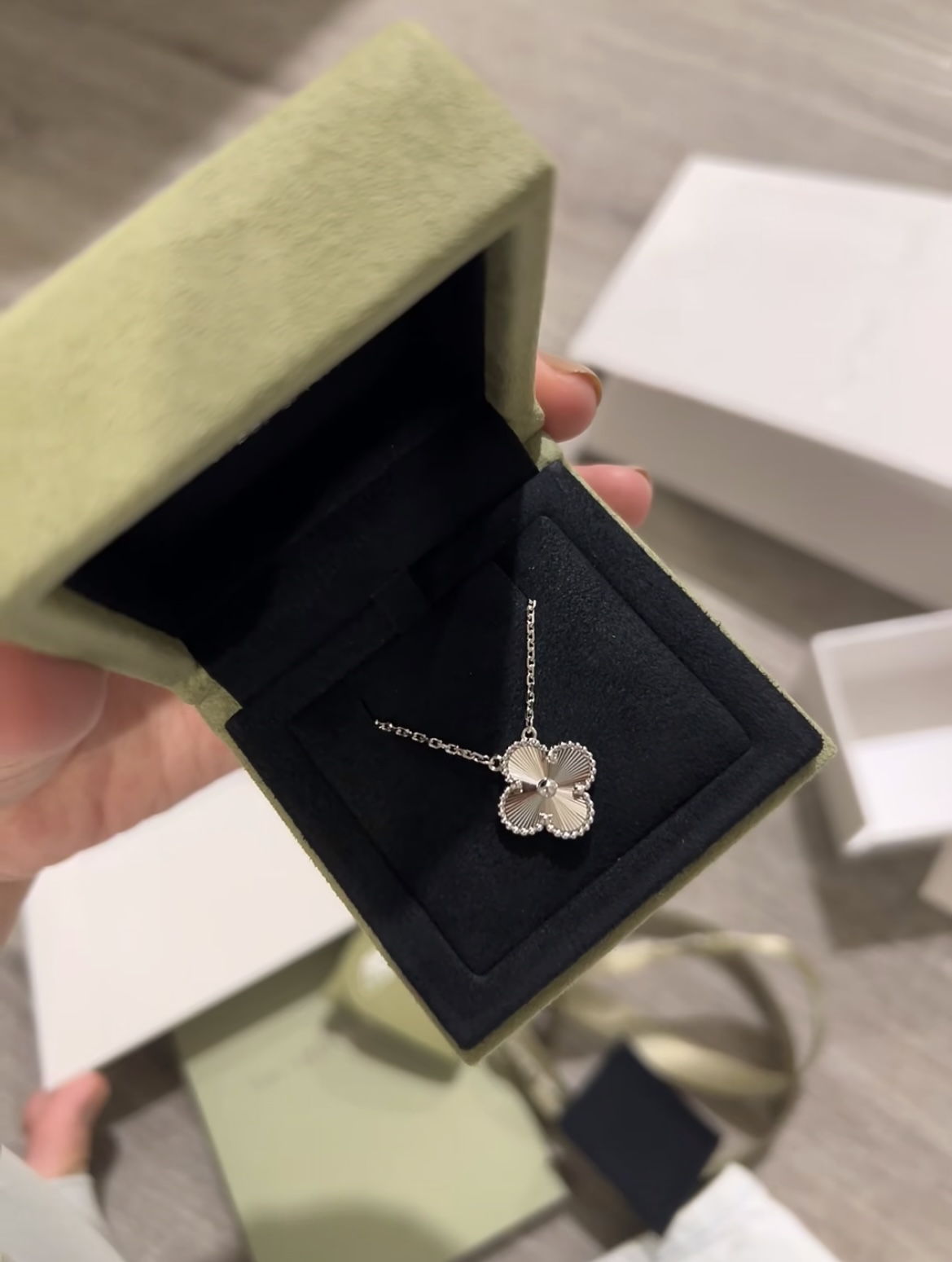 This jewelry is AAAAA 1:1 quality (superb). Materials used are identical to the original ones. Van Cleef & Arpels trademark marks are indistinguishable to the authentic. Photos take by actual jewelry, what you receive will be 100% same with our photos.