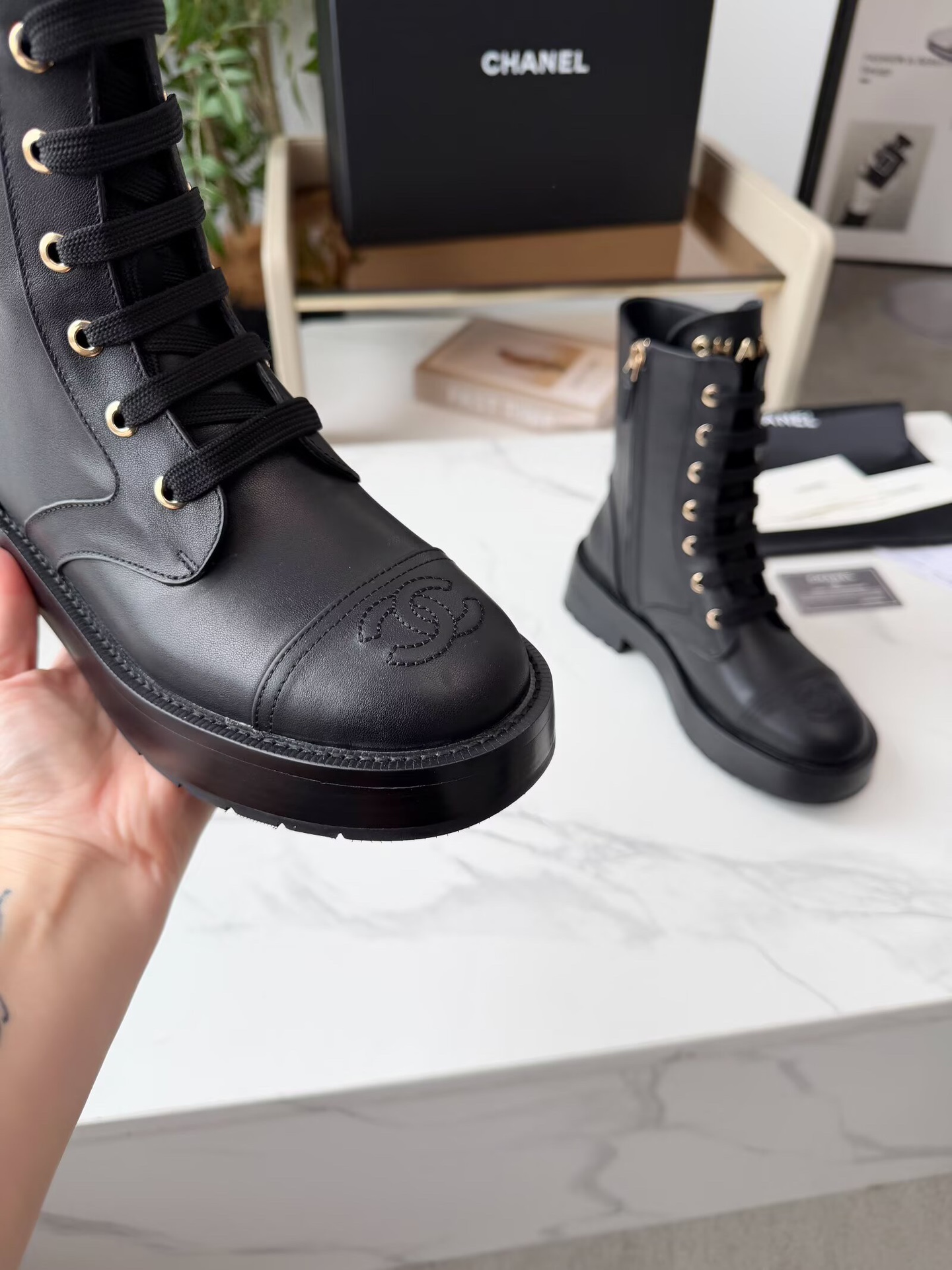 This shoes is AAAAA 1:1 quality (superb). Materials used are identical to the original ones. Chanel trademark marks are indistinguishable to the authentic. Photos take by actual shoes, what you receive will be 100% same with our photos.