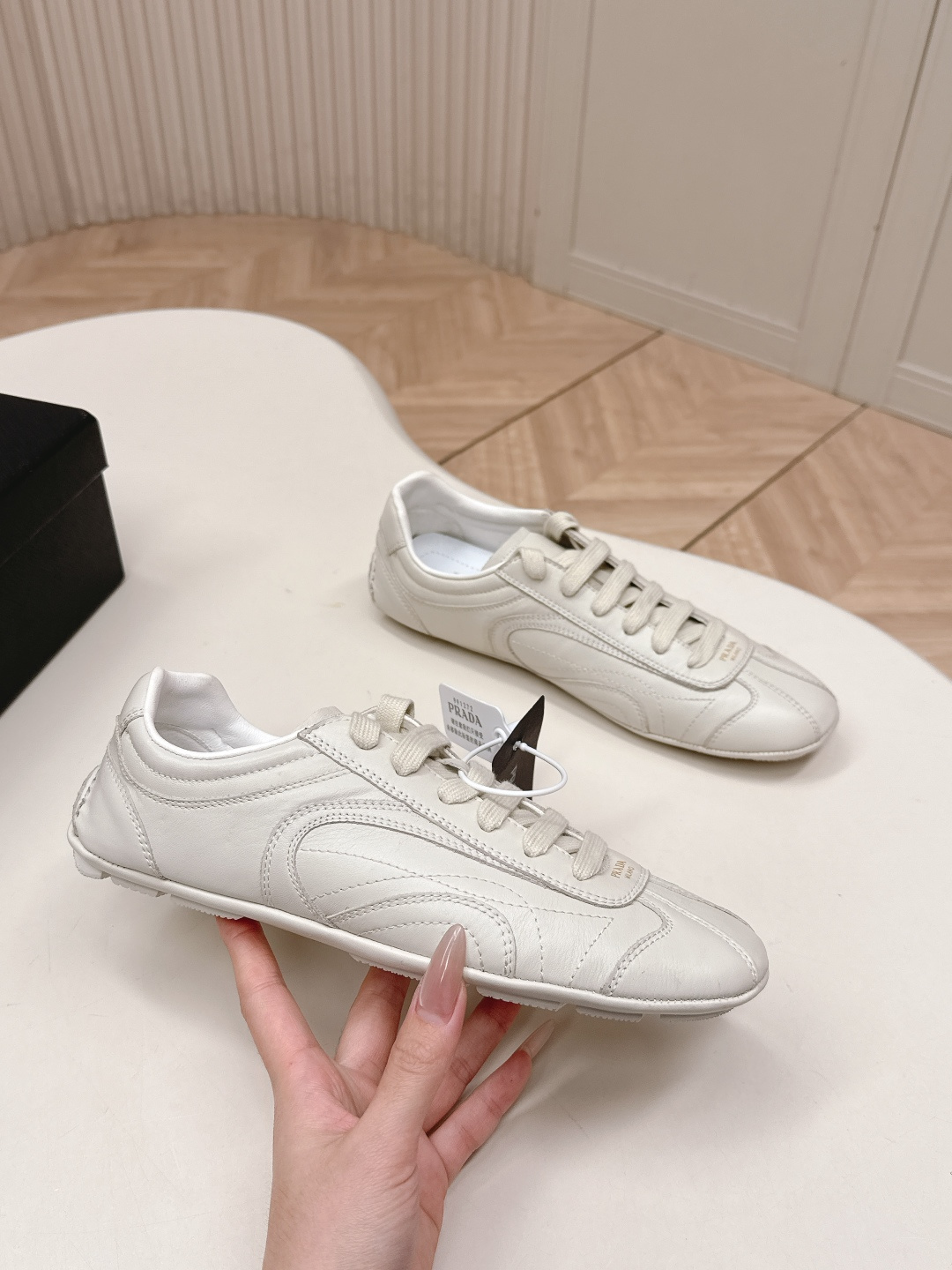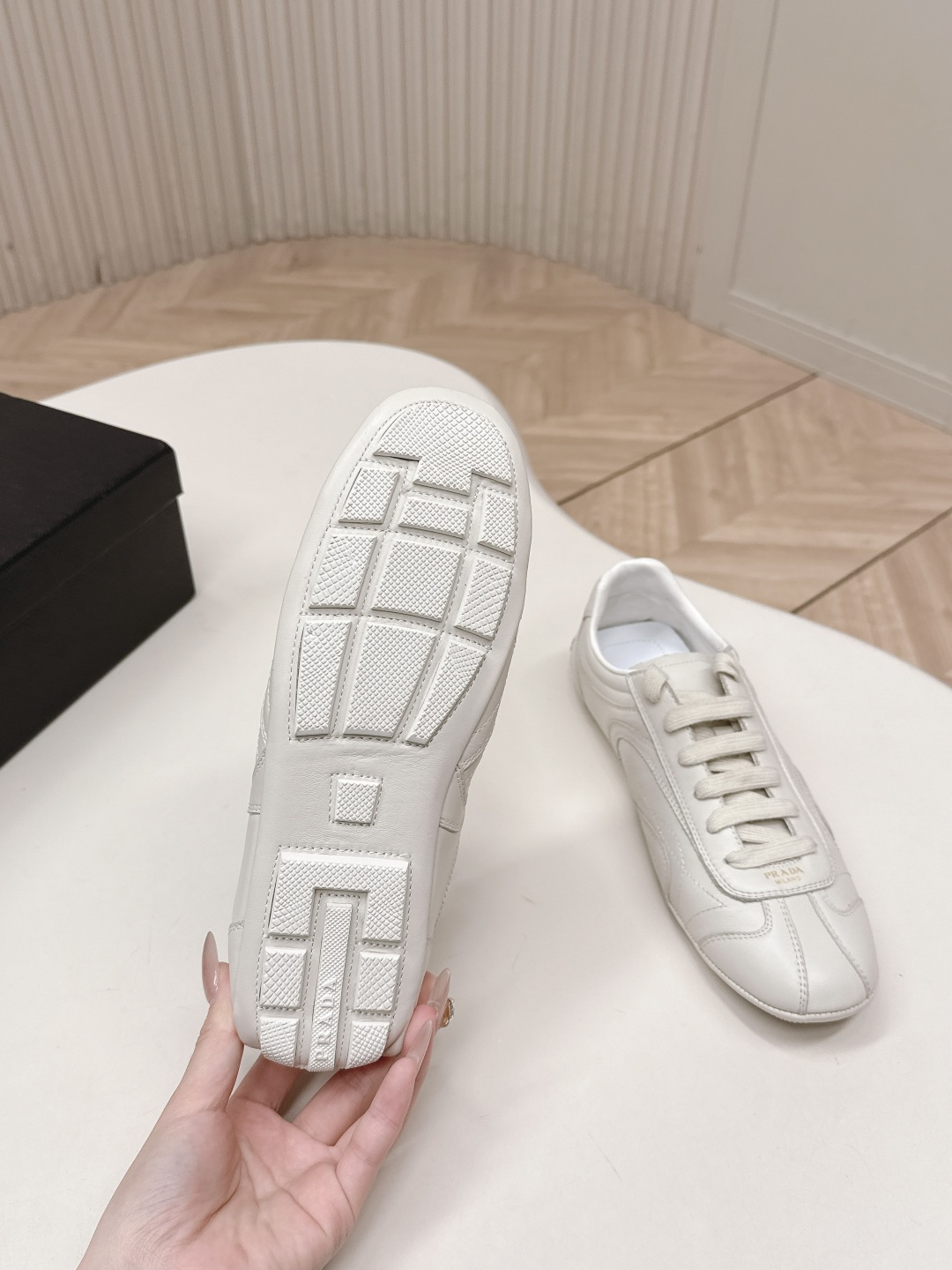 This shoes is AAAAA 1:1 quality (superb). Materials used are identical to the original ones. Prada trademark marks are indistinguishable to the authentic. Photos take by actual shoes, what you receive will be 100% same with our photos.