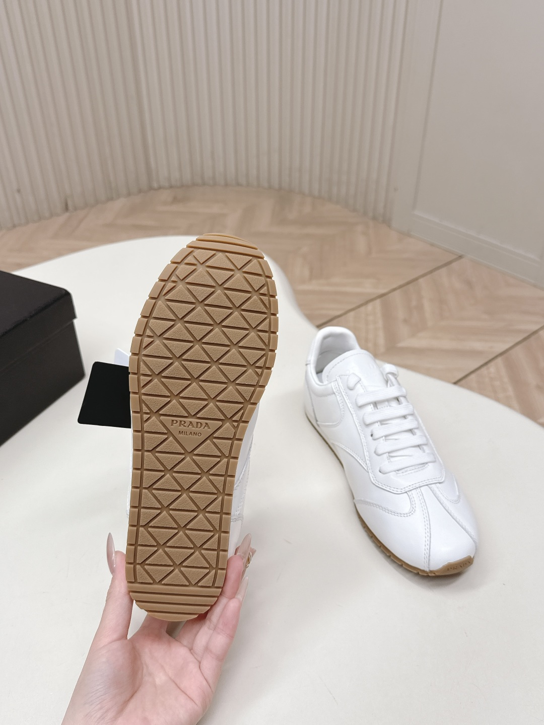 This shoes is AAAAA 1:1 quality (superb). Materials used are identical to the original ones. Prada trademark marks are indistinguishable to the authentic. Photos take by actual shoes, what you receive will be 100% same with our photos.