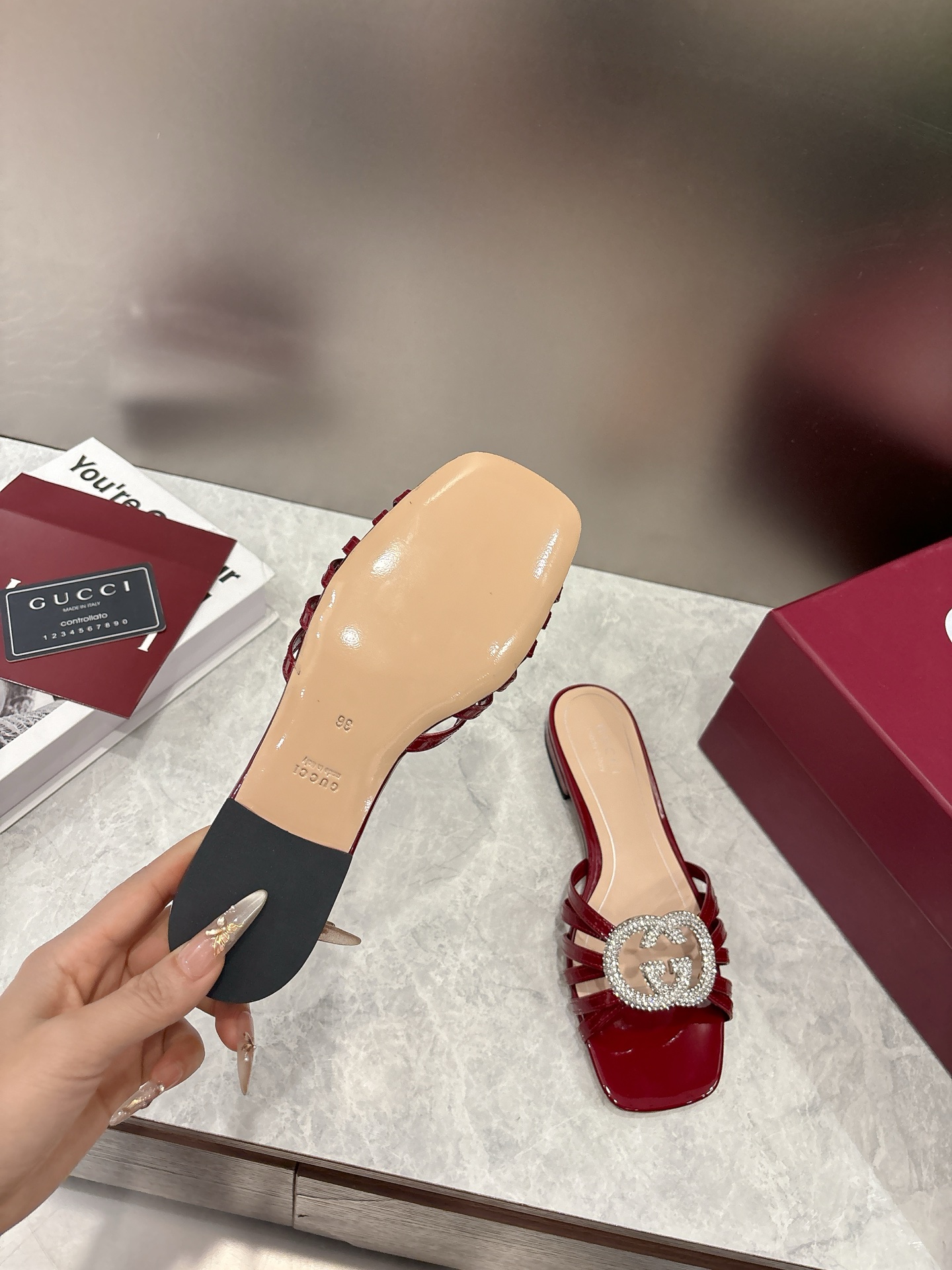 This shoes is AAAAA 1:1 quality (superb). Materials used are identical to the original ones. Gucci trademark marks are indistinguishable to the authentic. Photos take by actual shoes, what you receive will be 100% same with our photos.