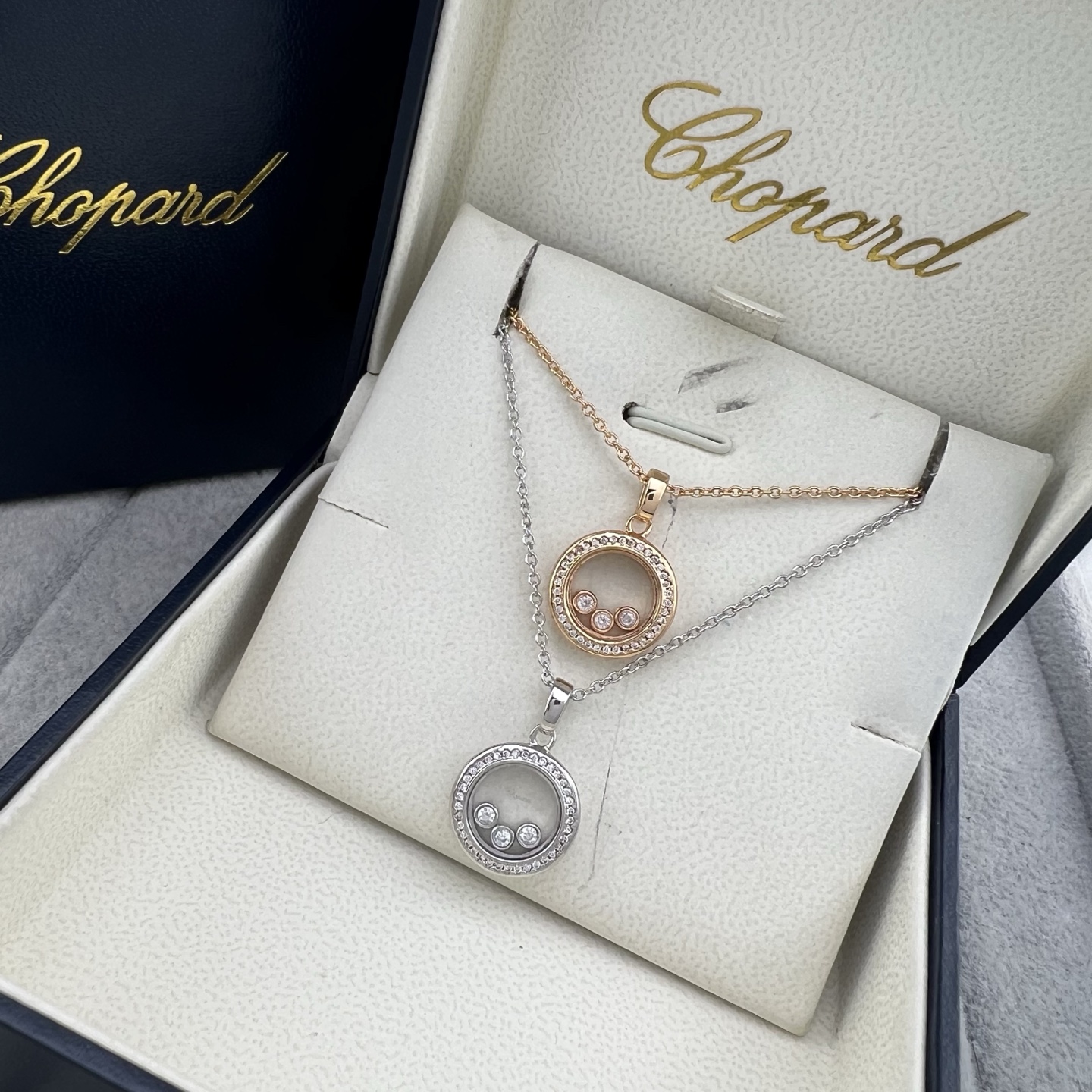 This jewelry is AAAAA 1:1 quality (superb). Materials used are identical to the original ones. Chopard trademark marks are indistinguishable to the authentic. Photos take by actual jewelry, what you receive will be 100% same with our photos.