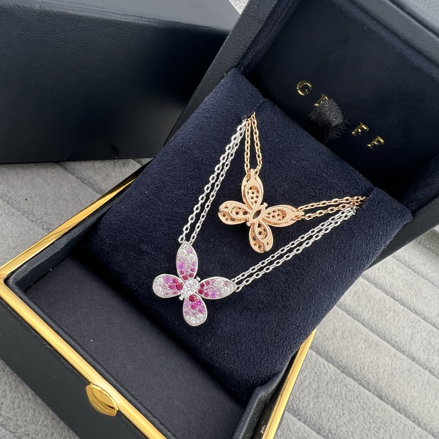 This jewelry is AAAAA 1:1 quality (superb). Materials used are identical to the original ones. GRAFF trademark marks are indistinguishable to the authentic. Photos take by actual jewelry, what you receive will be 100% same with our photos.