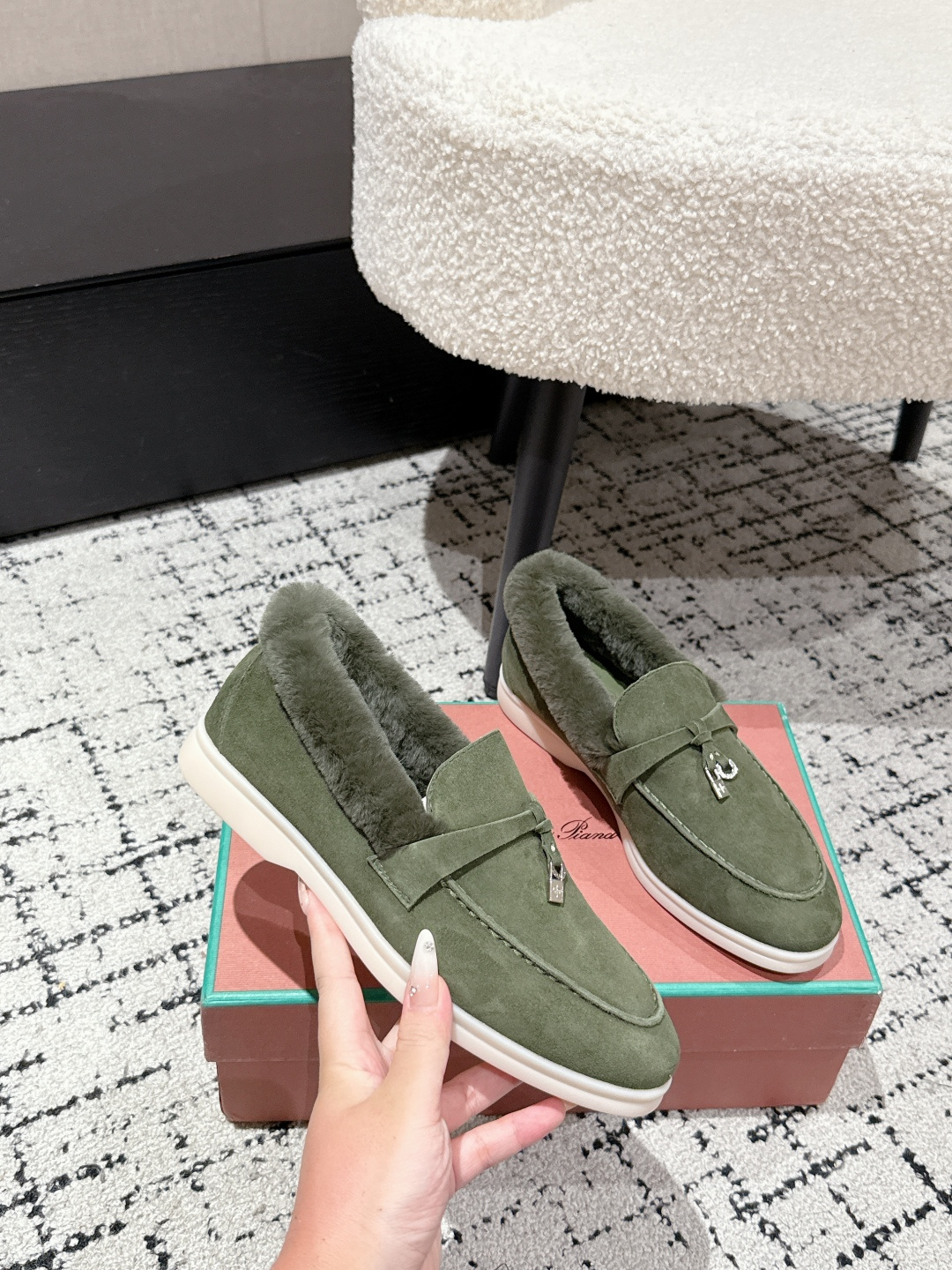 This shoes is AAAAA 1:1 quality (superb). Materials used are identical to the original ones. Loro Piana trademark marks are indistinguishable to the authentic. Photos take by actual shoes, what you receive will be 100% same with our photos.