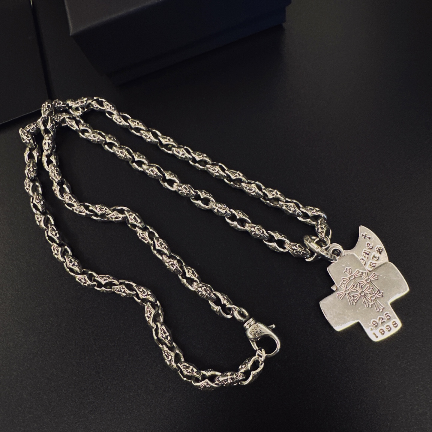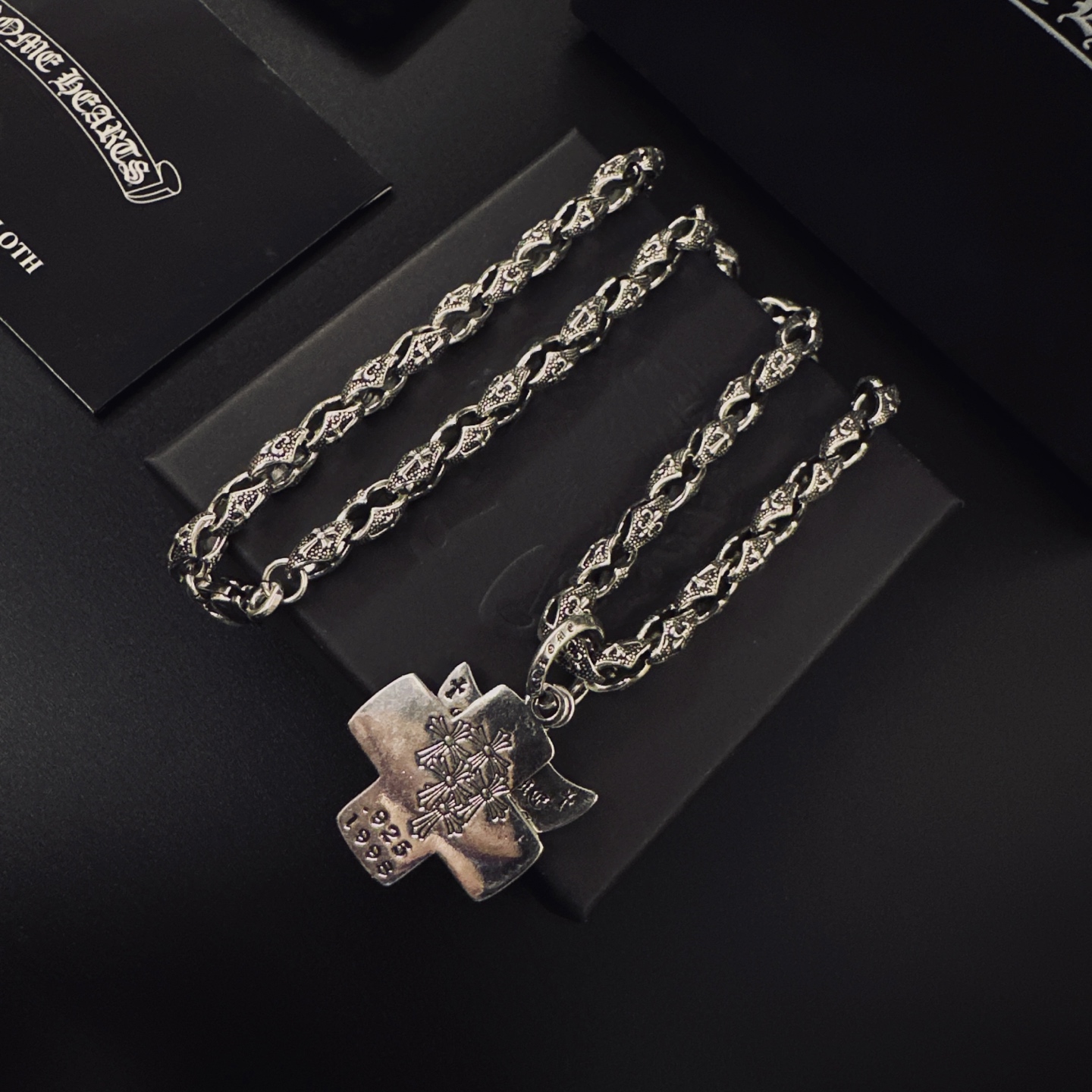 This jewelry is AAAAA 1:1 quality (superb). Materials used are identical to the original ones. Chrome Hearts trademark marks are indistinguishable to the authentic. Photos take by actual jewelry, what you receive will be 100% same with our photos.