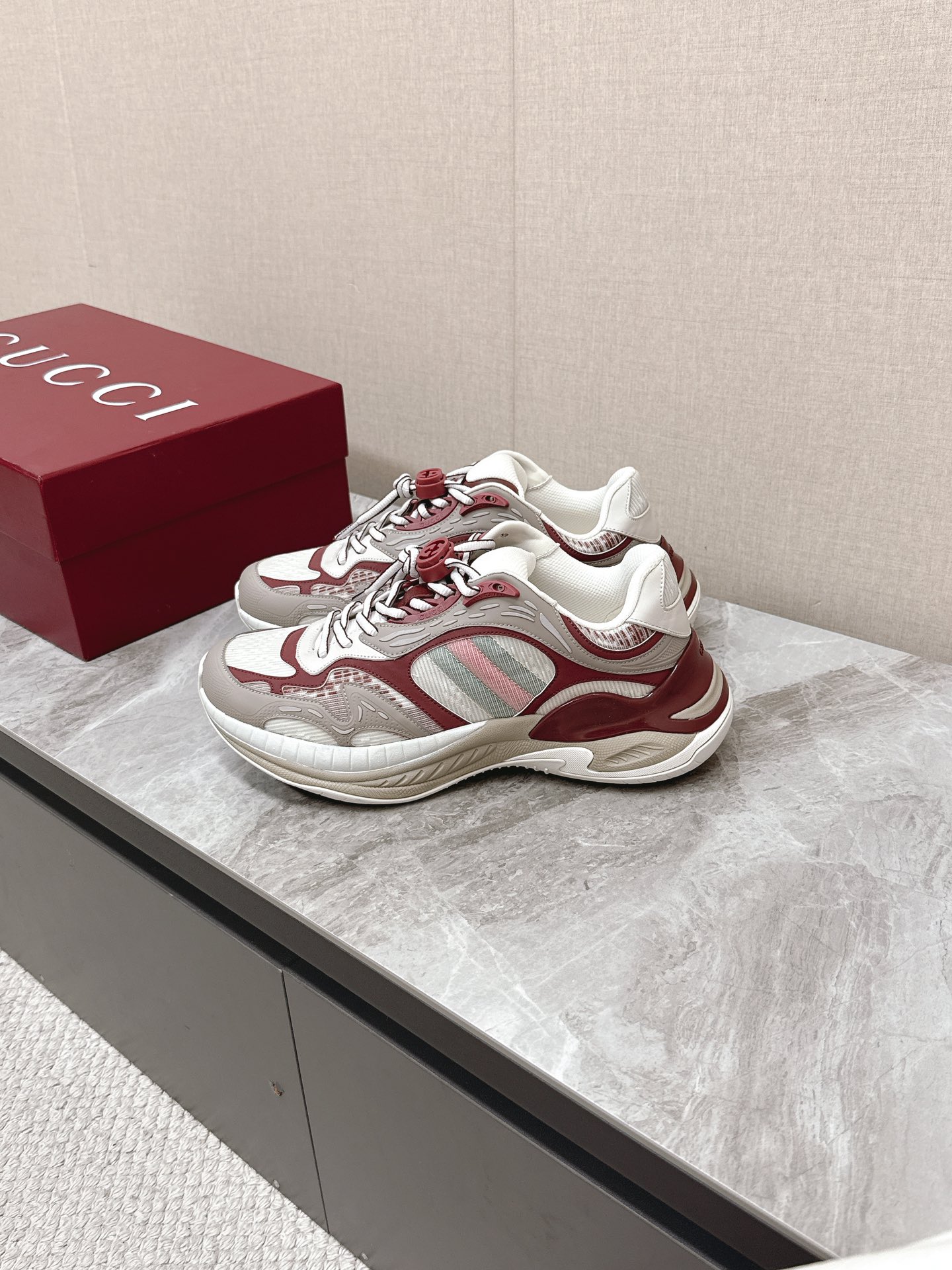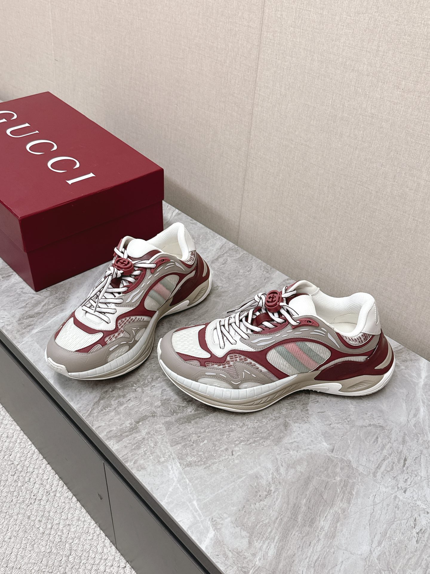 This shoes is AAAAA 1:1 quality (superb). Materials used are identical to the original ones. Gucci trademark marks are indistinguishable to the authentic. Photos take by actual shoes, what you receive will be 100% same with our photos.