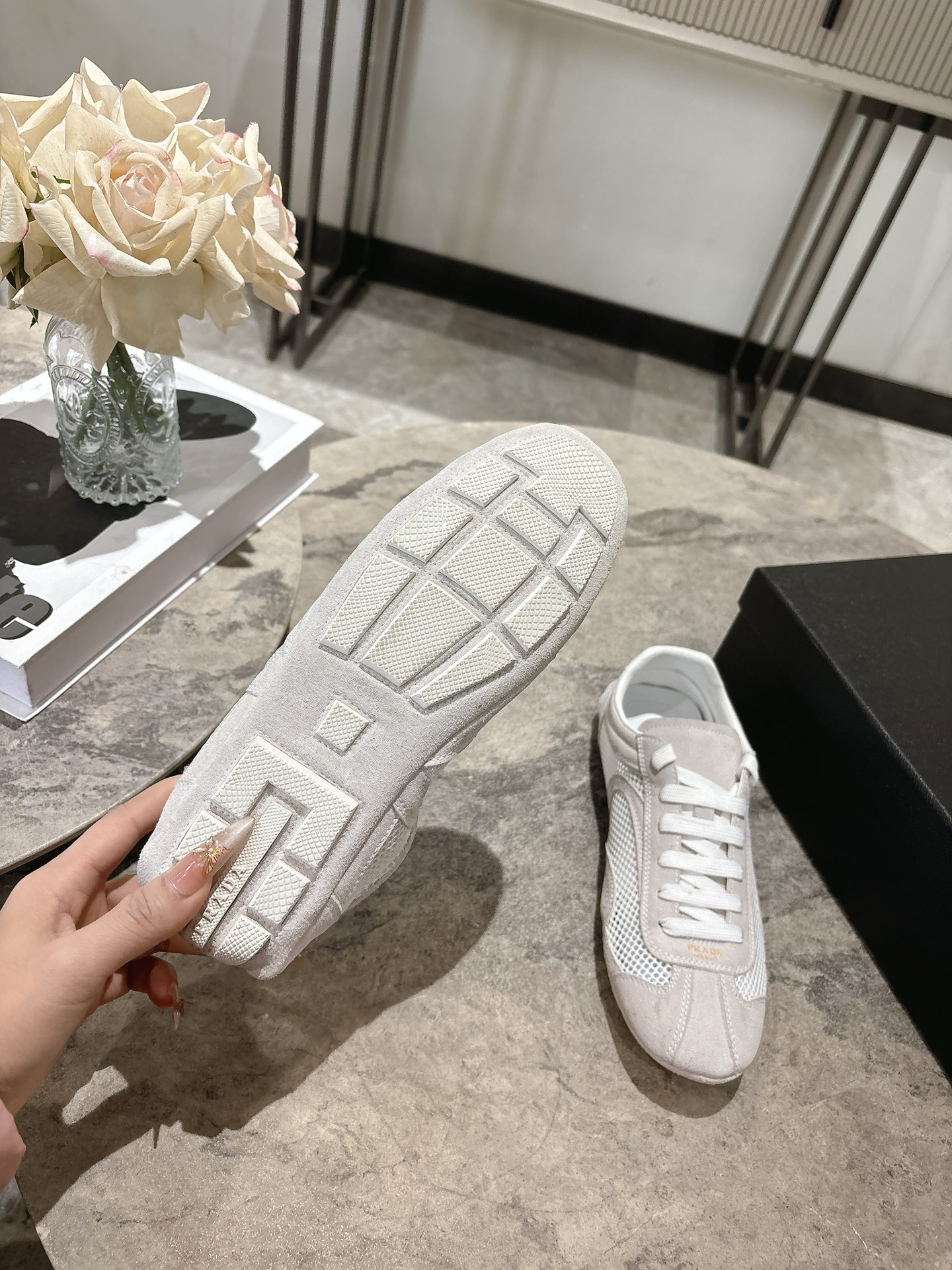 This shoes is AAAAA 1:1 quality (superb). Materials used are identical to the original ones. Prada trademark marks are indistinguishable to the authentic. Photos take by actual shoes, what you receive will be 100% same with our photos.