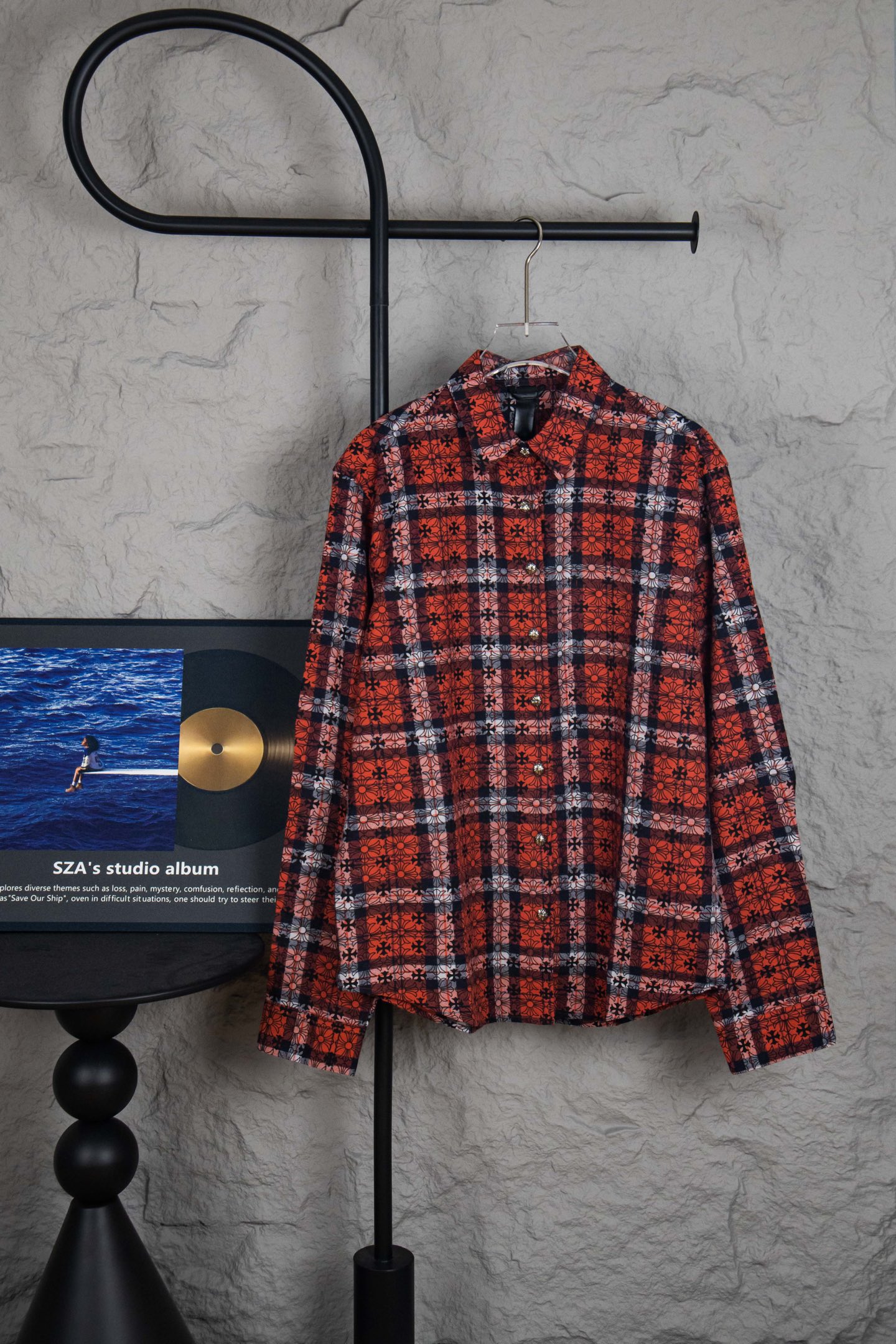 NO:4679277. The clothes is from Chrome Hearts designer.