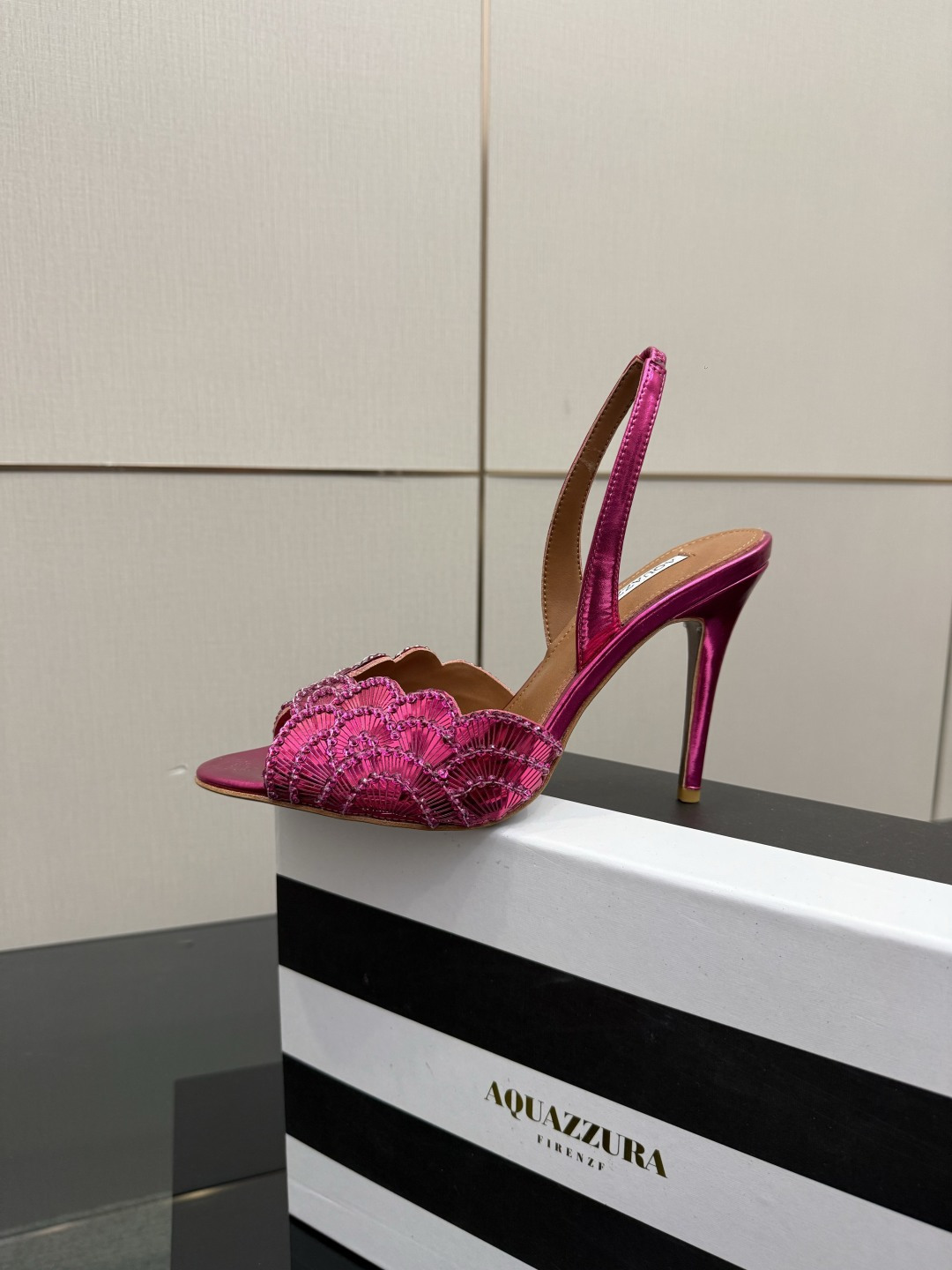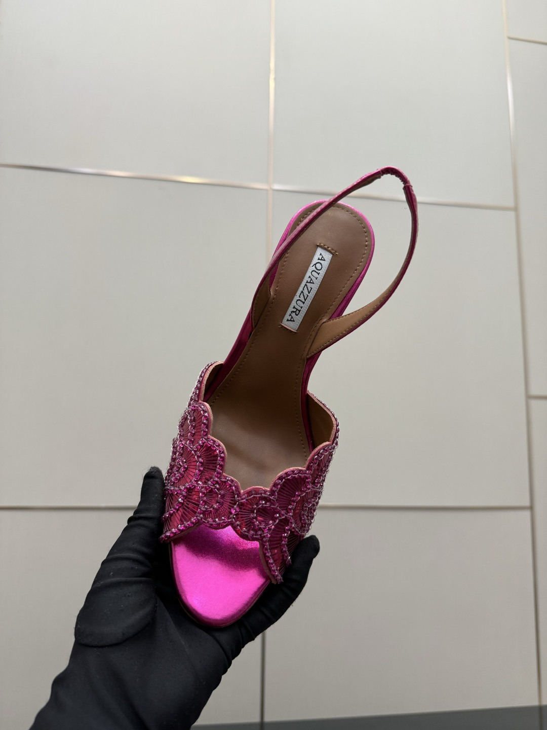 This shoes is AAAAA 1:1 quality (superb). Materials used are identical to the original ones. Aquazzura trademark marks are indistinguishable to the authentic. Photos take by actual shoes, what you receive will be 100% same with our photos.