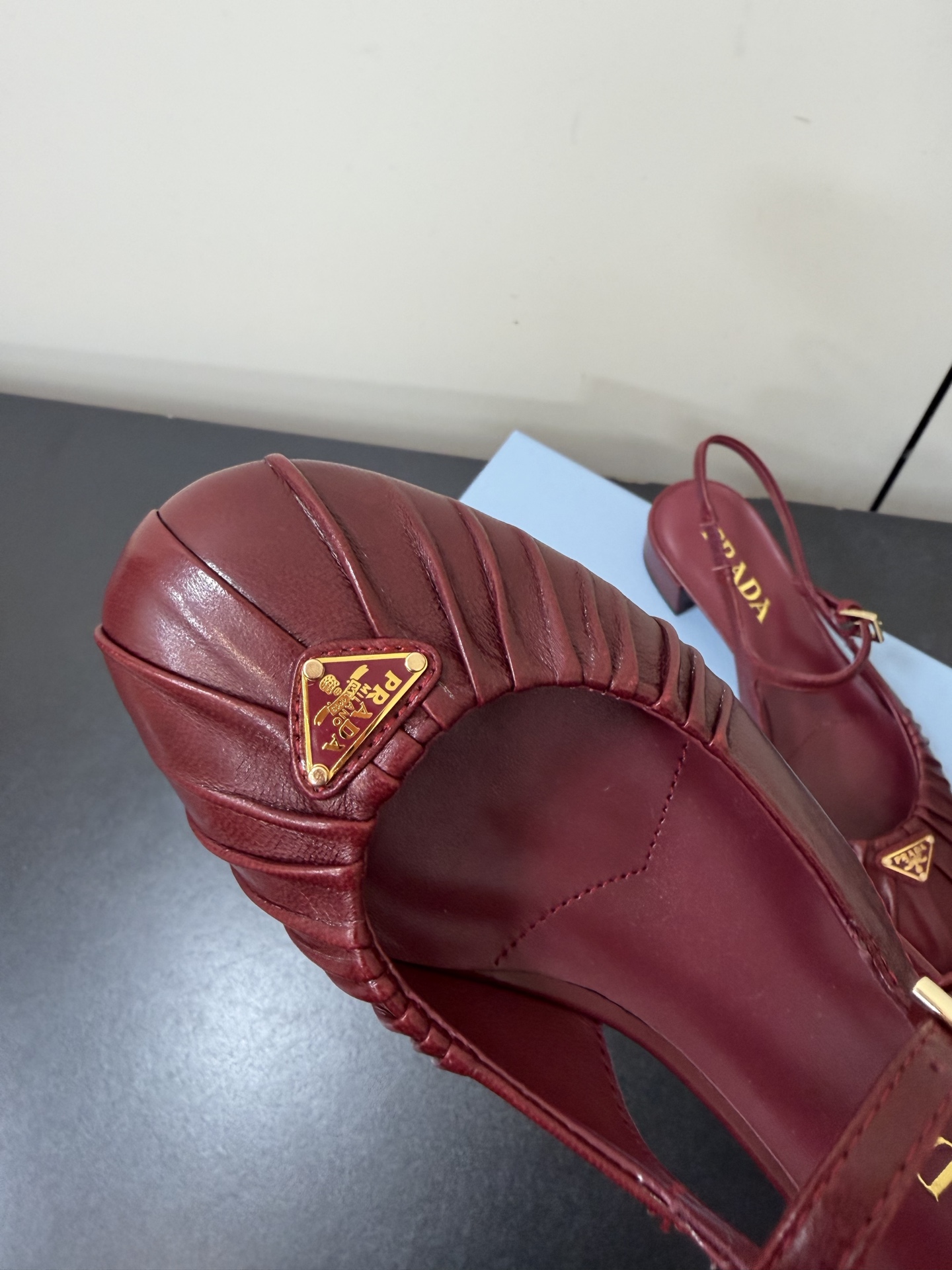 This shoes is AAAAA 1:1 quality (superb). Materials used are identical to the original ones. Prada trademark marks are indistinguishable to the authentic. Photos take by actual shoes, what you receive will be 100% same with our photos.