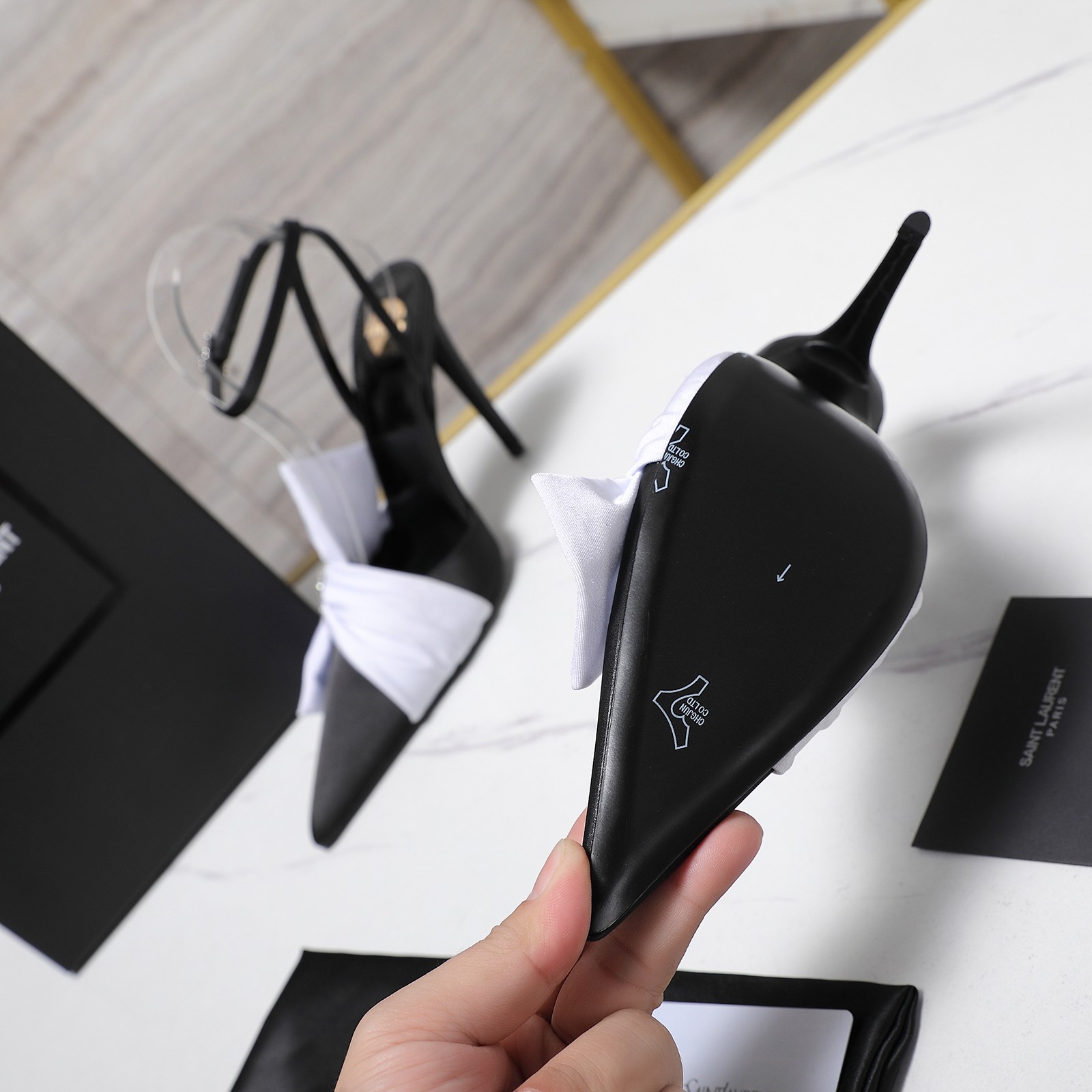 This shoes is AAAAA 1:1 quality (superb). Materials used are identical to the original ones. Saint Laurent trademark marks are indistinguishable to the authentic. Photos take by actual shoes, what you receive will be 100% same with our photos.