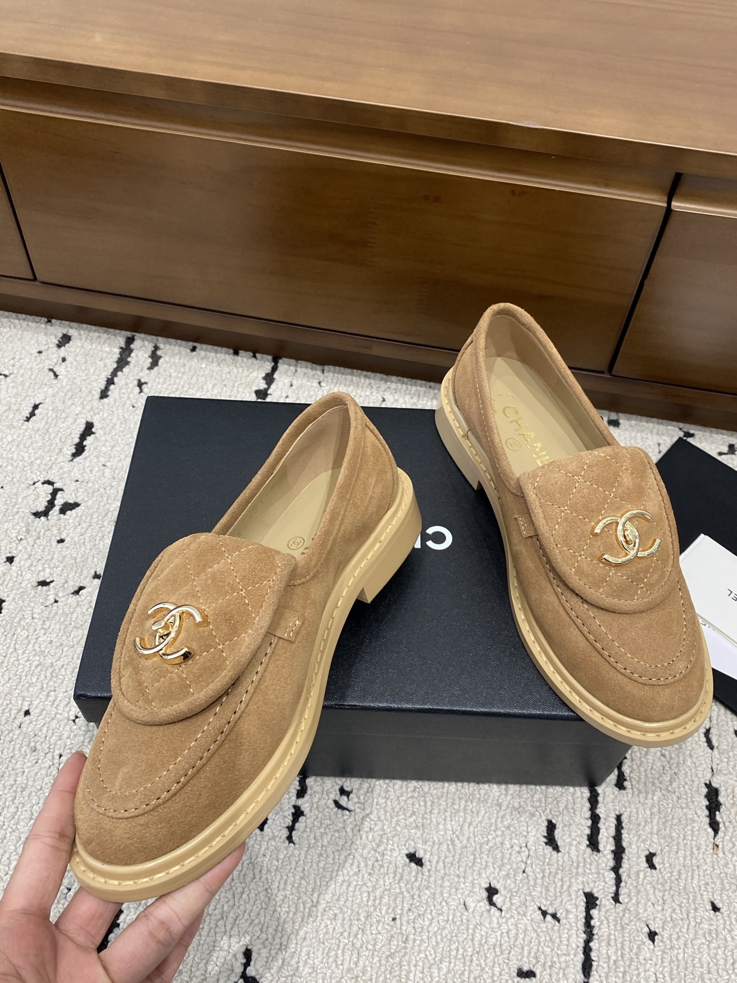 This shoes is AAAAA 1:1 quality (superb). Materials used are identical to the original ones. Chanel trademark marks are indistinguishable to the authentic. Photos take by actual shoes, what you receive will be 100% same with our photos.