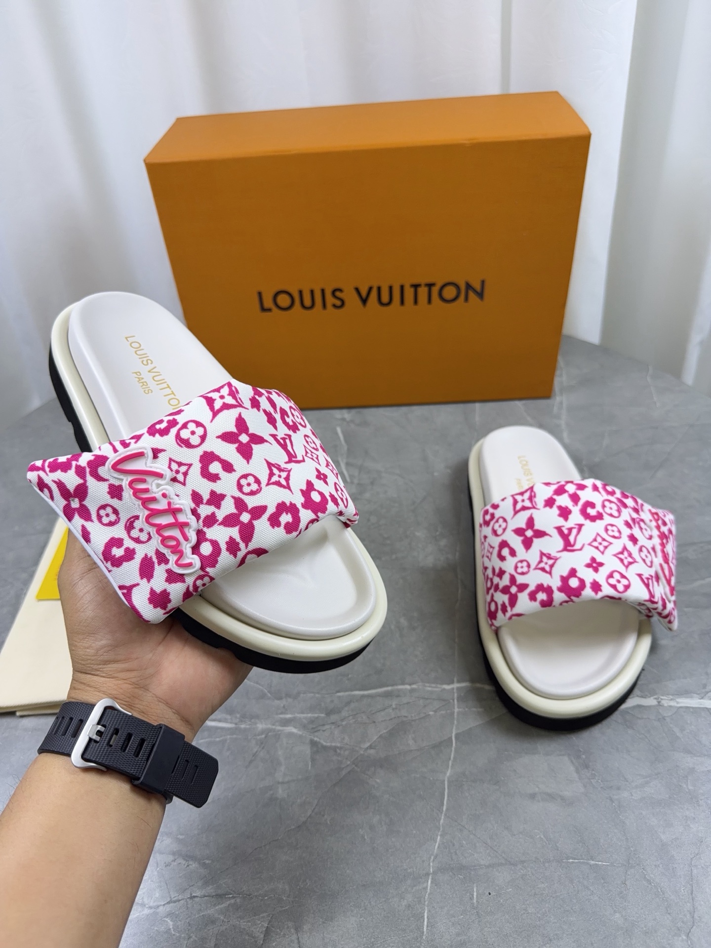 This shoes is AAAAA 1:1 quality (superb). Materials used are identical to the original ones. Louis Vuitton trademark marks are indistinguishable to the authentic. Photos take by actual shoes, what you receive will be 100% same with our photos.