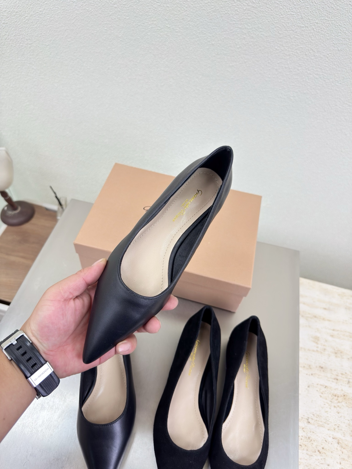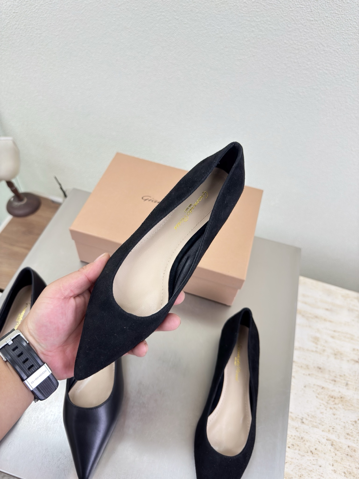 This shoes is AAAAA 1:1 quality (superb). Materials used are identical to the original ones. Gianvito Rossi trademark marks are indistinguishable to the authentic. Photos take by actual shoes, what you receive will be 100% same with our photos.
