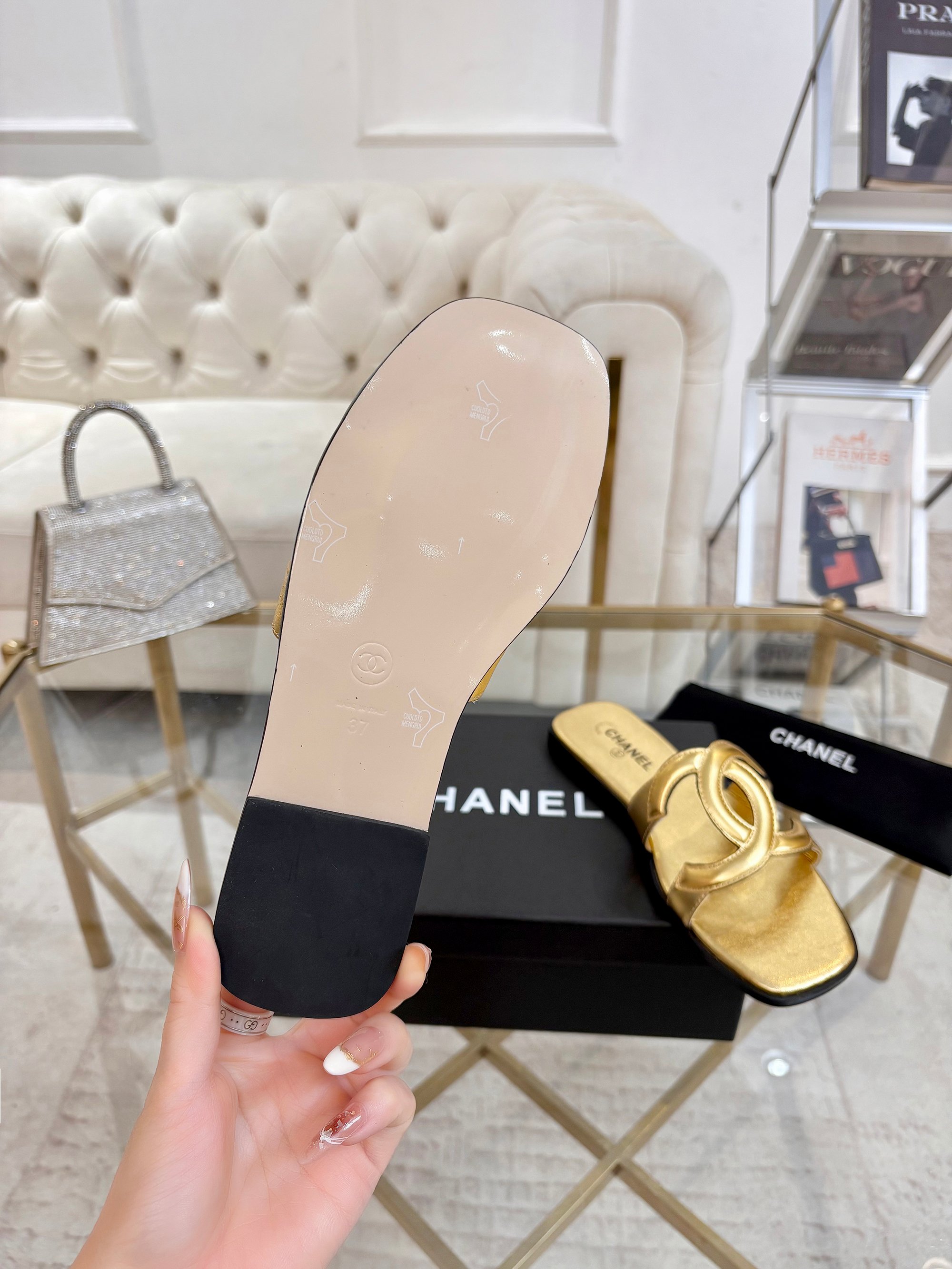 This shoes is AAAAA 1:1 quality (superb). Materials used are identical to the original ones. Chanel trademark marks are indistinguishable to the authentic. Photos take by actual shoes, what you receive will be 100% same with our photos.