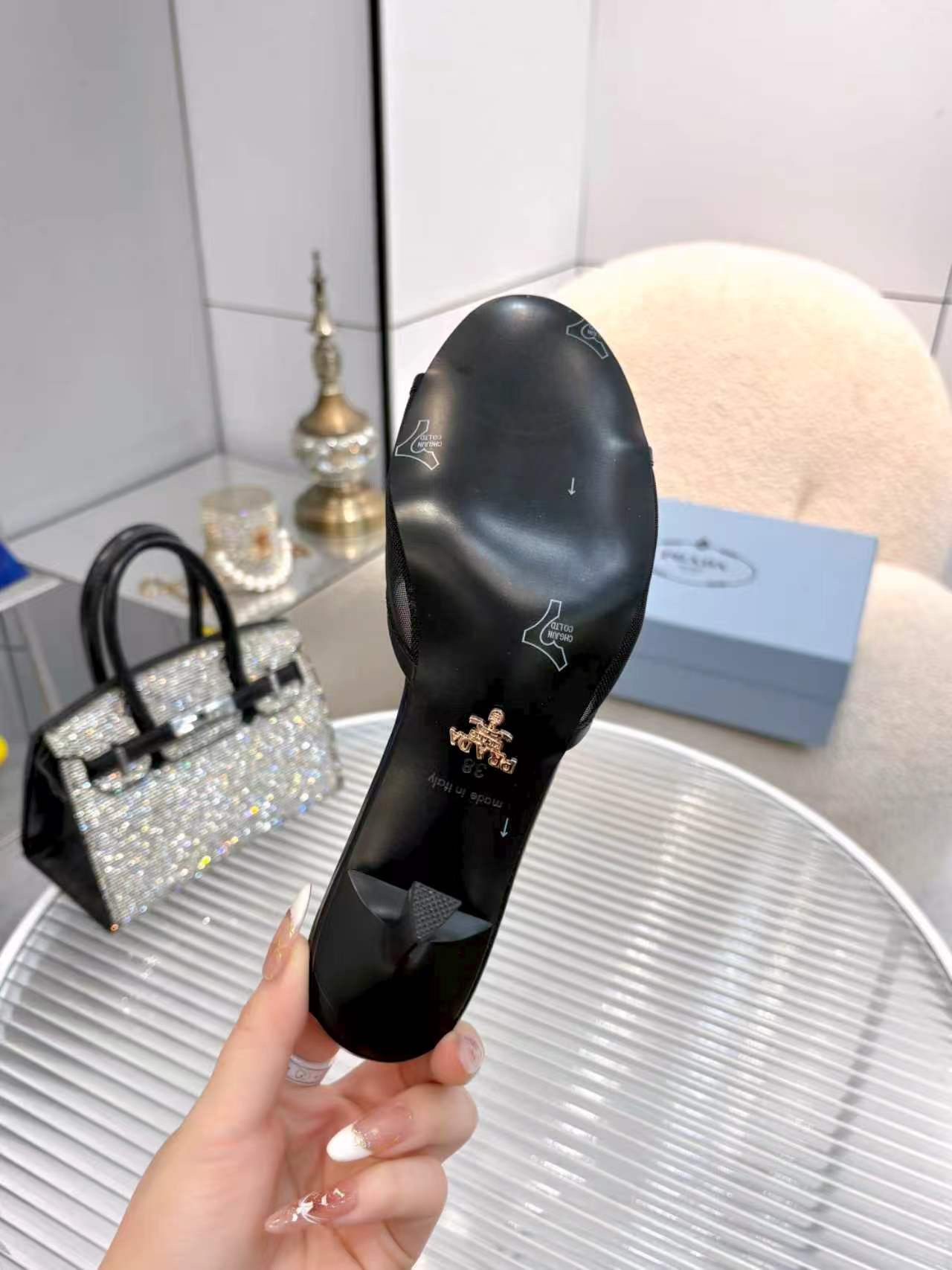 This shoes is AAAAA 1:1 quality (superb). Materials used are identical to the original ones. Prada trademark marks are indistinguishable to the authentic. Photos take by actual shoes, what you receive will be 100% same with our photos.