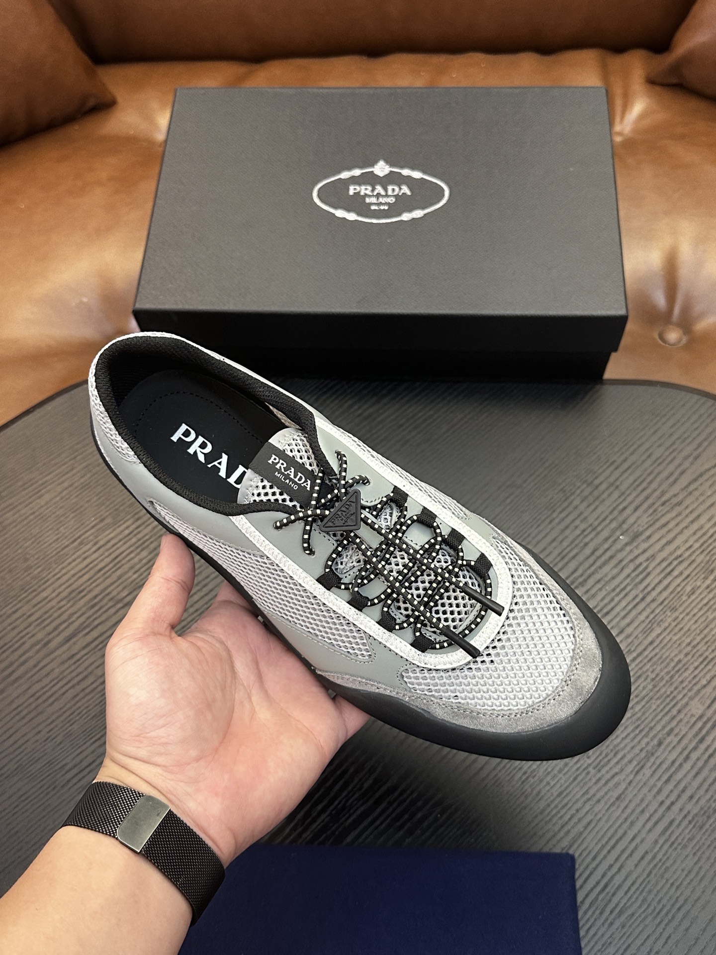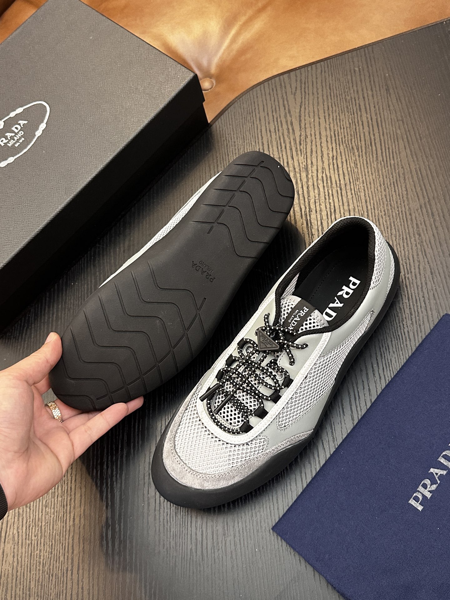 This shoes is AAAAA 1:1 quality (superb). Materials used are identical to the original ones. Prada trademark marks are indistinguishable to the authentic. Photos take by actual shoes, what you receive will be 100% same with our photos.