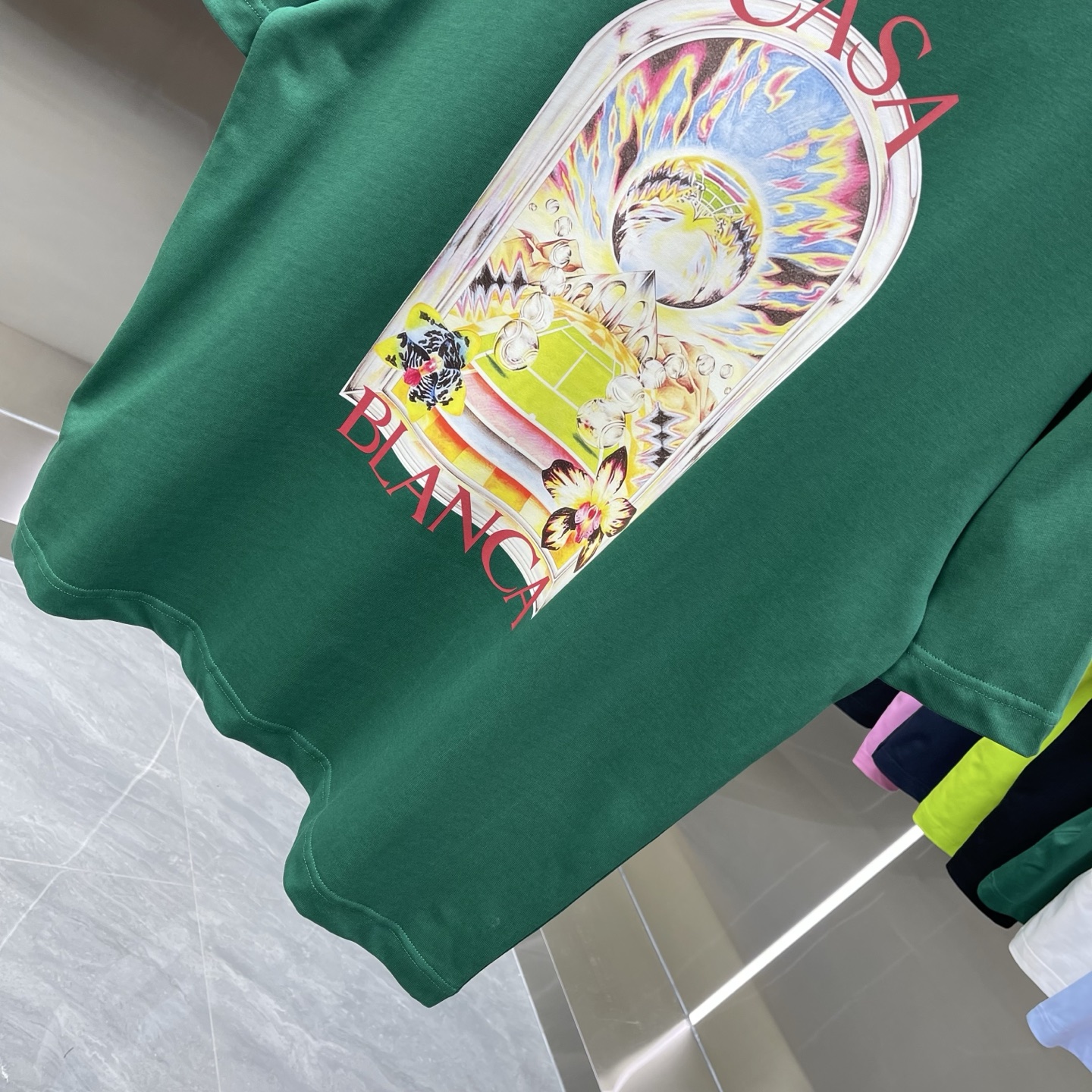 This clothes is AAAAA 1:1 quality (superb). Materials used are identical to the original ones. Casablanca trademark marks are indistinguishable to the authentic. Photos take by actual clothes, what you receive will be 100% same with our photos.