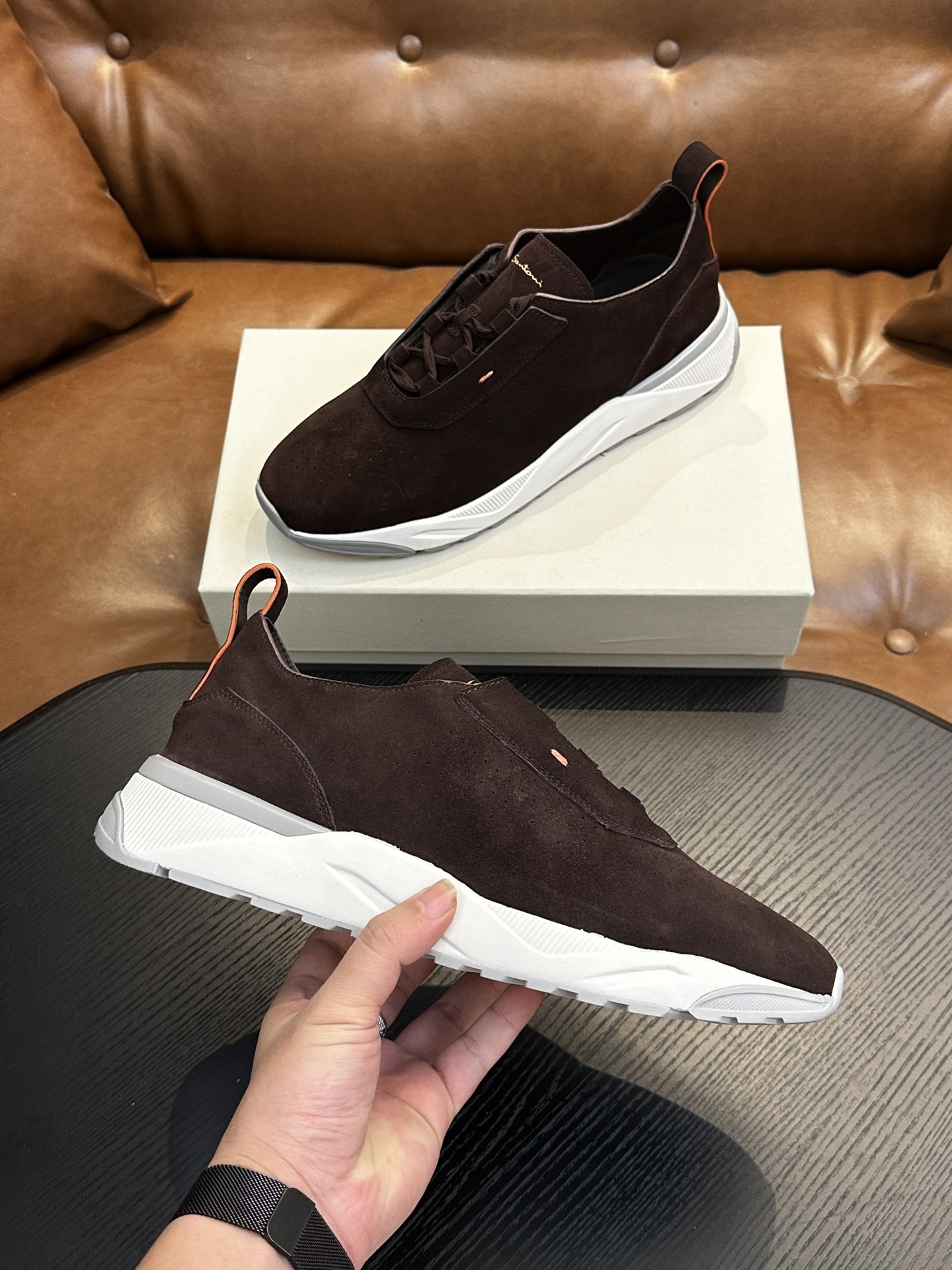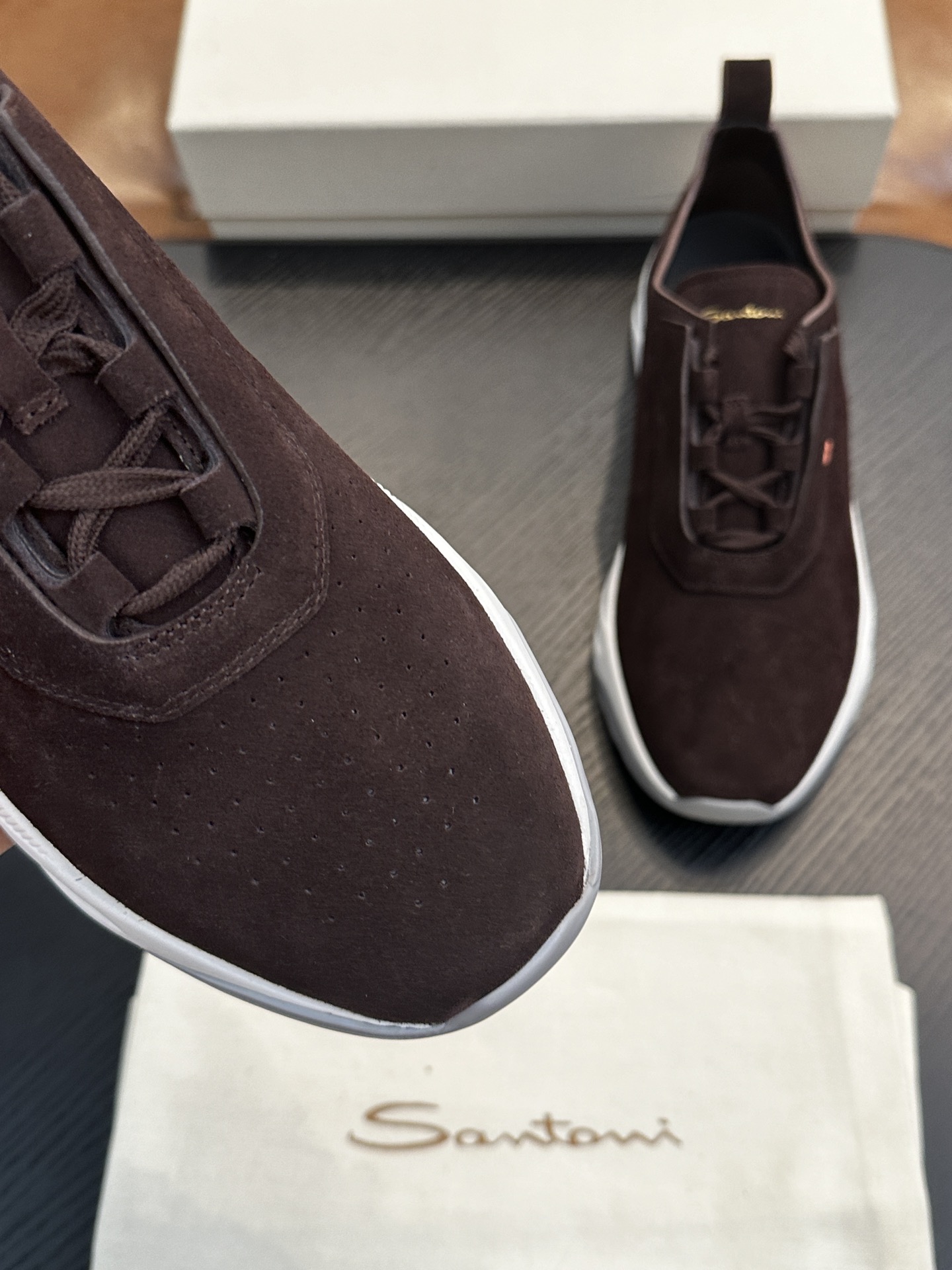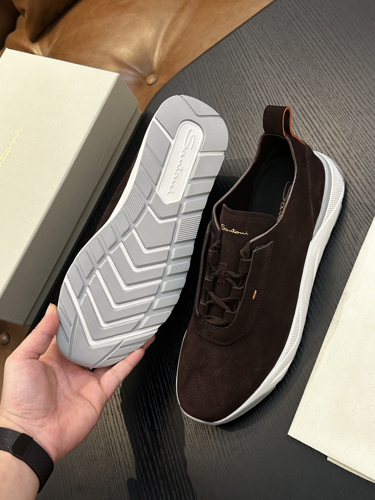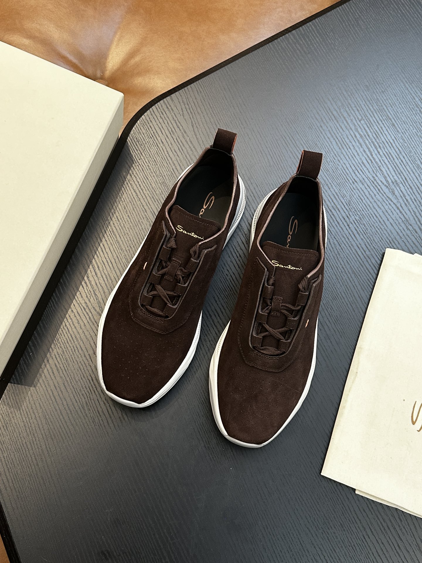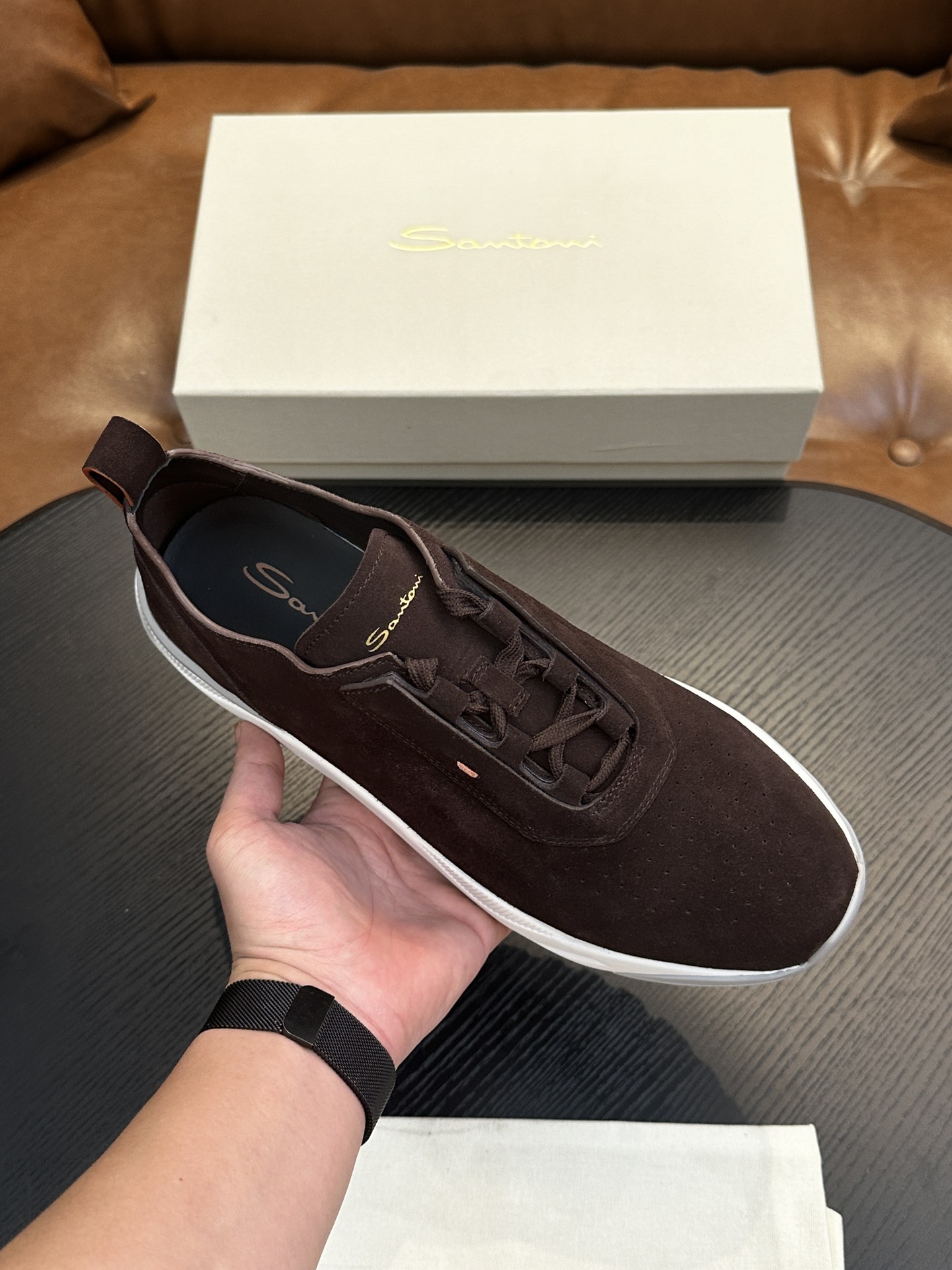 This shoes is AAAAA 1:1 quality (superb). Materials used are identical to the original ones. Santoni trademark marks are indistinguishable to the authentic. Photos take by actual shoes, what you receive will be 100% same with our photos.