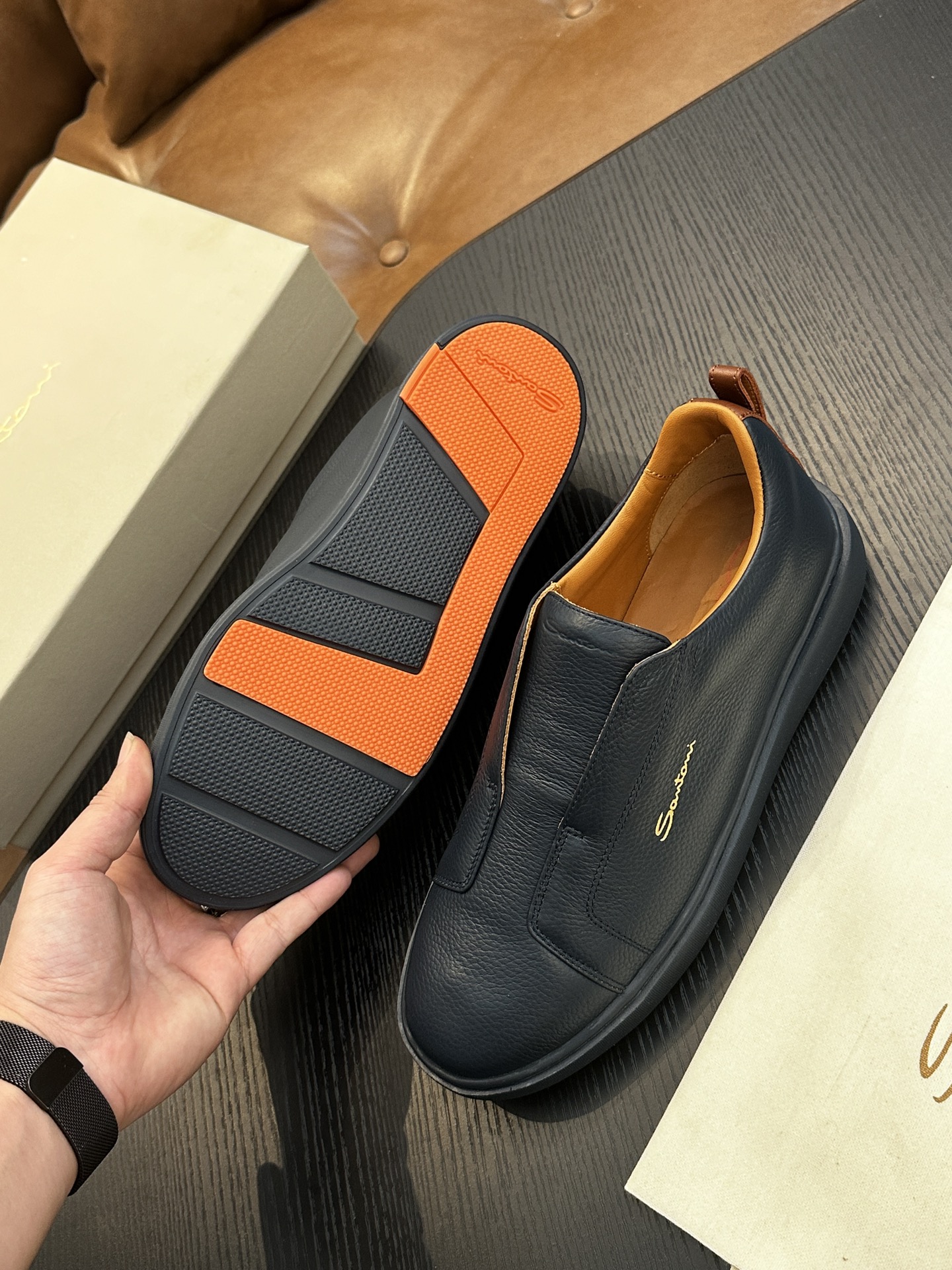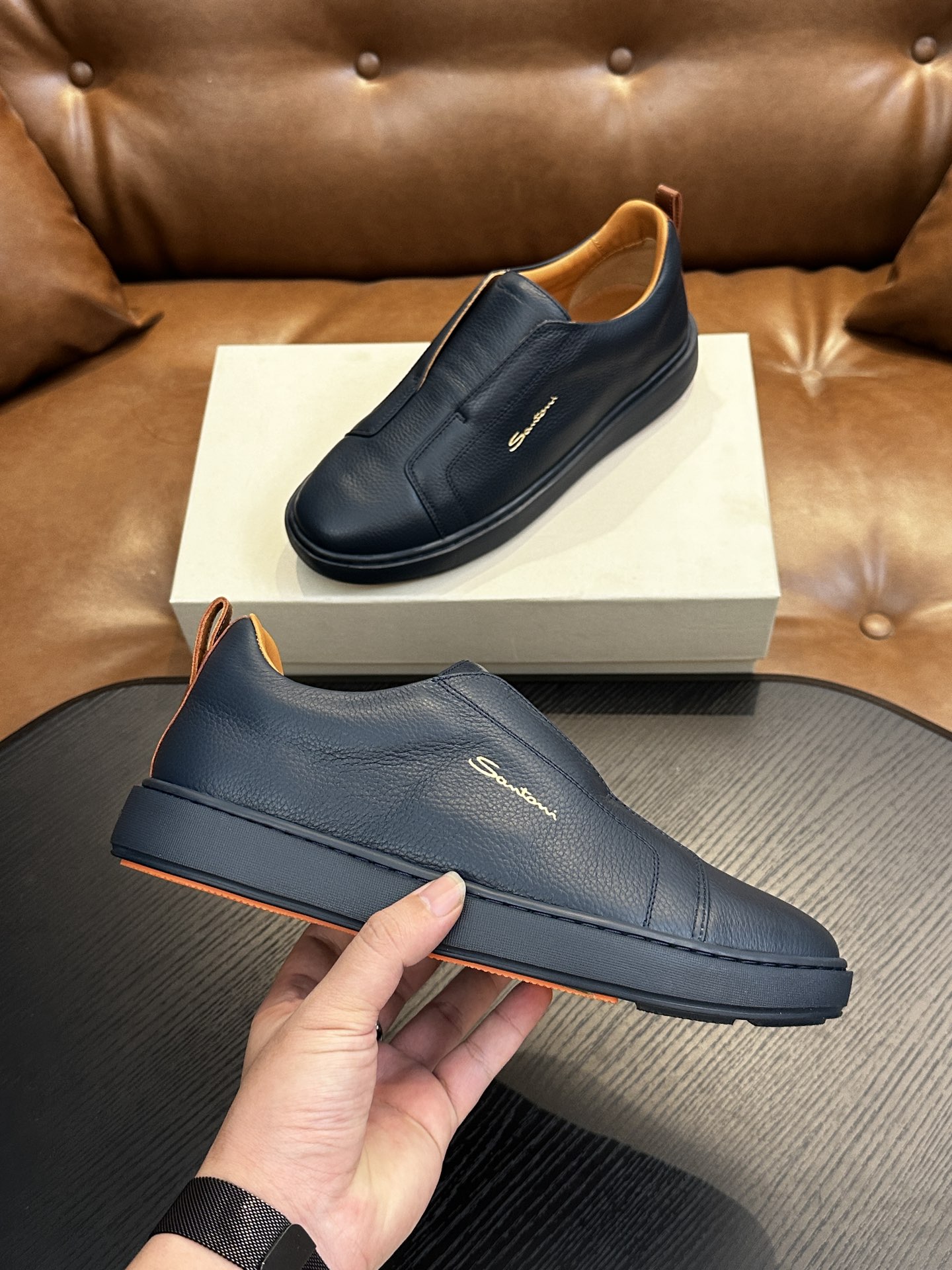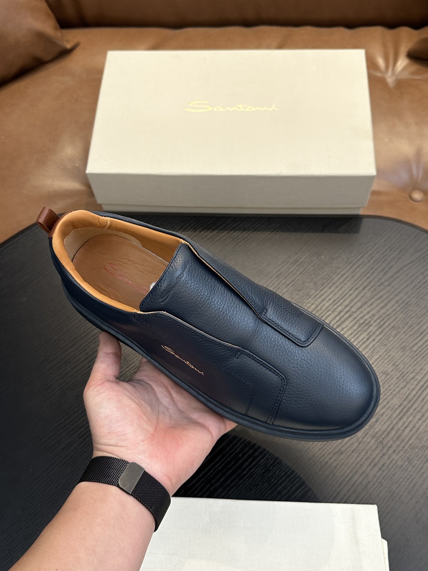 This shoes is AAAAA 1:1 quality (superb). Materials used are identical to the original ones. Santoni trademark marks are indistinguishable to the authentic. Photos take by actual shoes, what you receive will be 100% same with our photos.