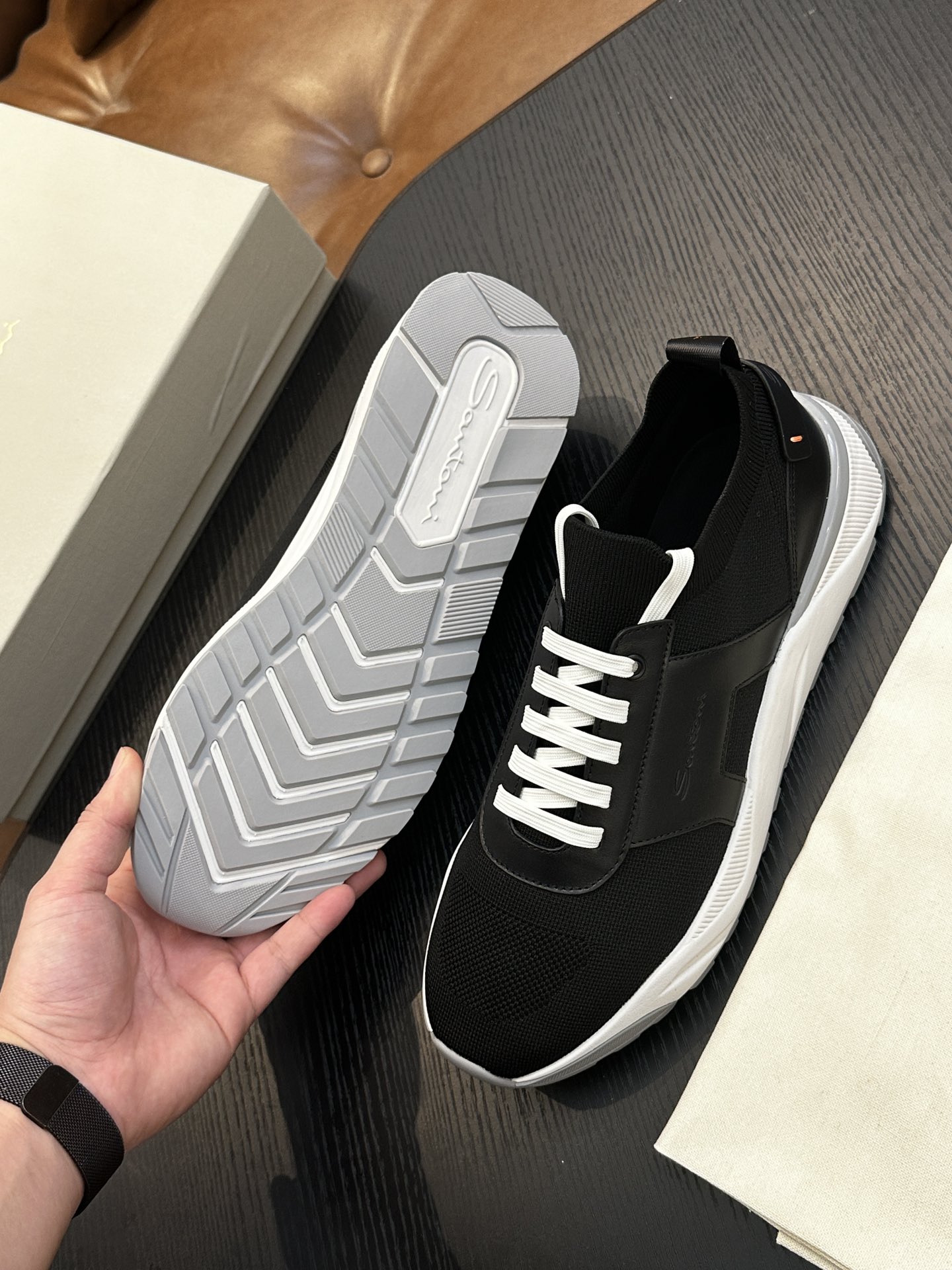 This shoes is AAAAA 1:1 quality (superb). Materials used are identical to the original ones. Santoni trademark marks are indistinguishable to the authentic. Photos take by actual shoes, what you receive will be 100% same with our photos.