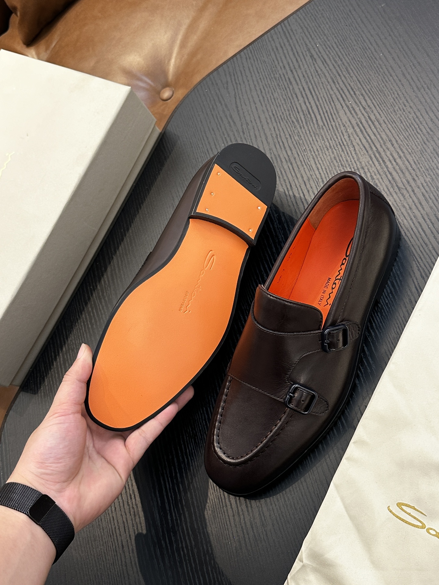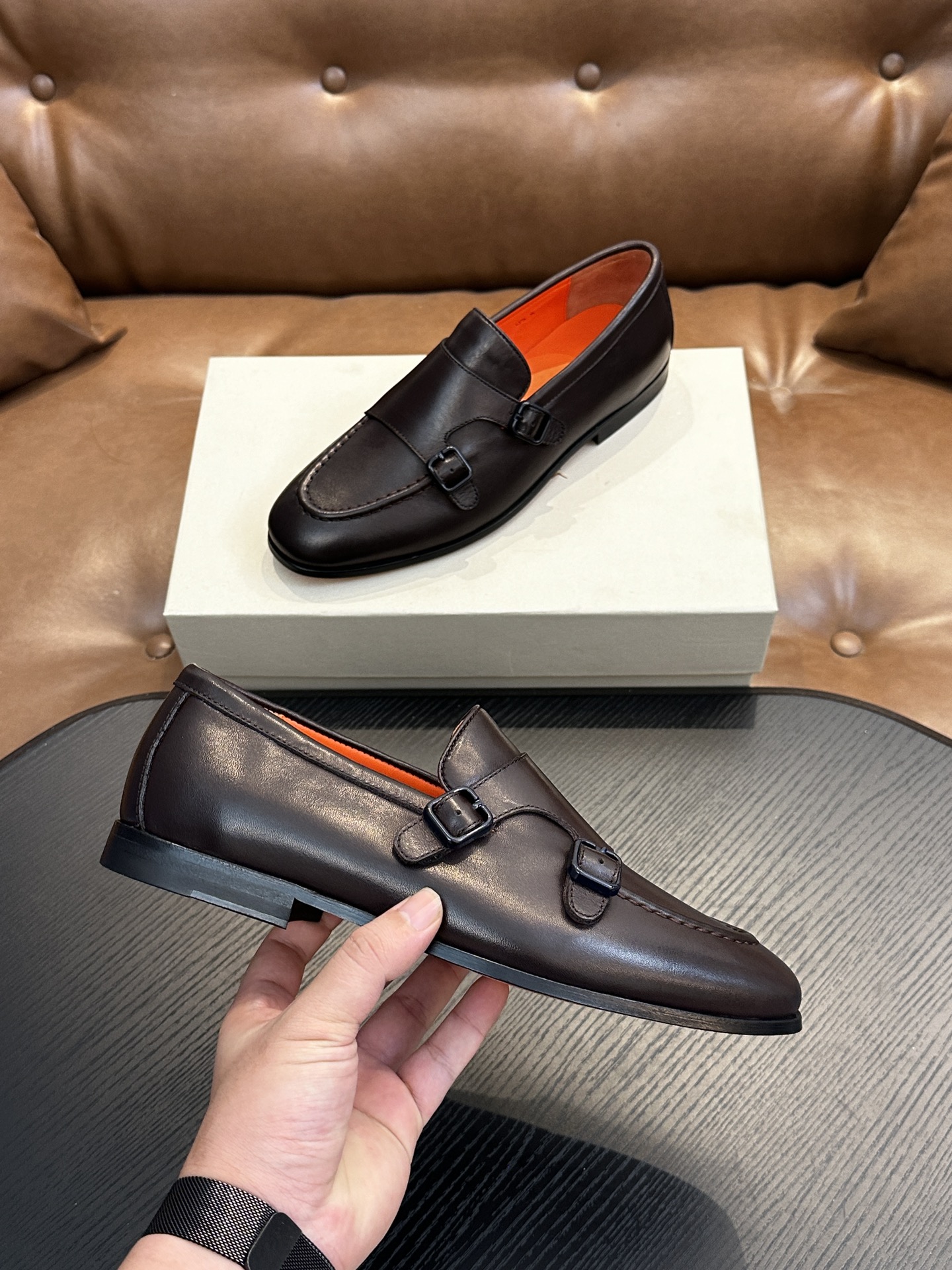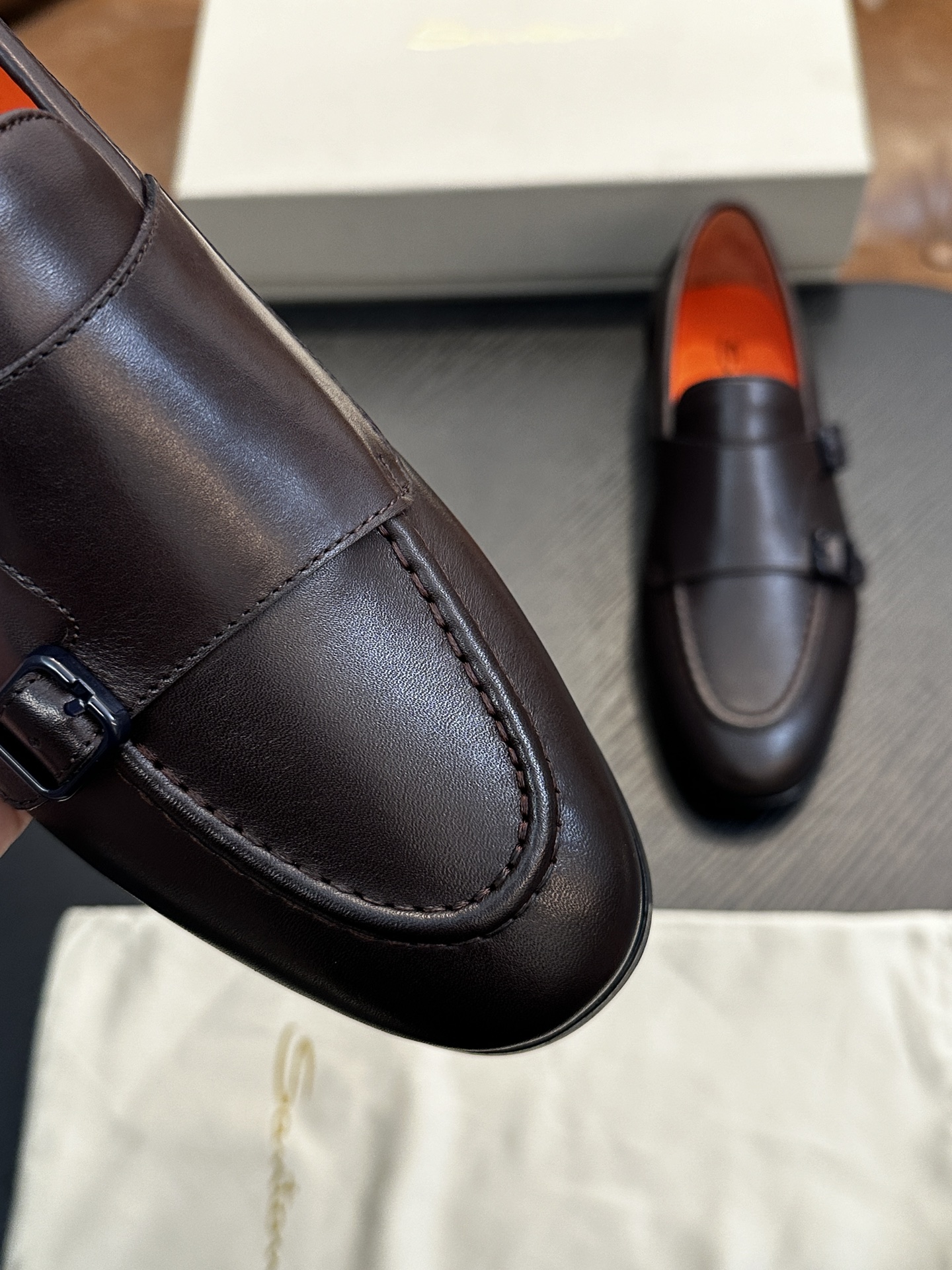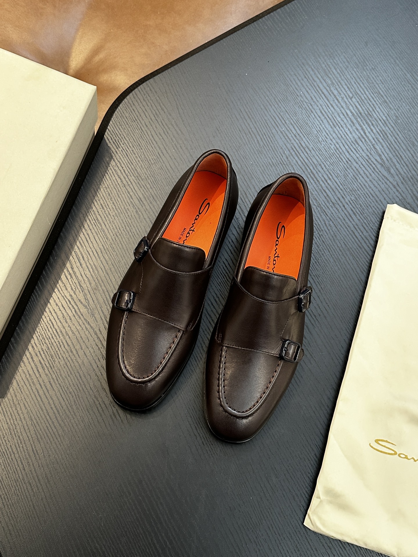 This shoes is AAAAA 1:1 quality (superb). Materials used are identical to the original ones. Santoni trademark marks are indistinguishable to the authentic. Photos take by actual shoes, what you receive will be 100% same with our photos.