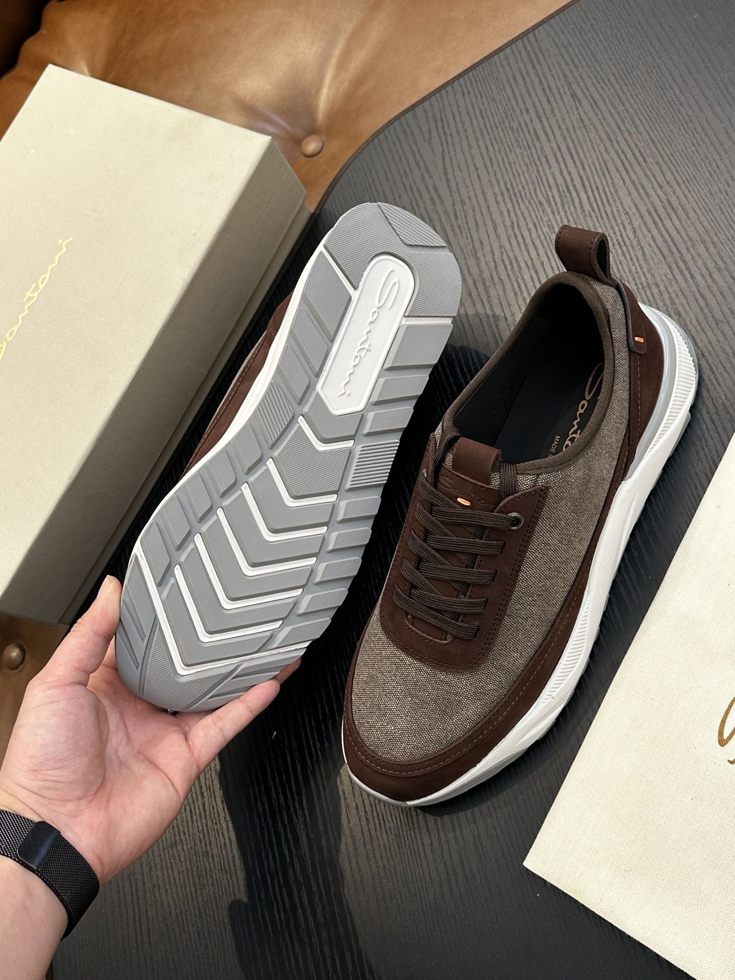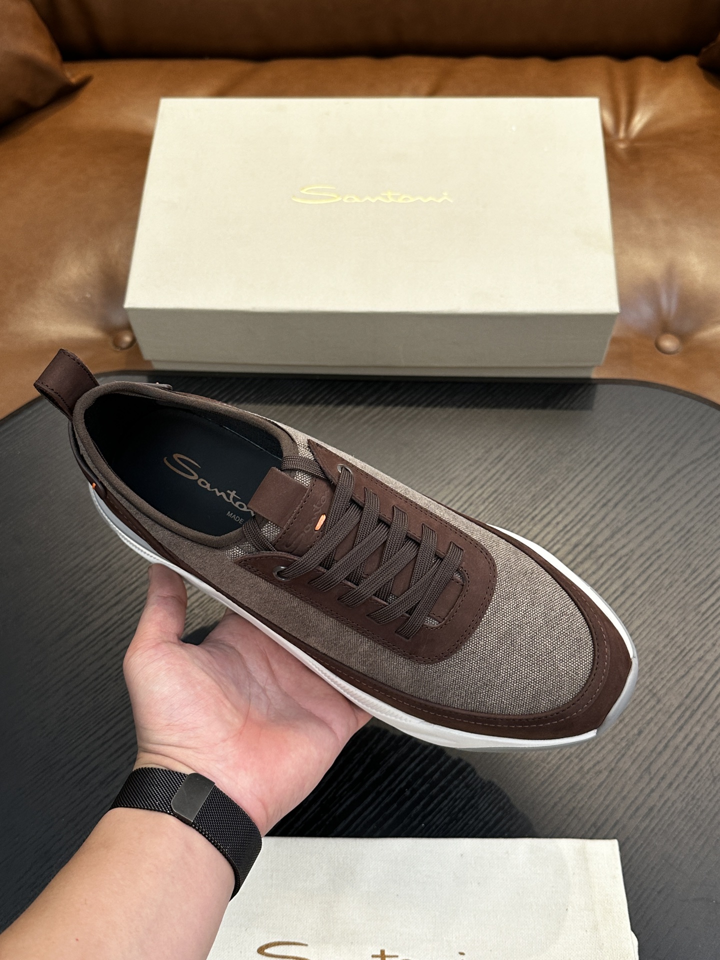 This shoes is AAAAA 1:1 quality (superb). Materials used are identical to the original ones. Santoni trademark marks are indistinguishable to the authentic. Photos take by actual shoes, what you receive will be 100% same with our photos.