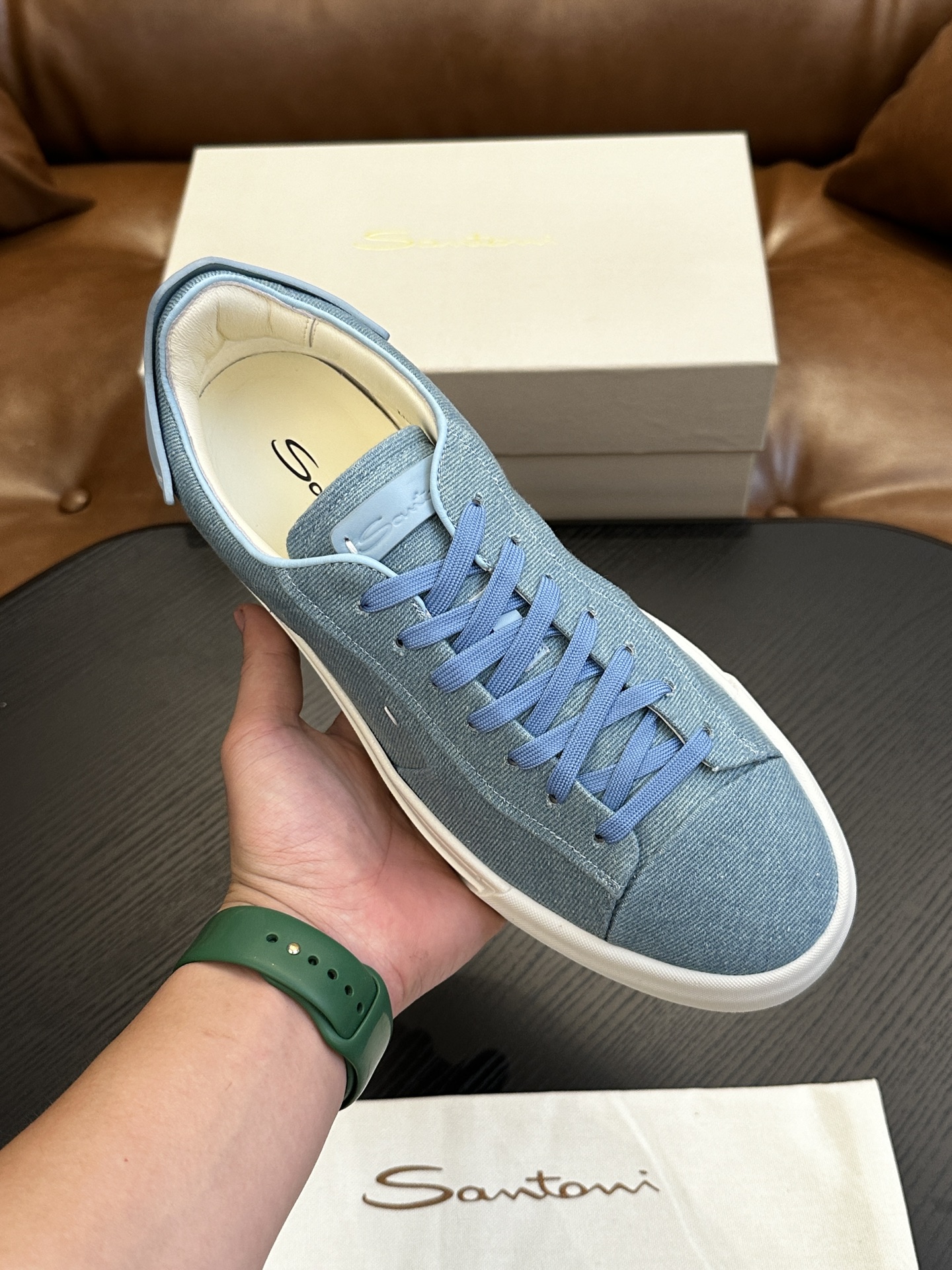 This shoes is AAAAA 1:1 quality (superb). Materials used are identical to the original ones. Santoni trademark marks are indistinguishable to the authentic. Photos take by actual shoes, what you receive will be 100% same with our photos.